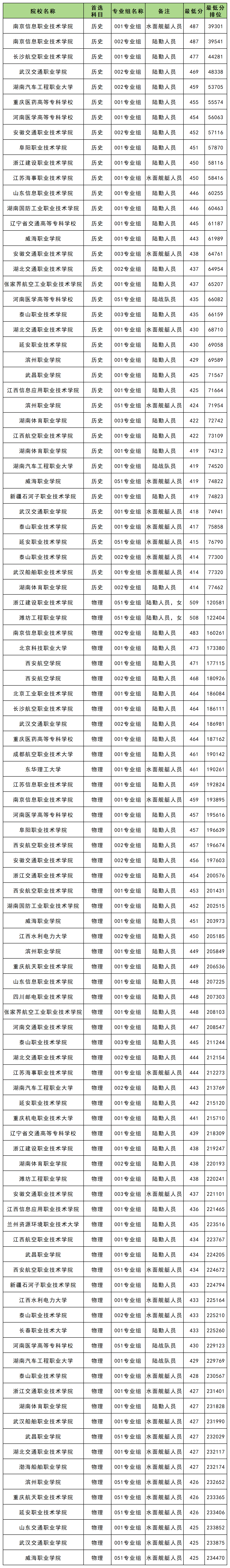 2025年安徽历史类高考录取中,分数线最低的定向培养军士大学是湖南体育职业学院(002组)、武汉船舶职业技术学院(001组)、泰山职业技术学院(002组),2025年分数最低为414分。