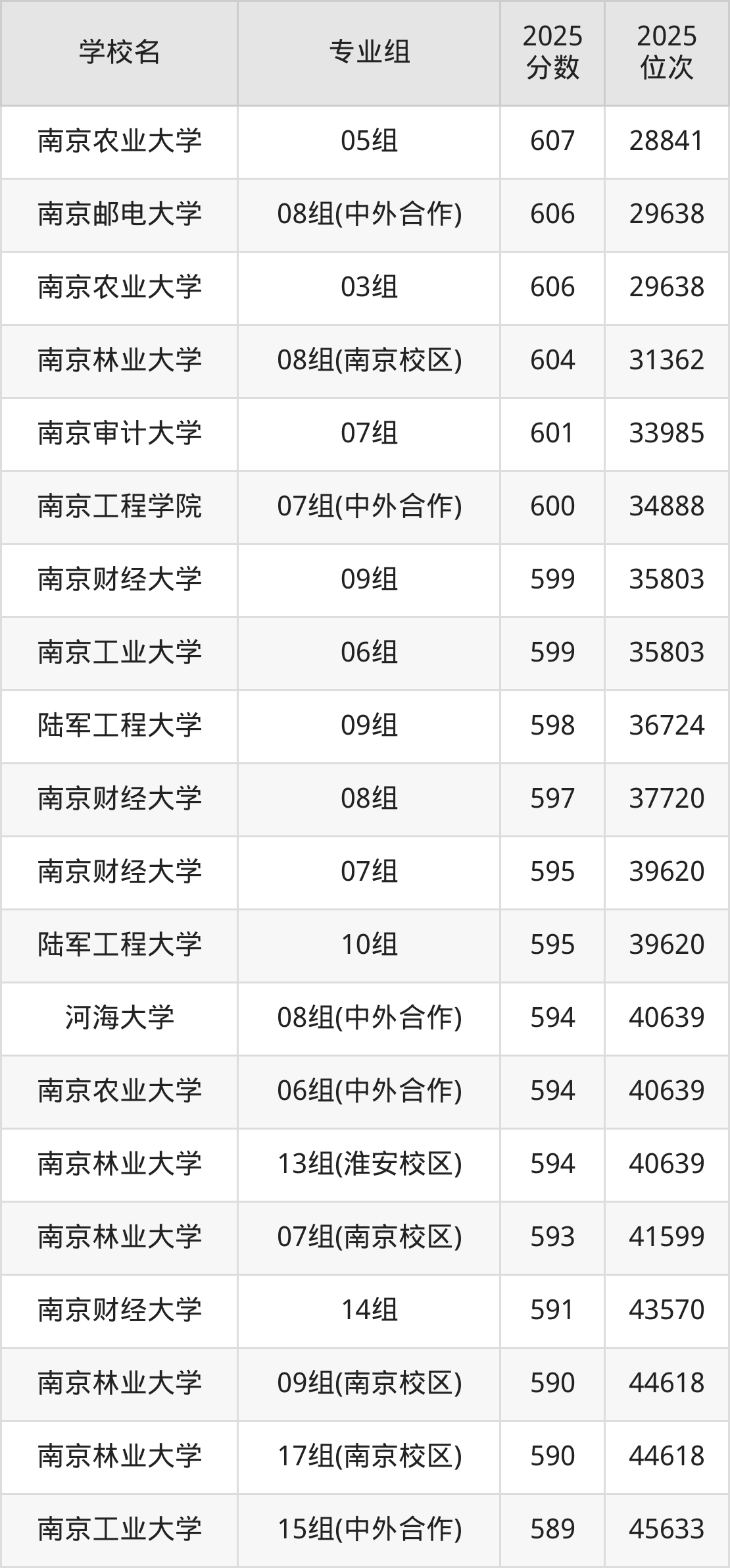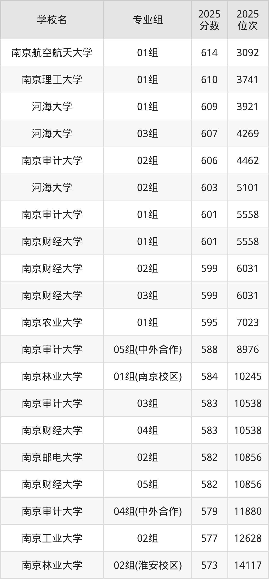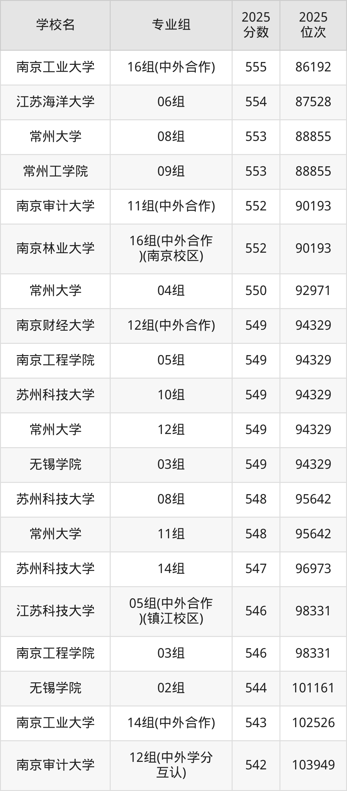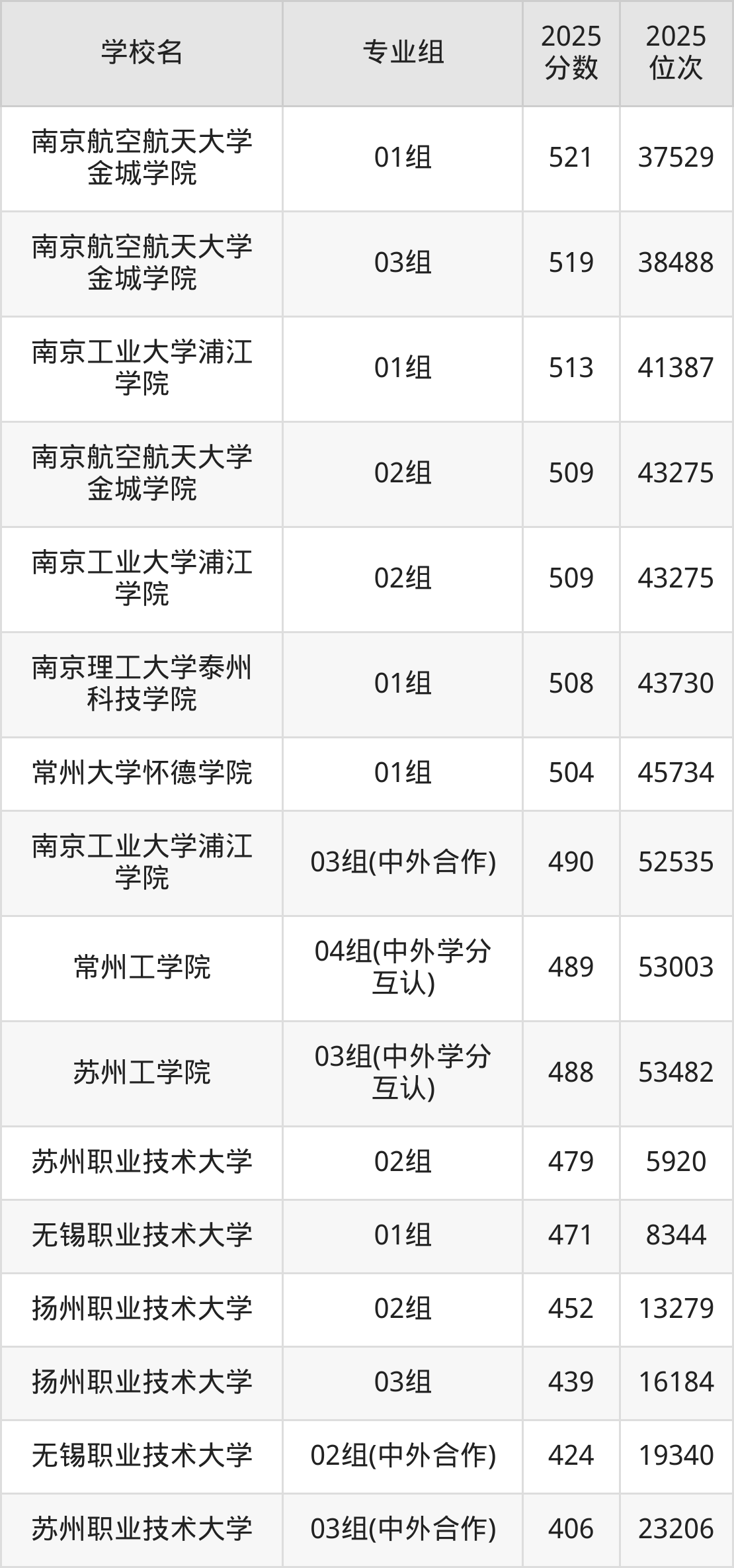 江苏省所有理科院校2025年录取分数线一览表(前100院校专业组):
