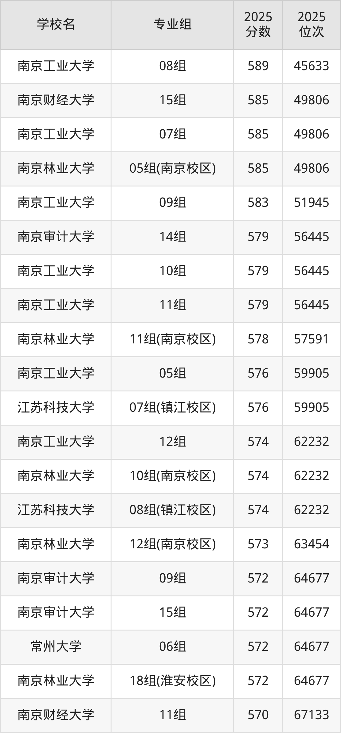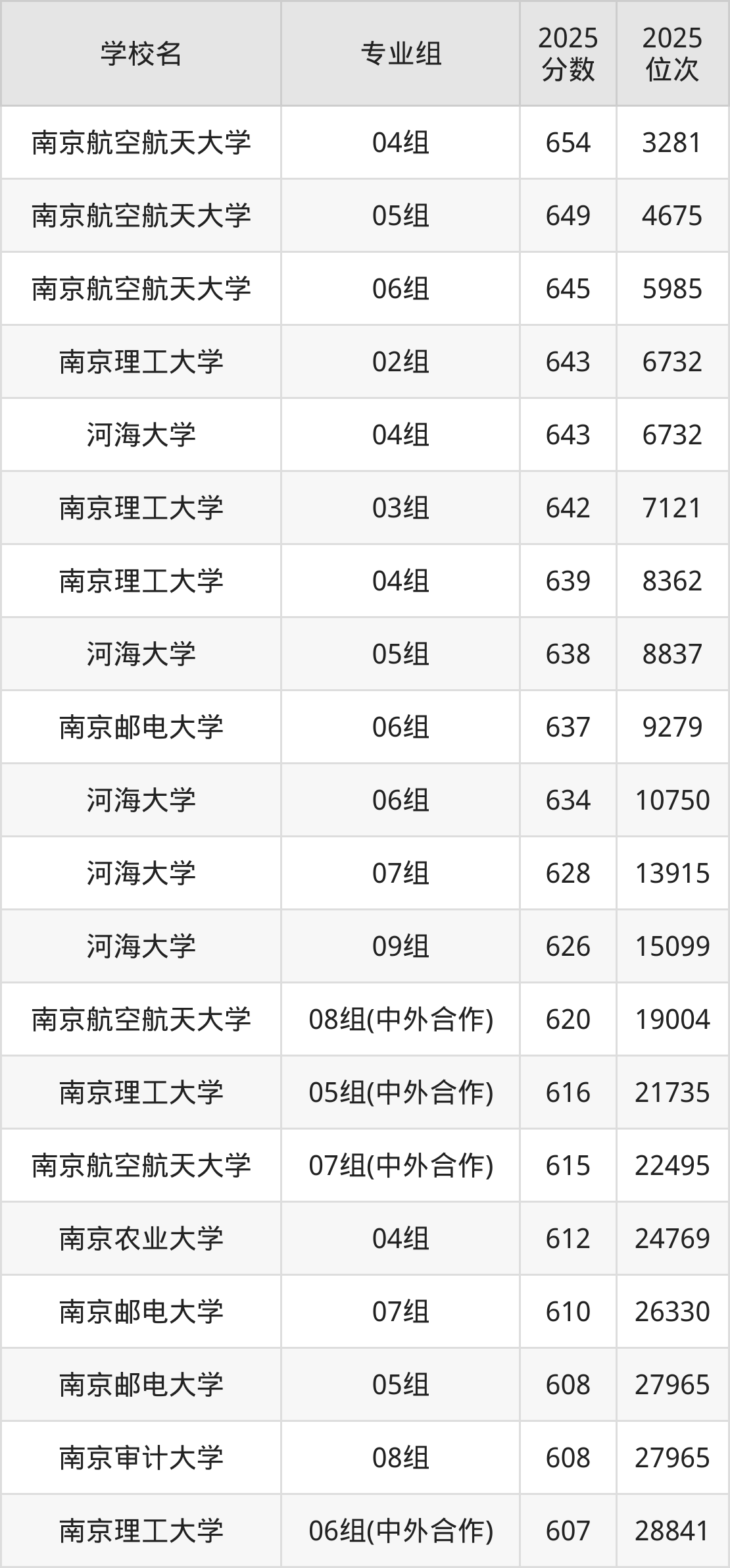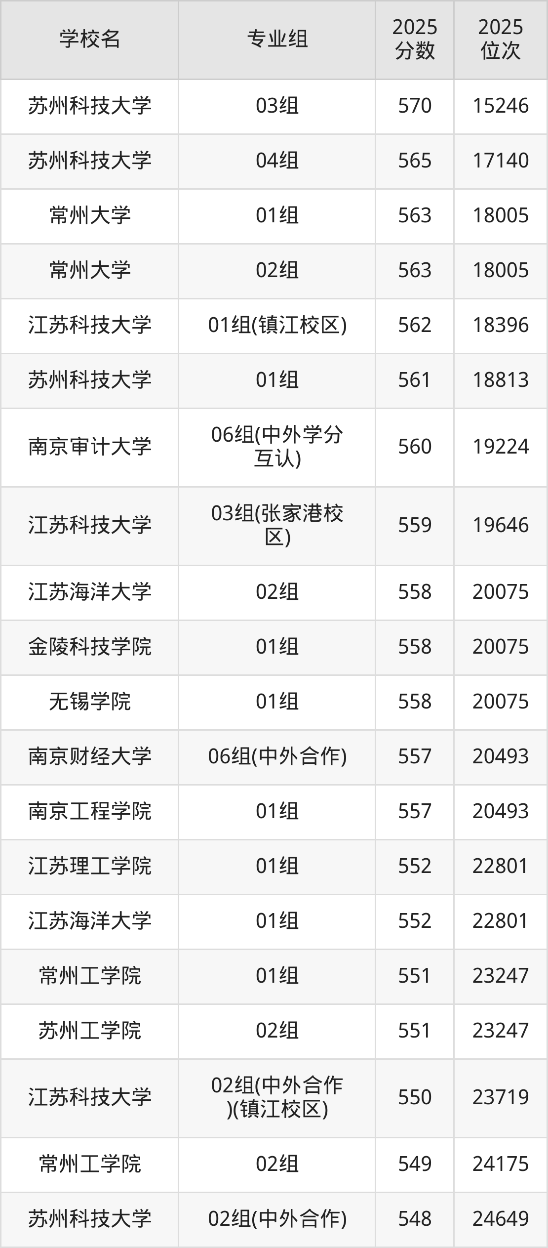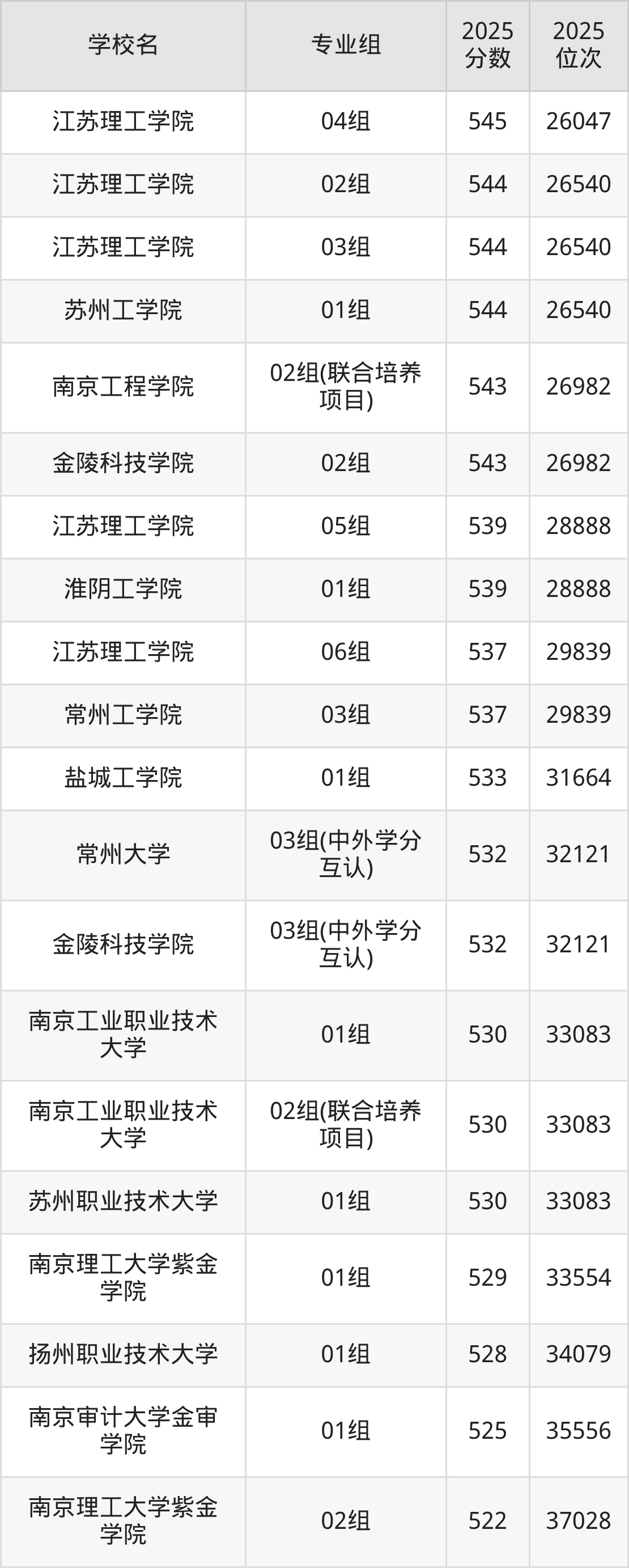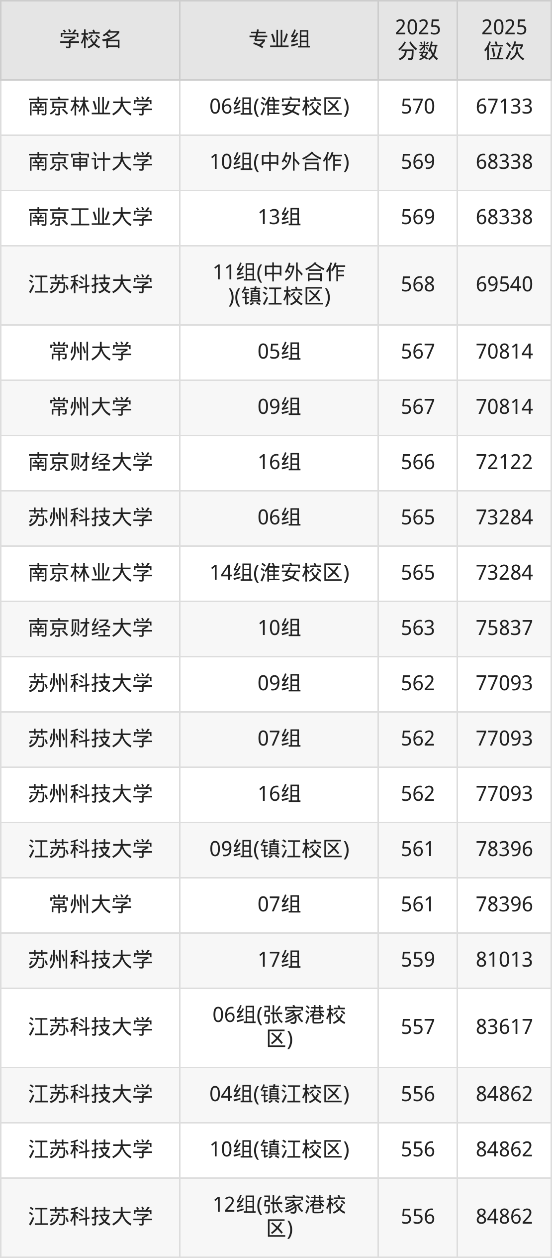 江苏省所有理科院校2025年录取分数线一览表(前100院校专业组):