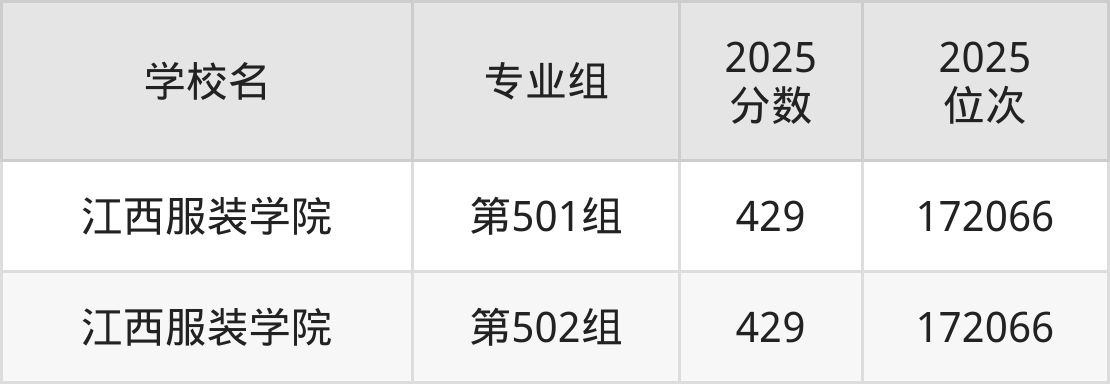 物理类最好考、收分最低的是:江西服装学院,2025年第501组最低分429分,最低排名172066名;历史类最好考、收分最低的是:江西服装学院,2025年第101组最低分486分,最低排名47292名。