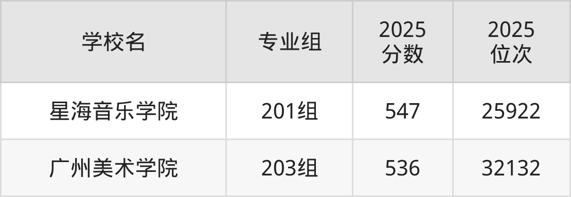 广东省所有艺术类院校2025年录取分数线一览表(前3院校专业组):