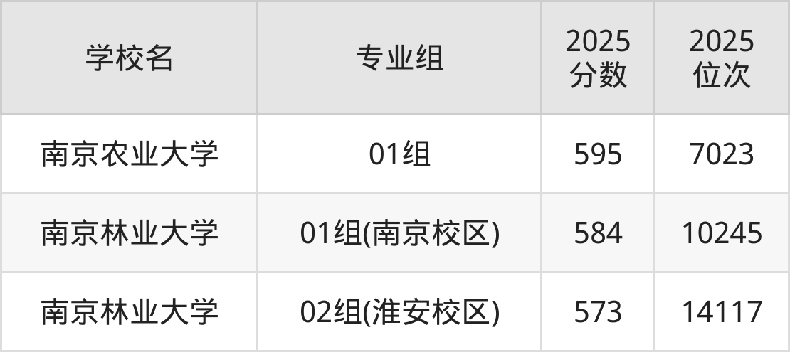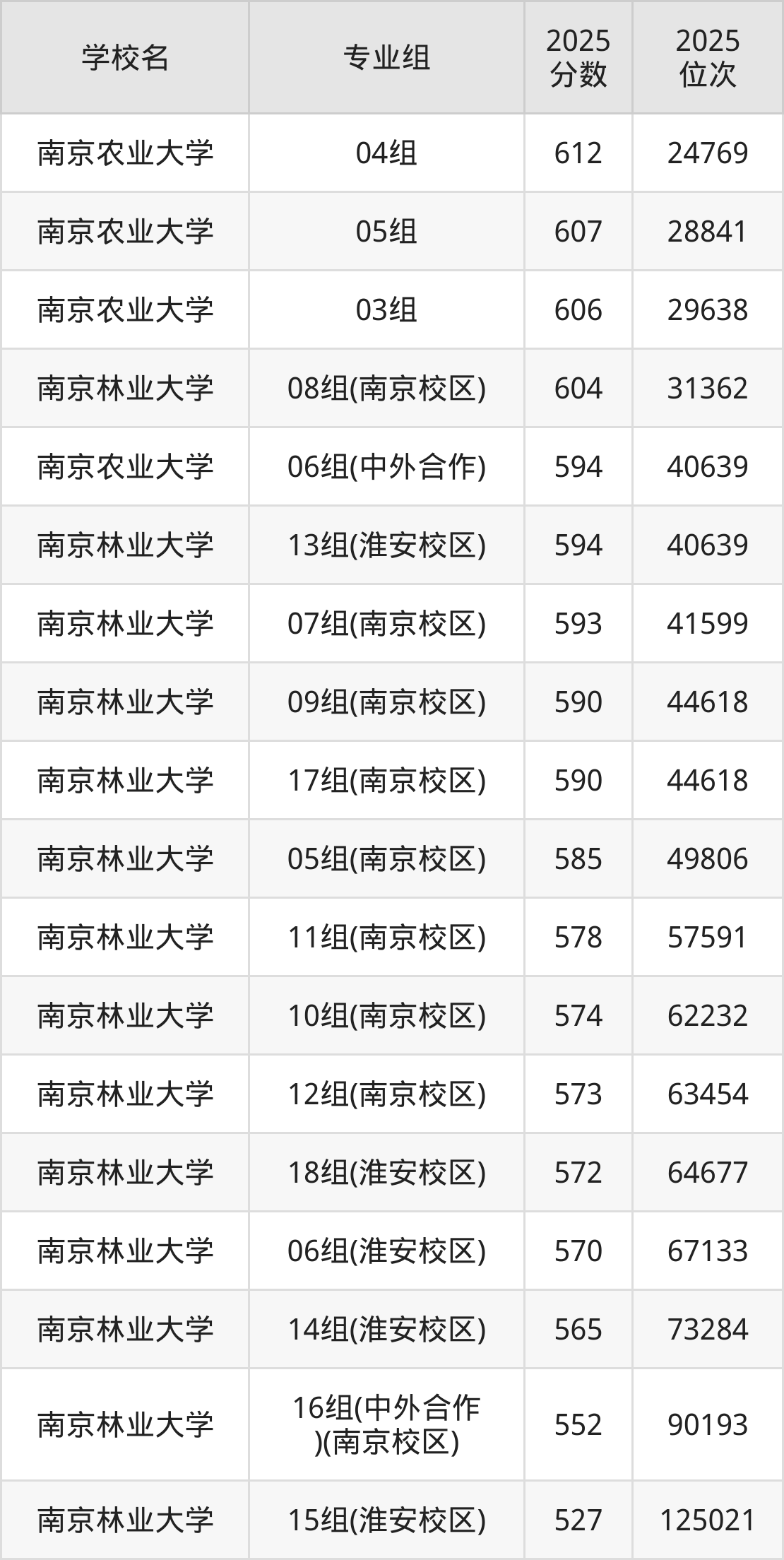 江苏省所有农林类院校2025年录取分数线一览表(前18院校专业组):
