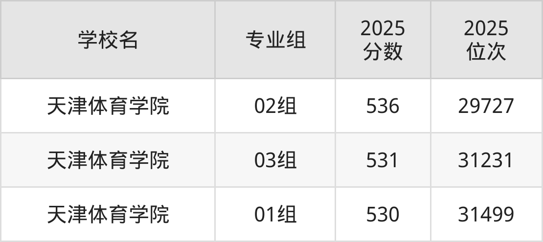 天津市所有二本体育院校2025年录取分数线一览表(前3院校专业组):