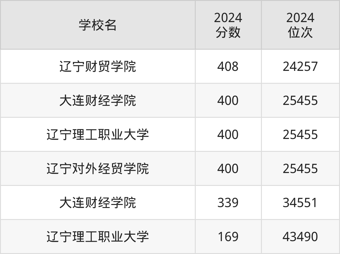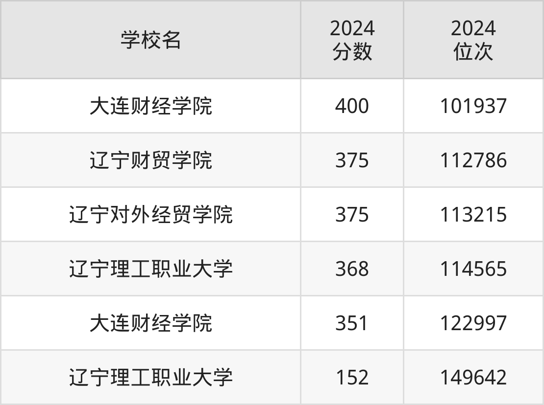辽宁省所有二本财经院校2024年录取分数线一览表(前6院校):