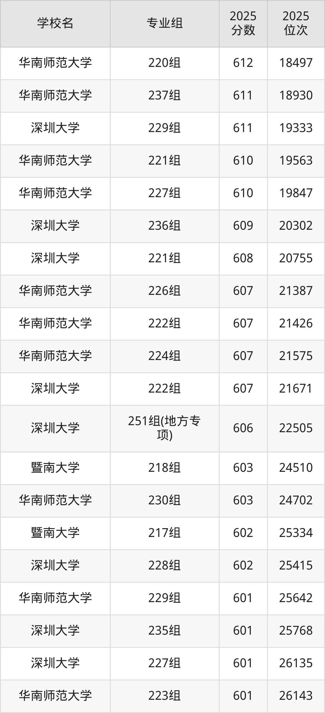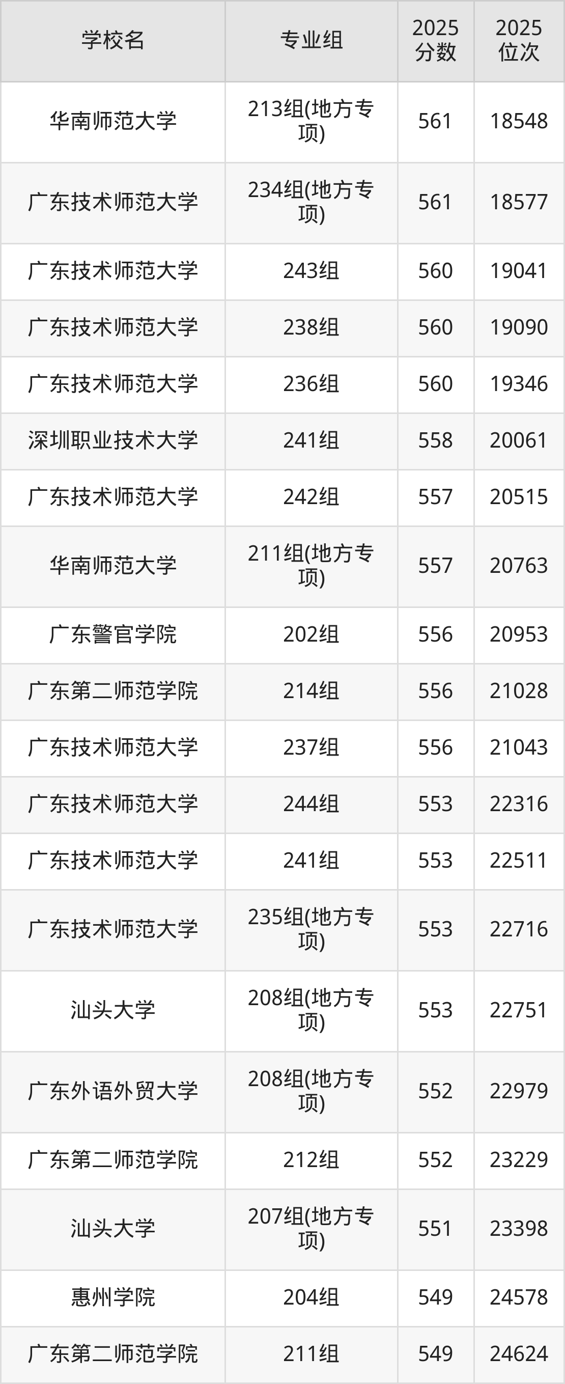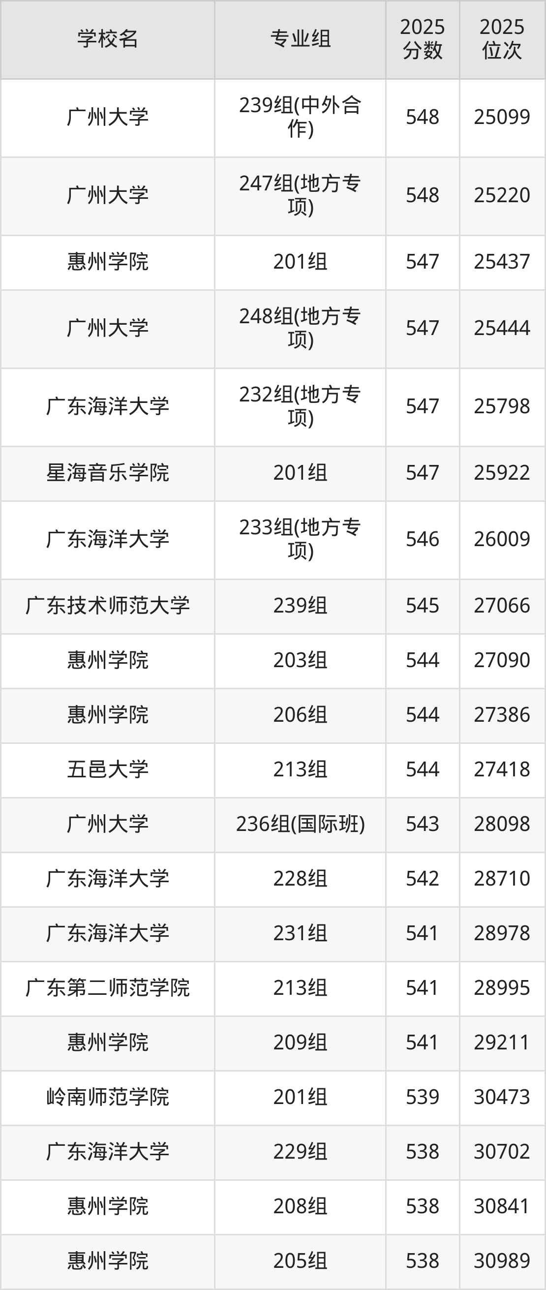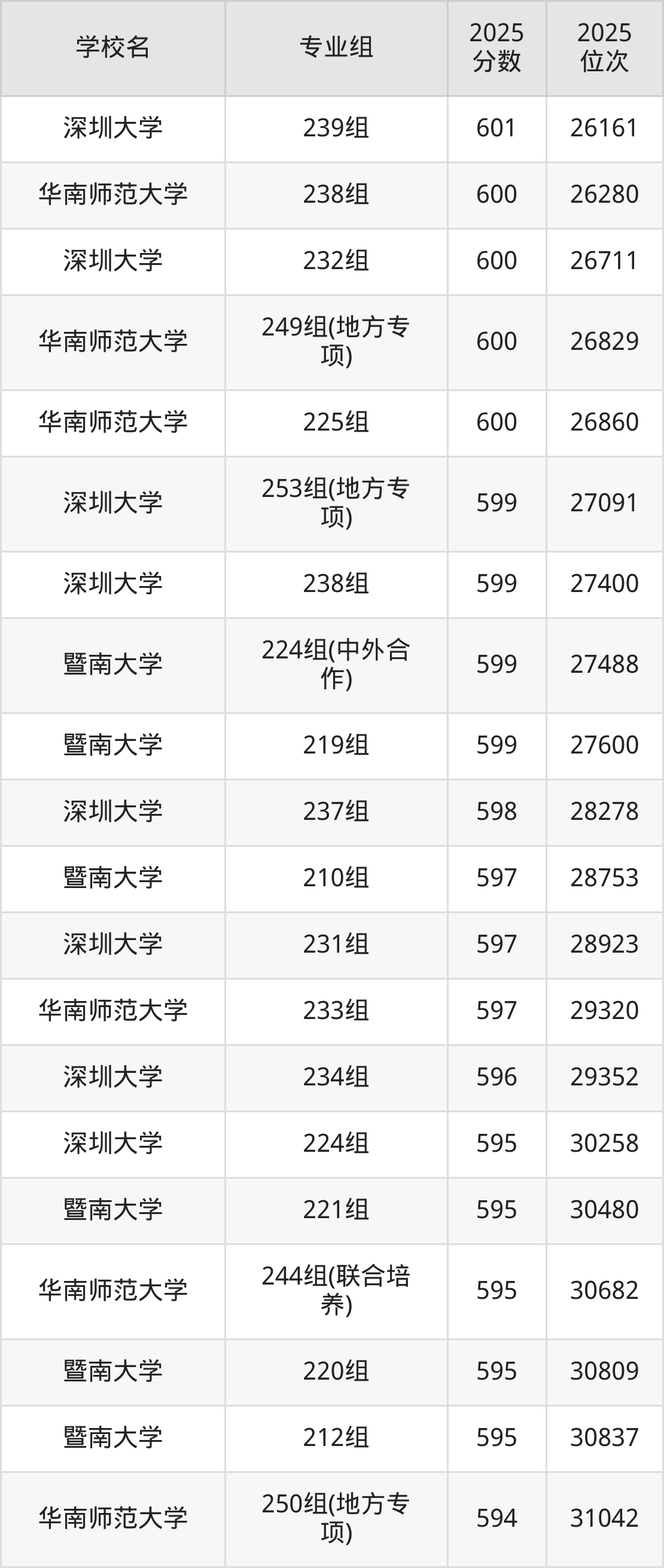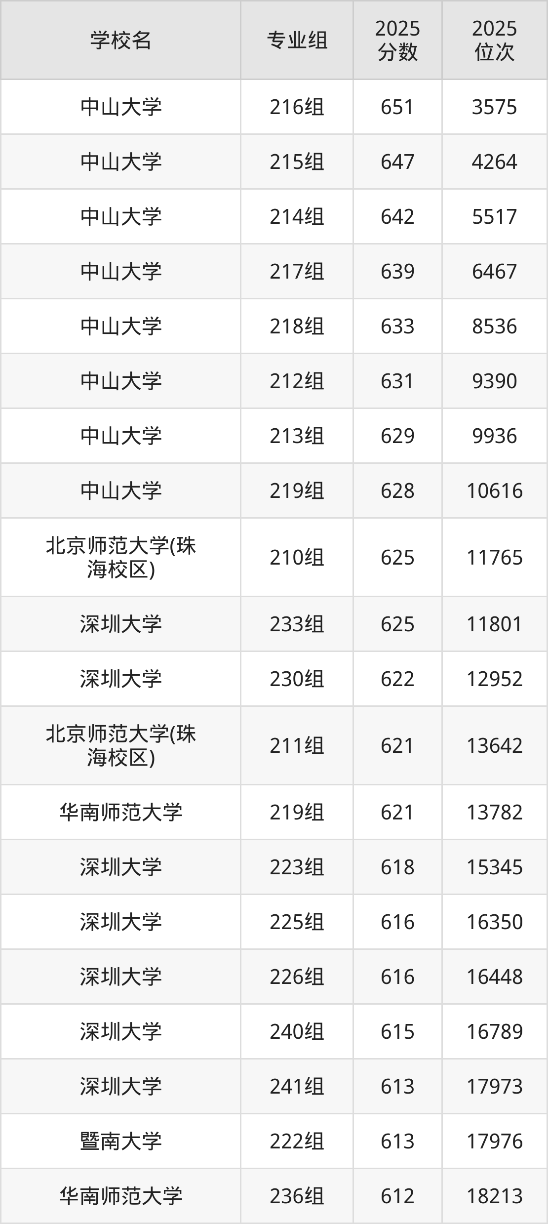 广东省所有文科院校2025年录取分数线一览表(前100院校专业组):