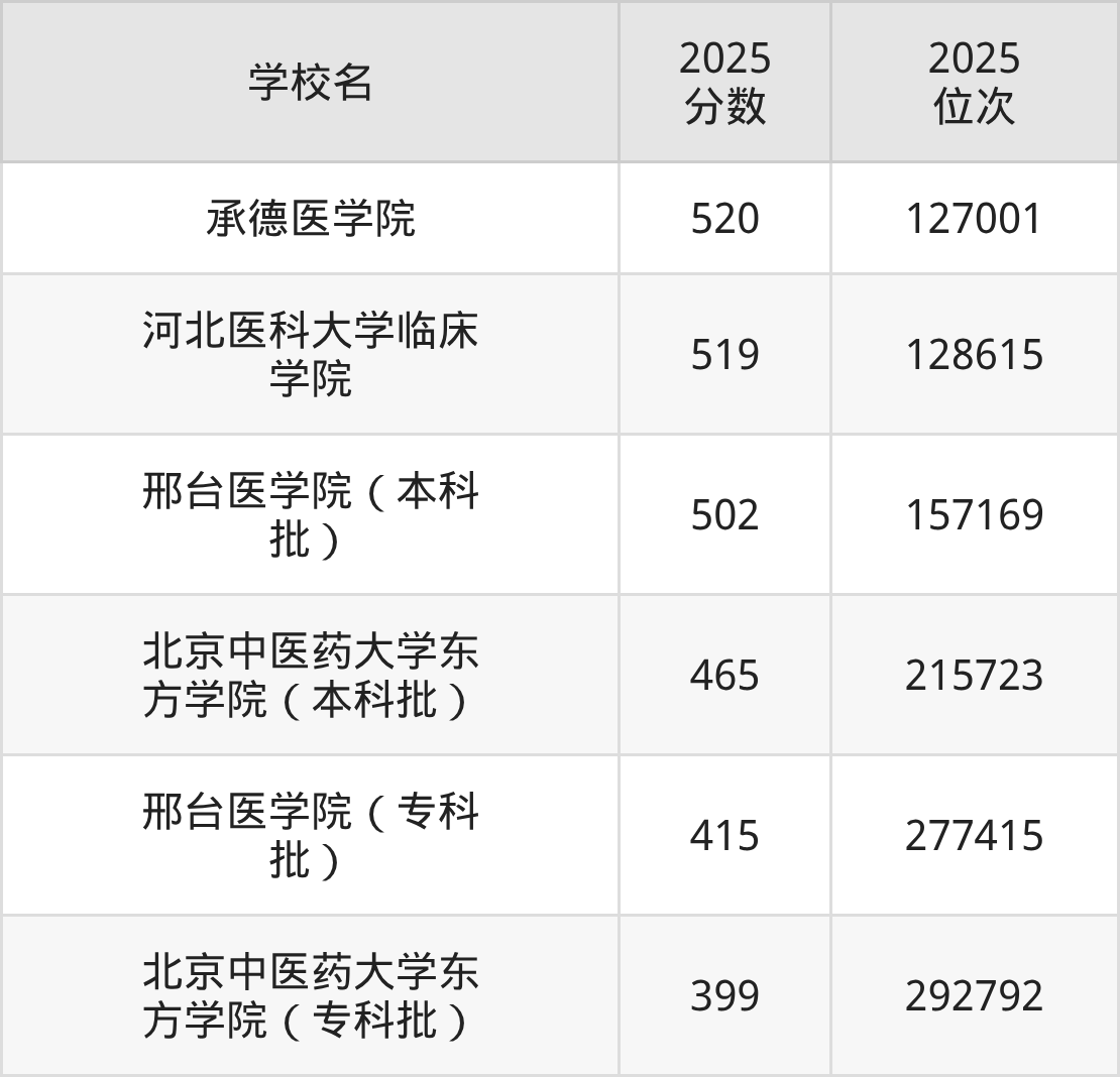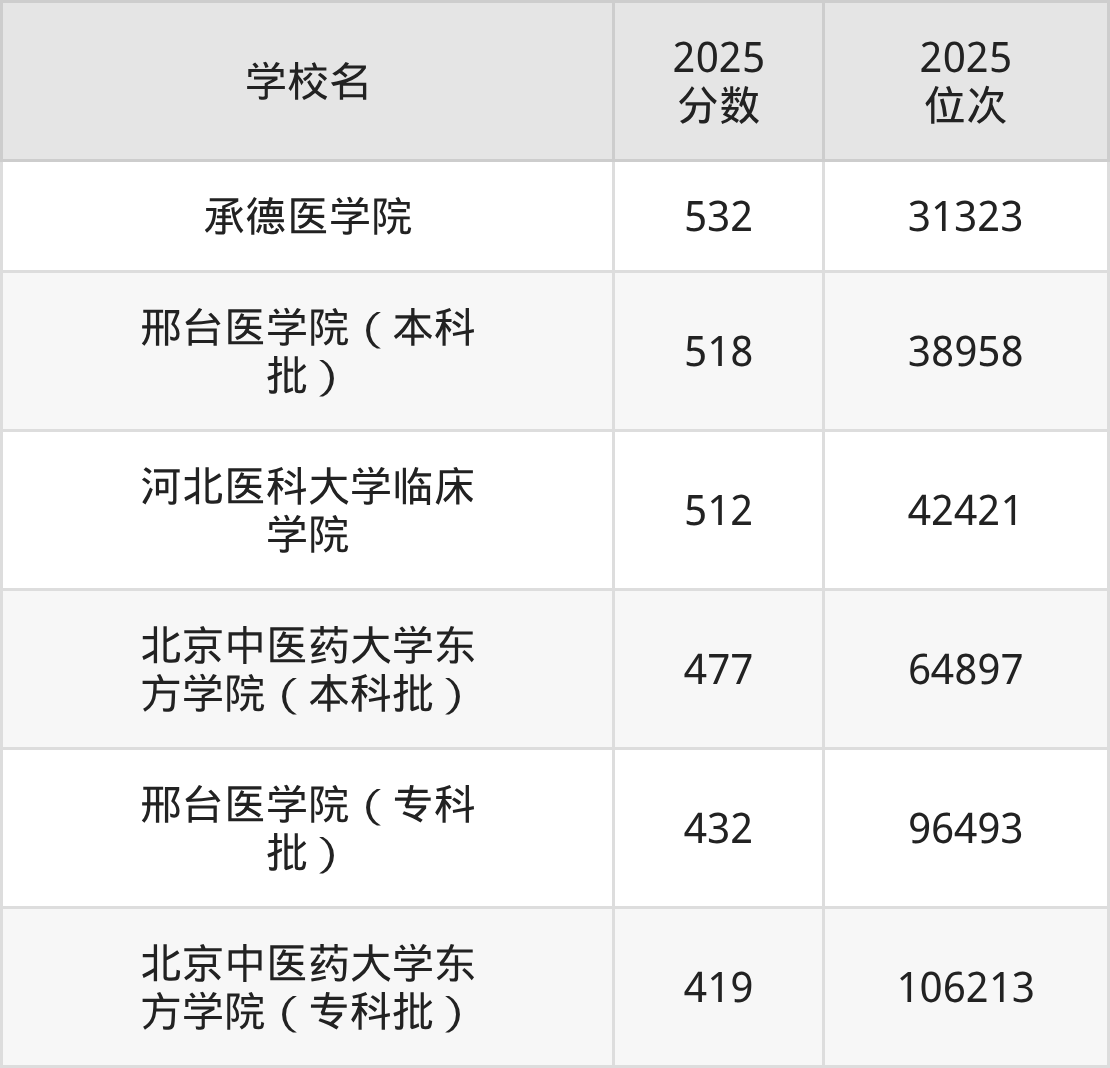 按照2025年河北省所有二本医科院校在省内录取分数线高低排名,为大家整理出了河北所有二本医科院校名单如下。
