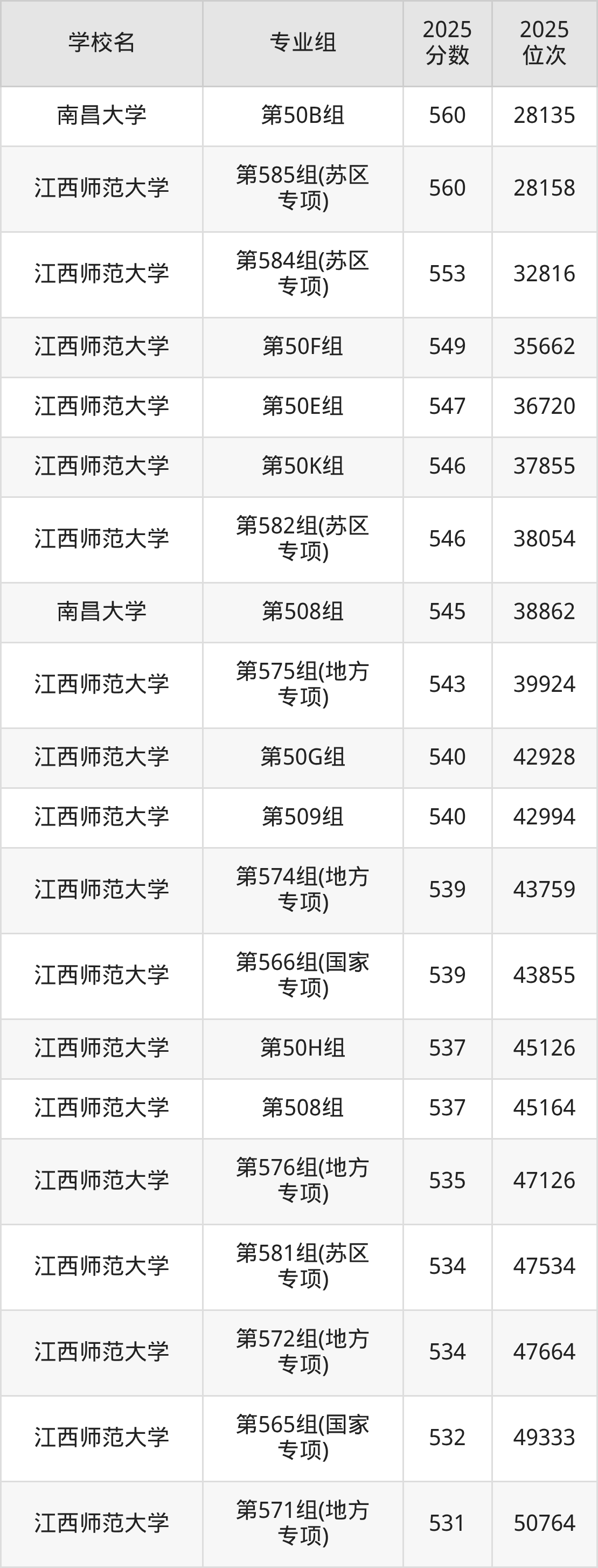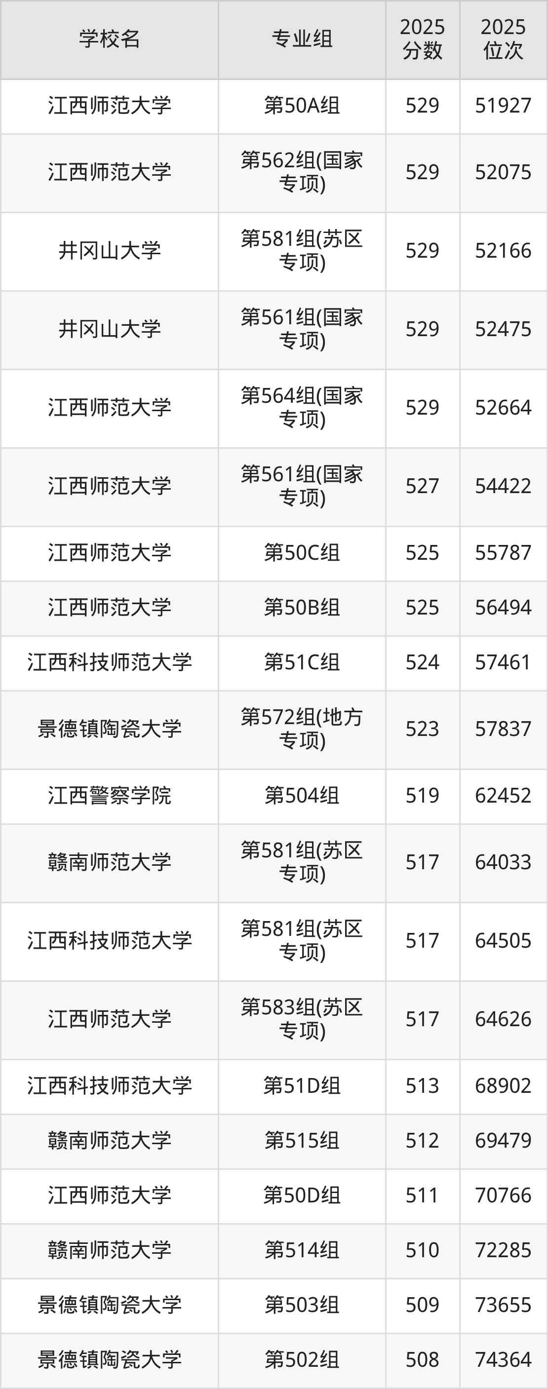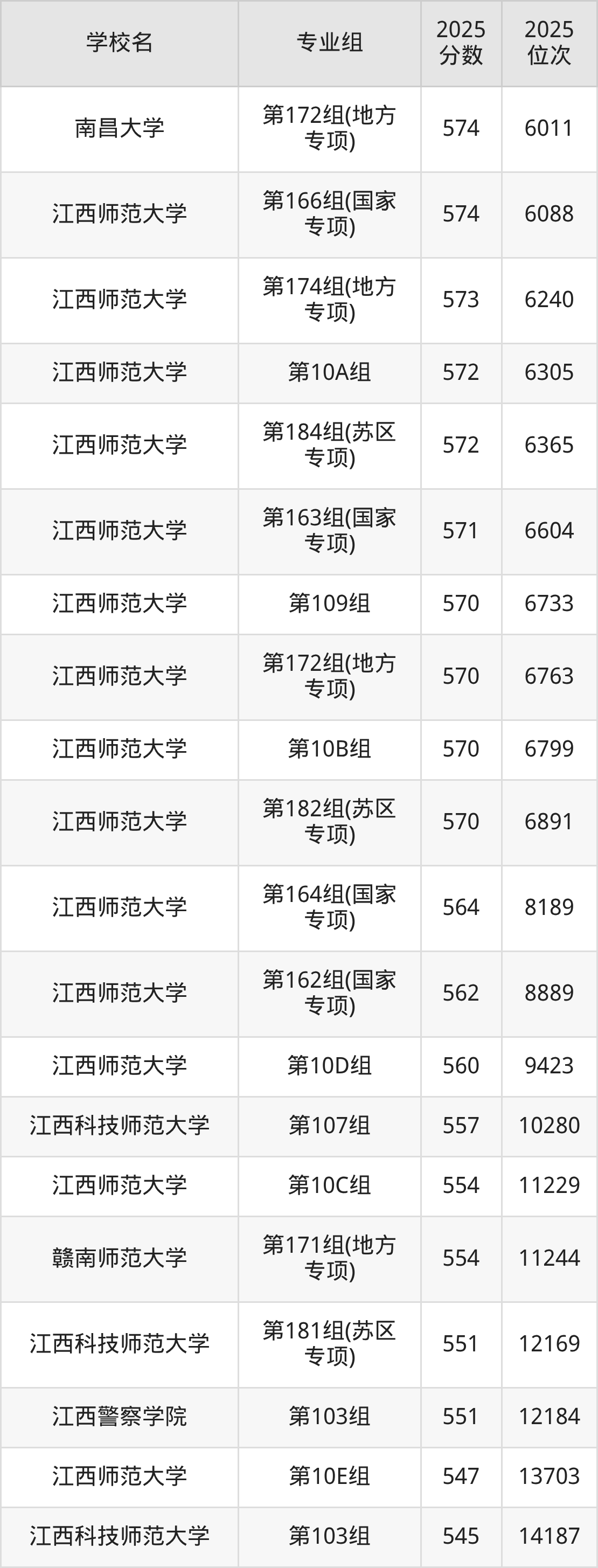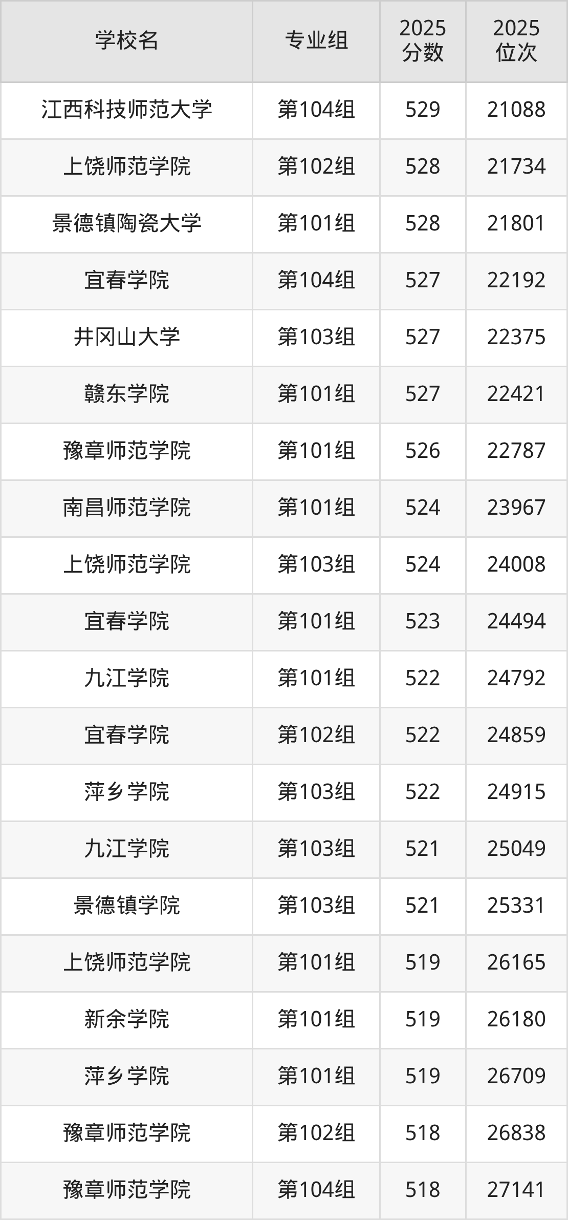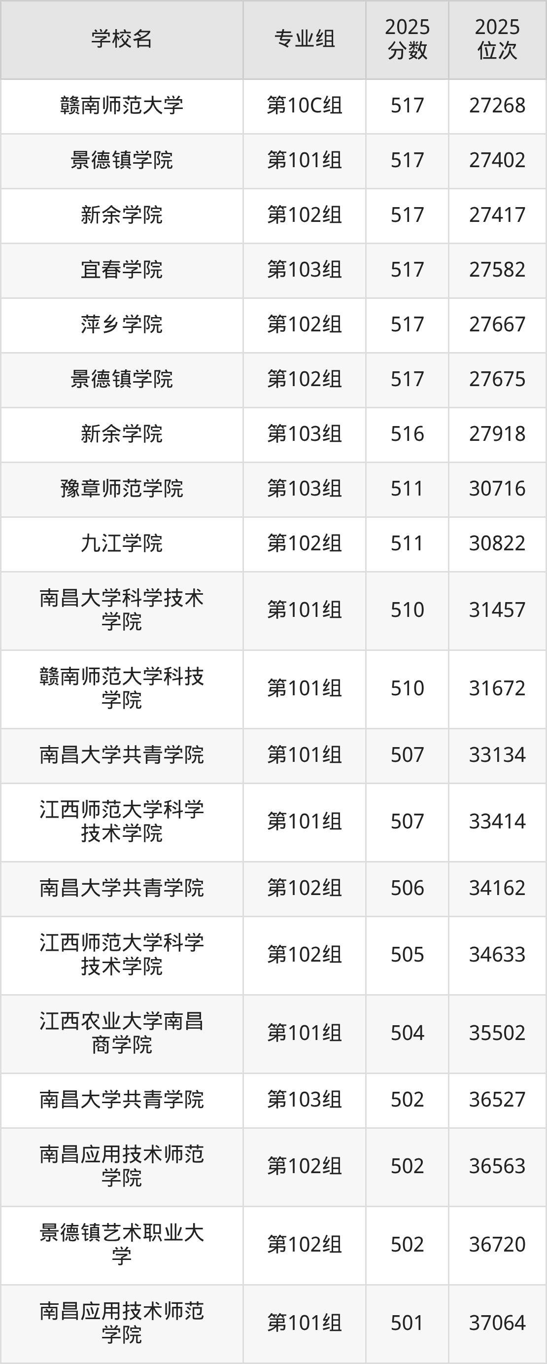 按照2025年江西省所有文科院校在省内录取分数线高低排名,为大家整理出了江西所有文科院校名单如下。