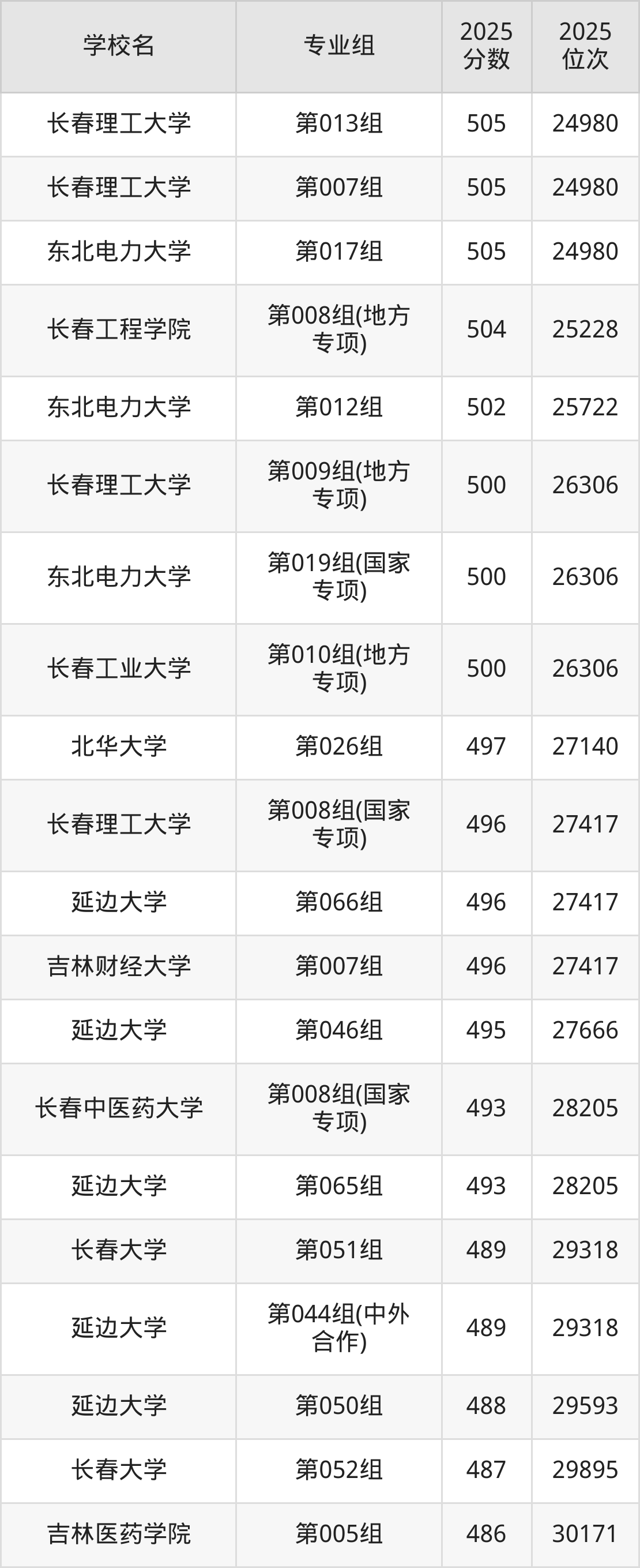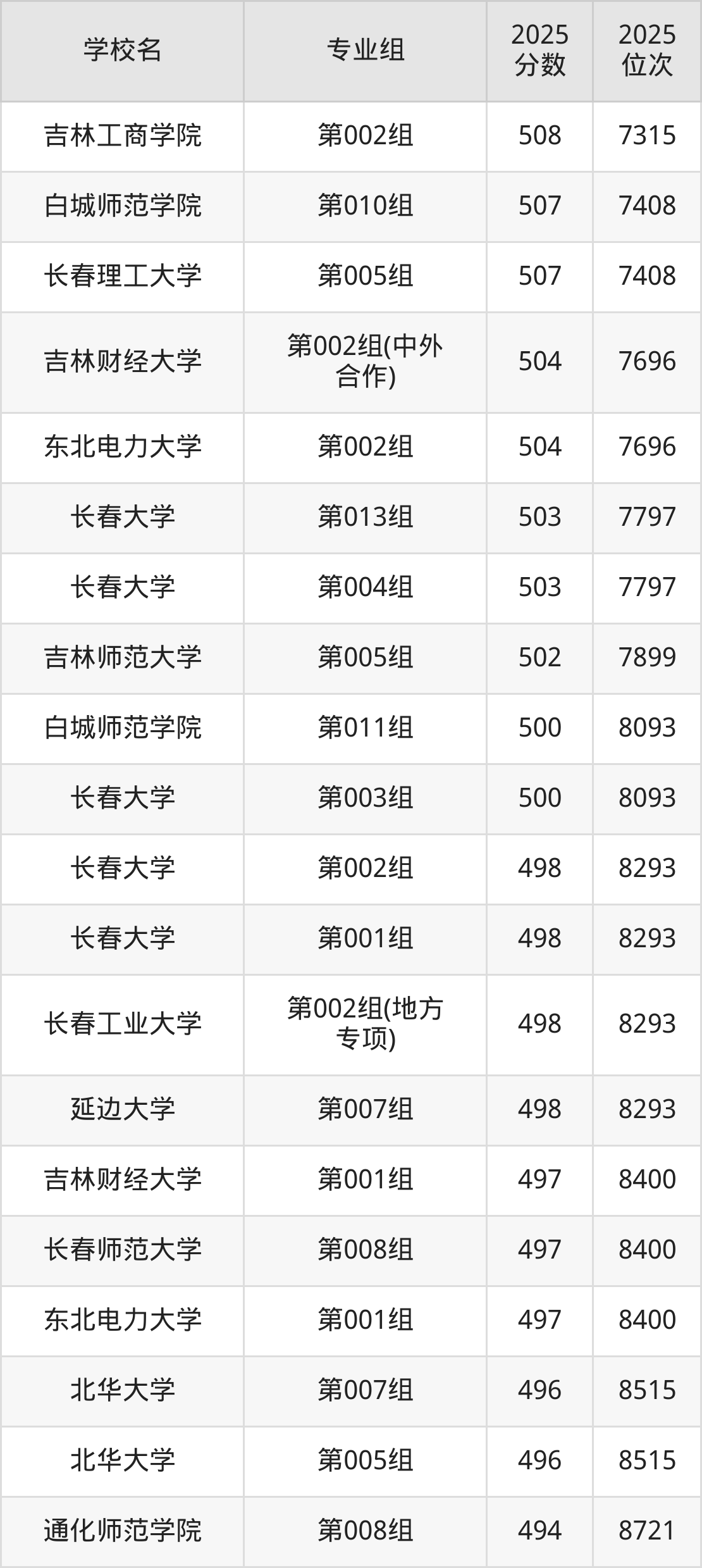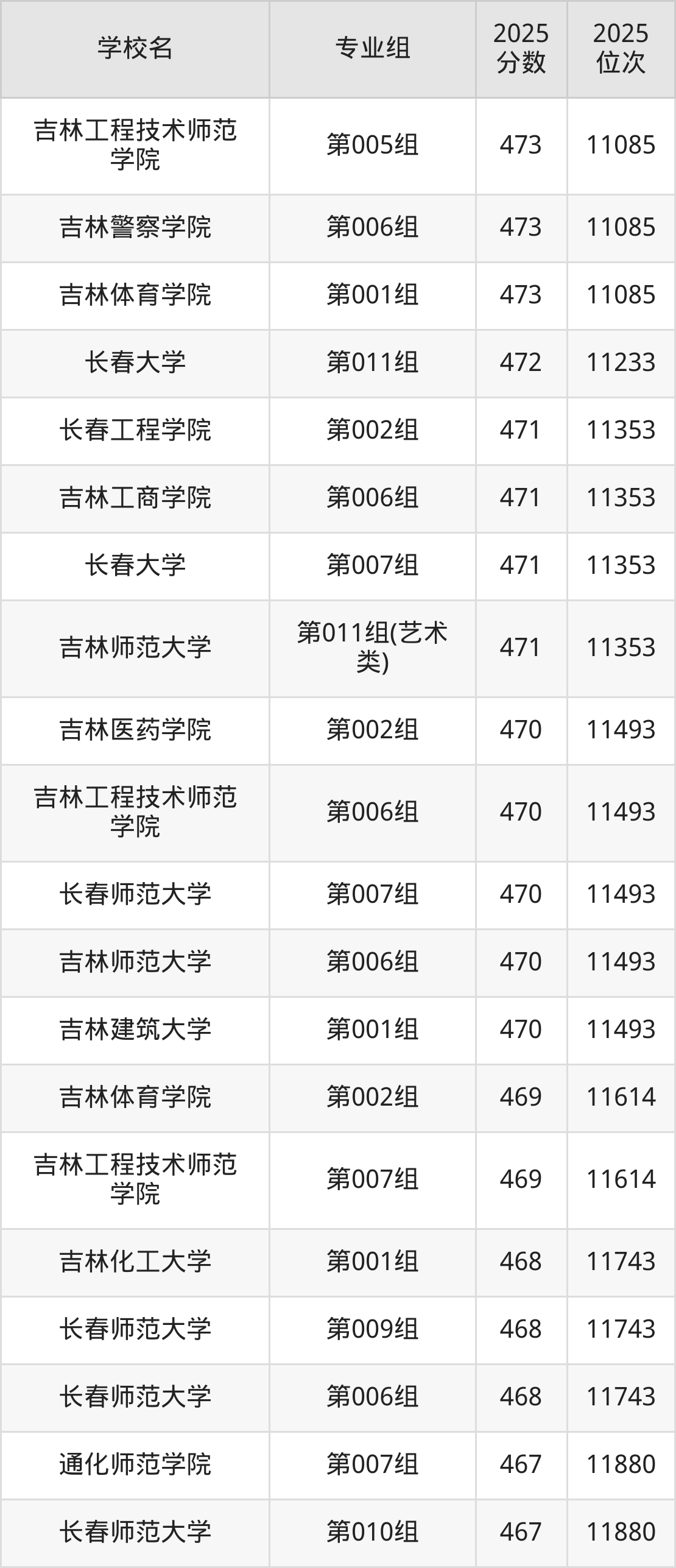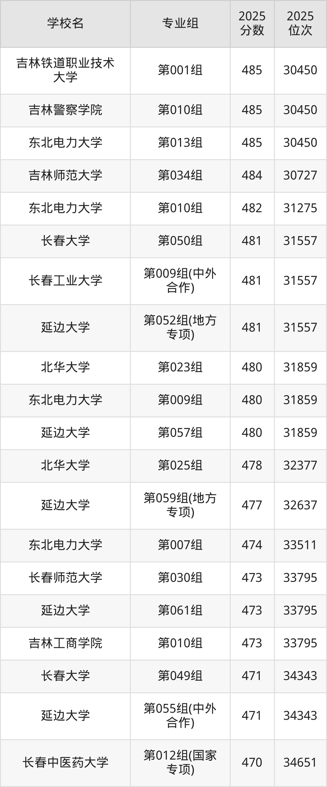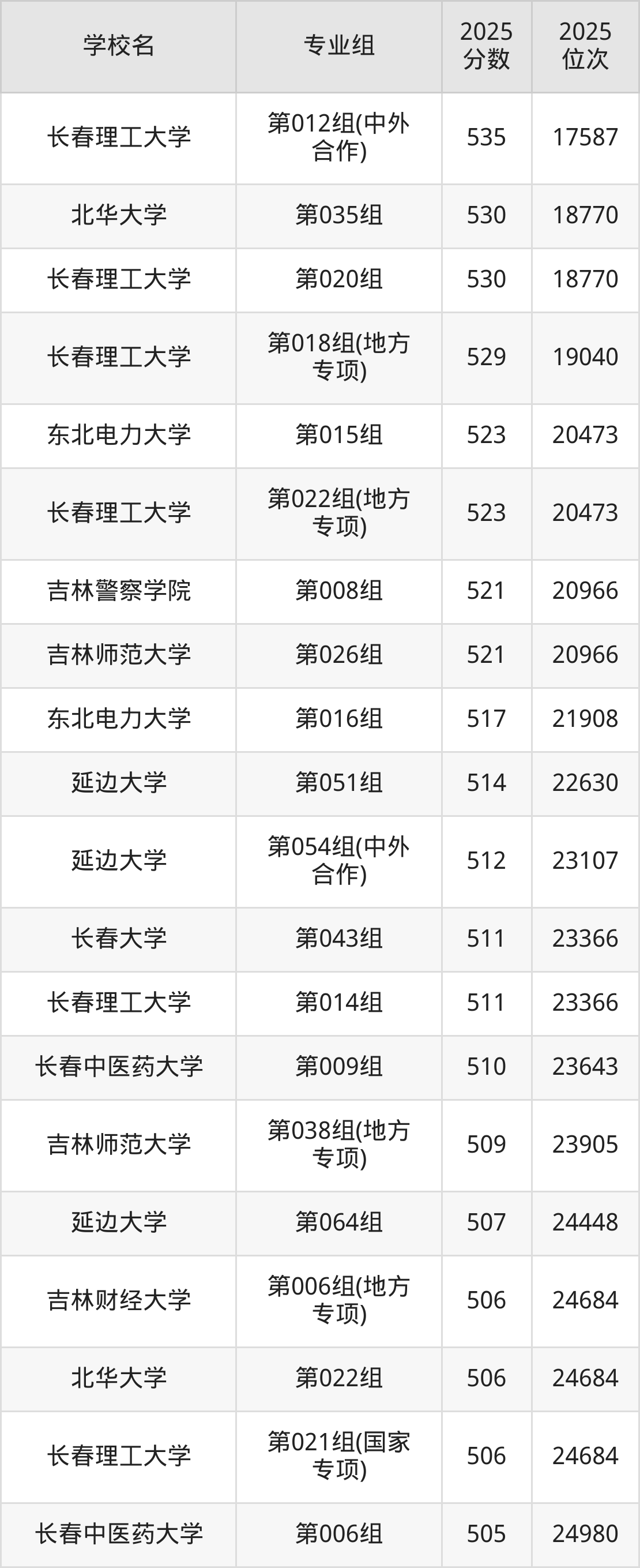 吉林省所有公办本科院校2025年录取分数线一览表(前100院校专业组):
