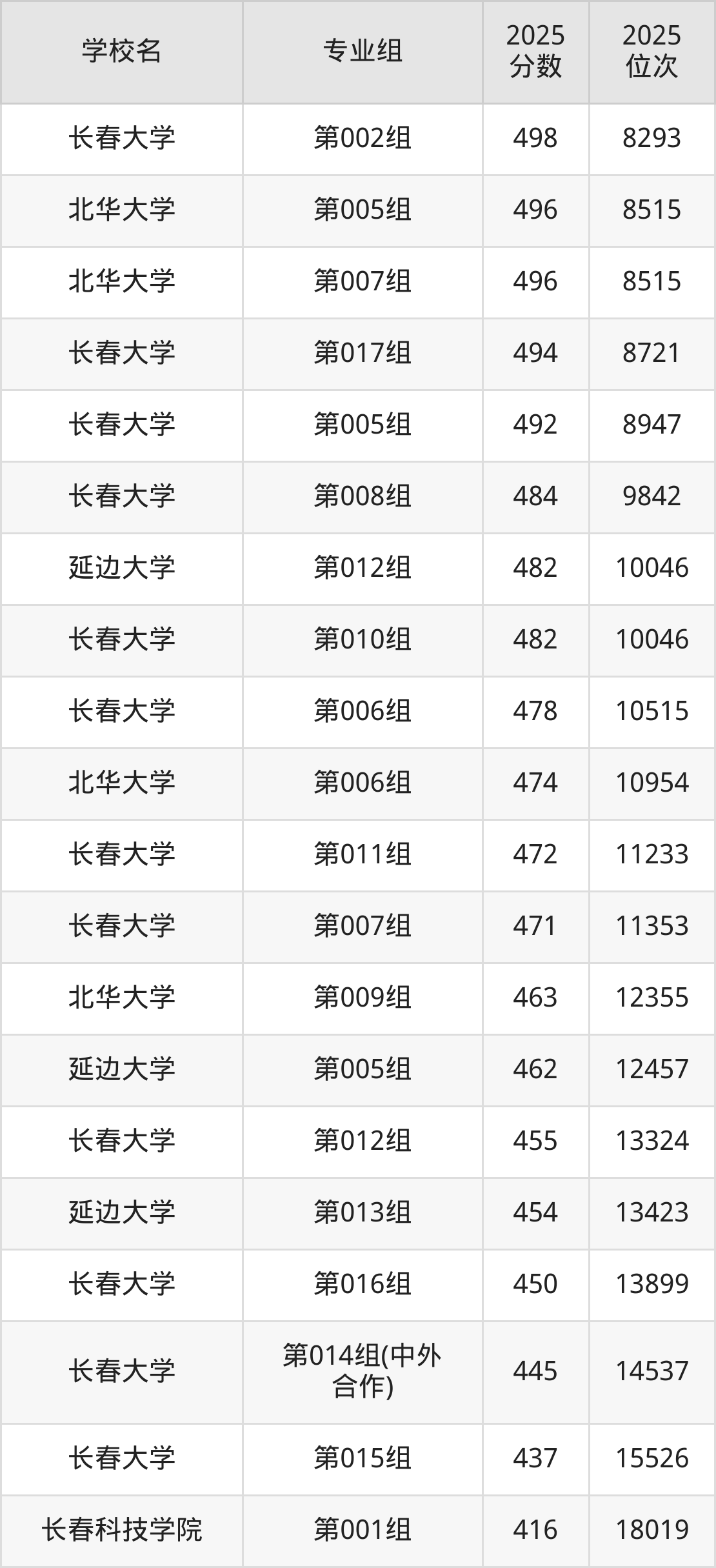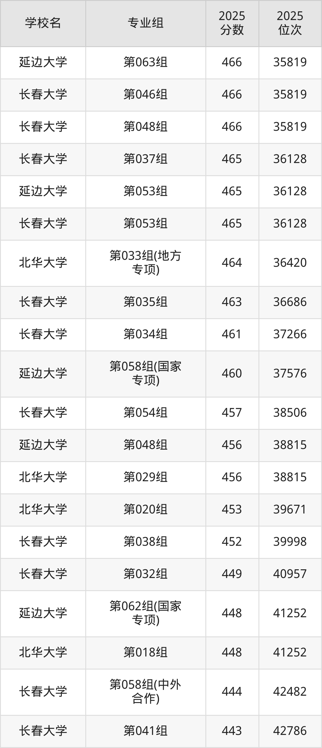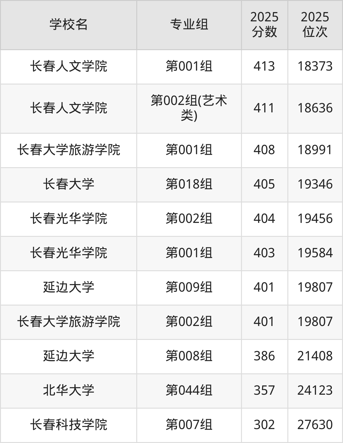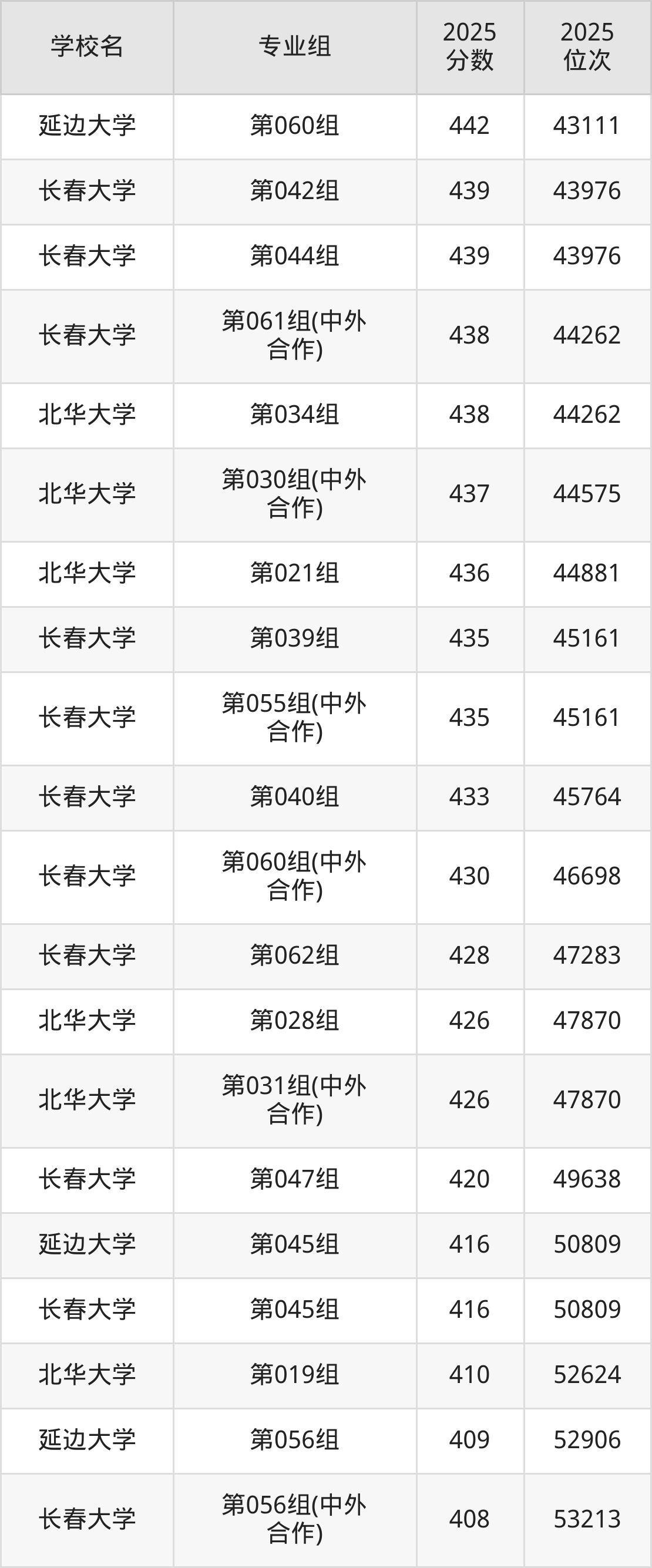 吉林省所有综合类院校2025年录取分数线一览表(前100院校专业组):
