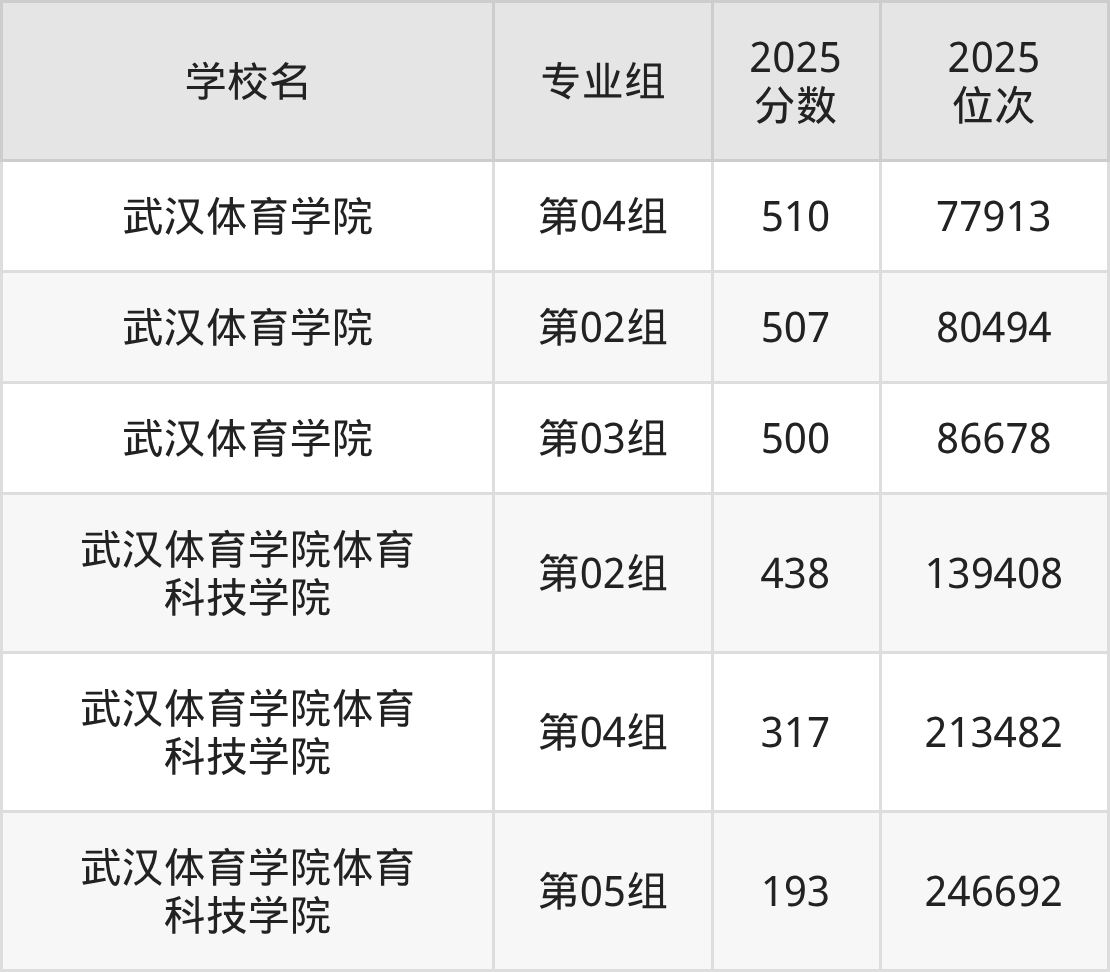 物理类最好考、收分最低的是:武汉体育学院体育科技学院,2025年第05组最低分193分,最低排名246692名;历史类最好考、收分最低的是:武汉体育学院体育科技学院,2025年第03组最低分267分,最低排名126601名。