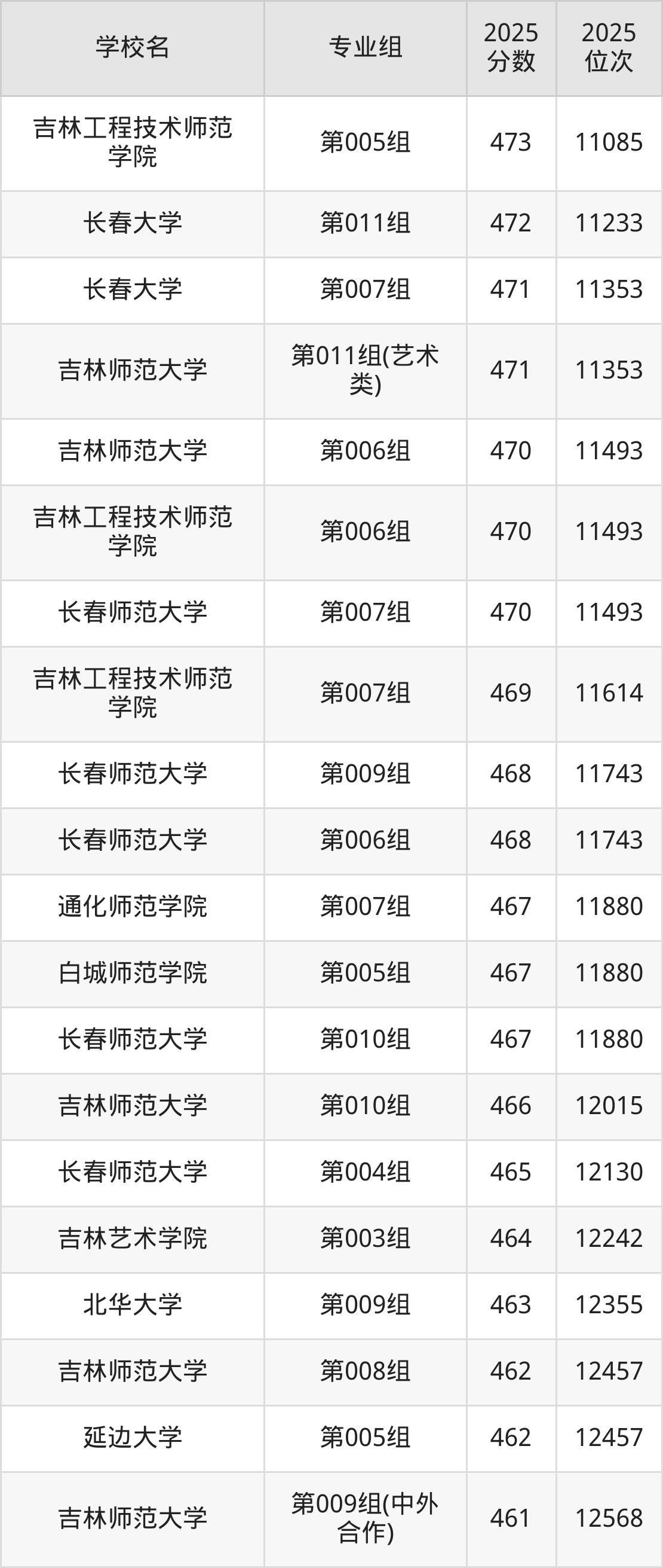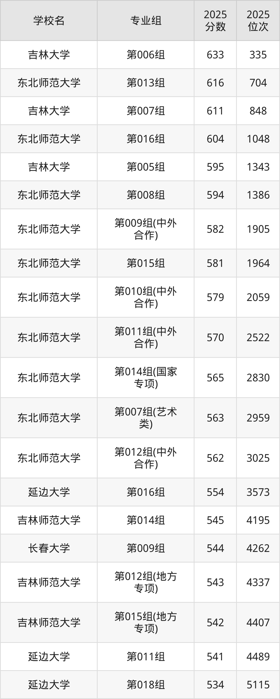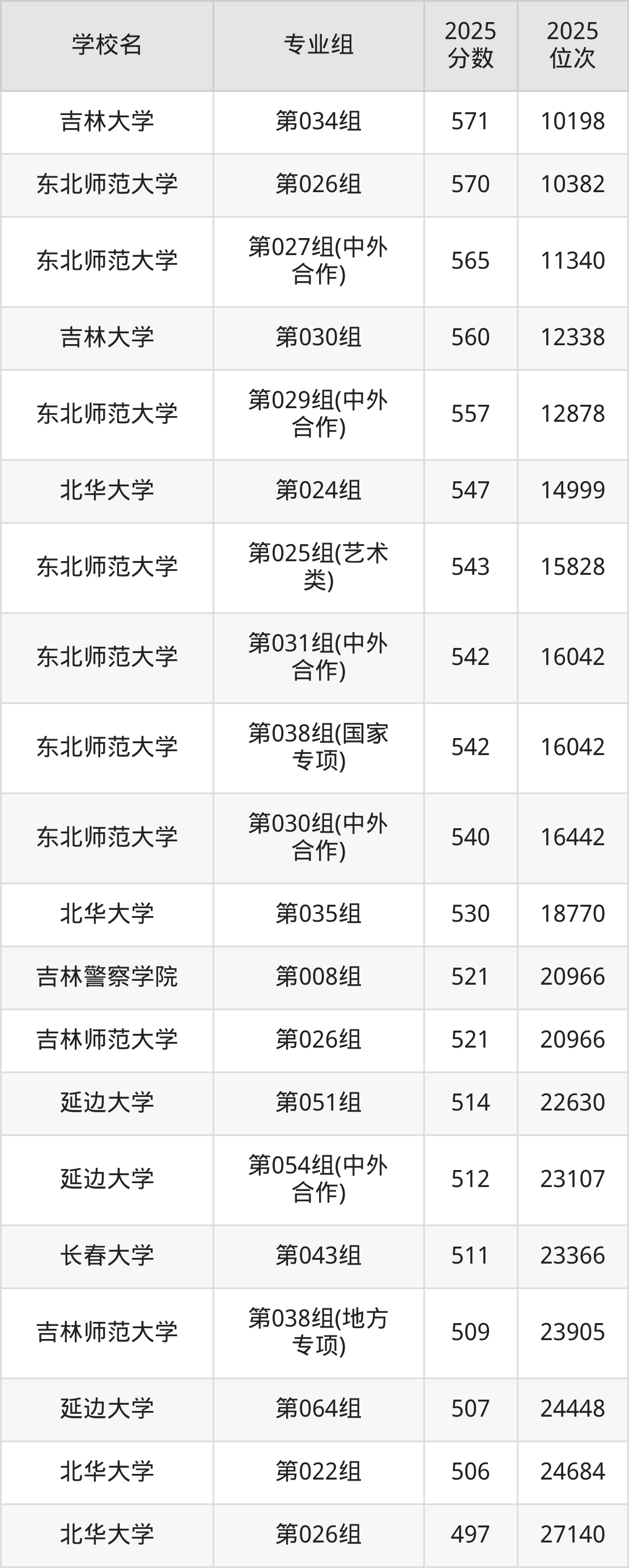 吉林省所有文科院校2025年录取分数线一览表(前100院校专业组):