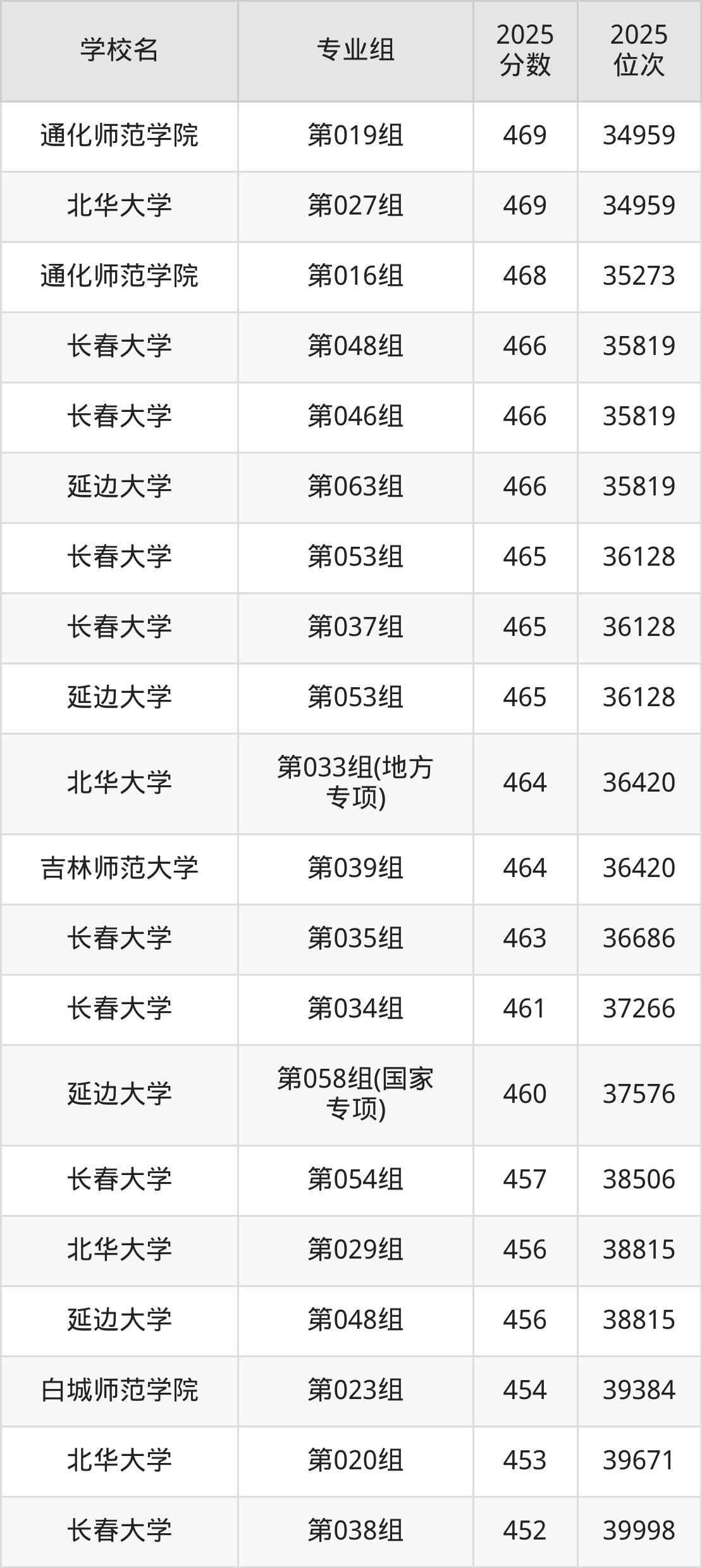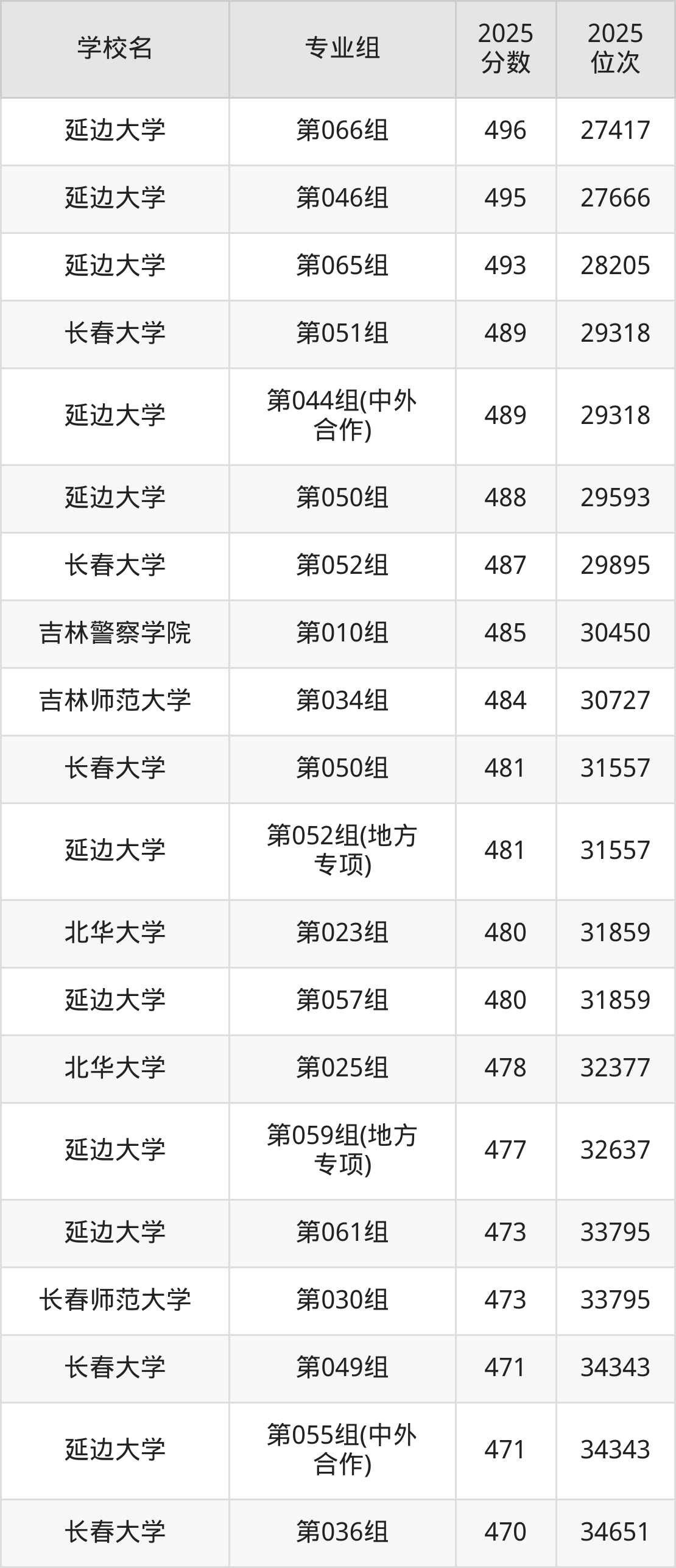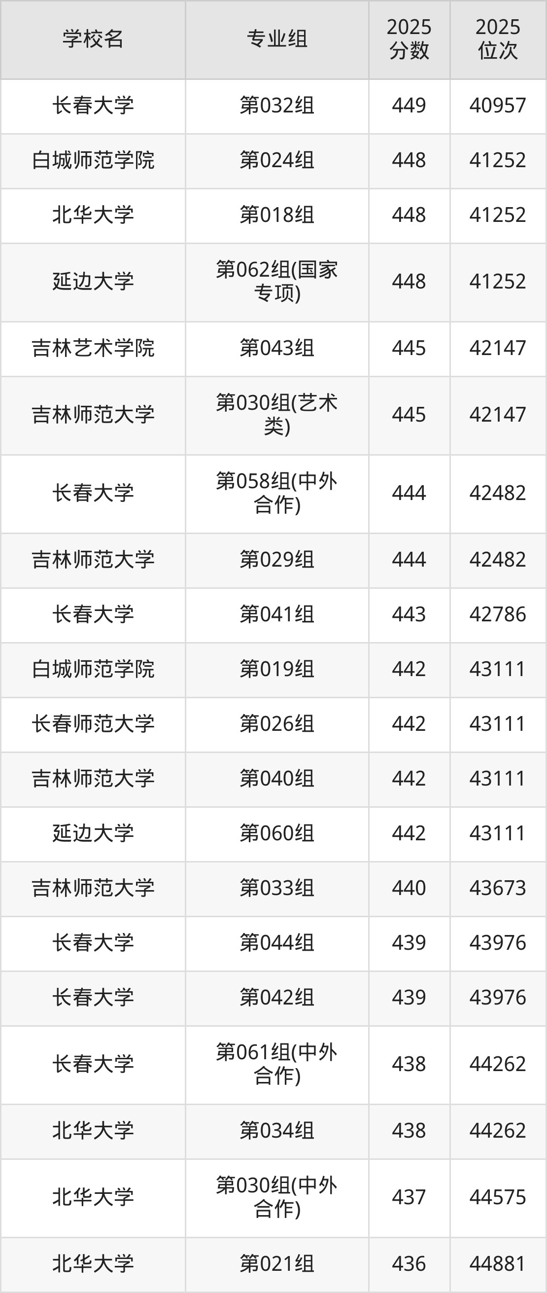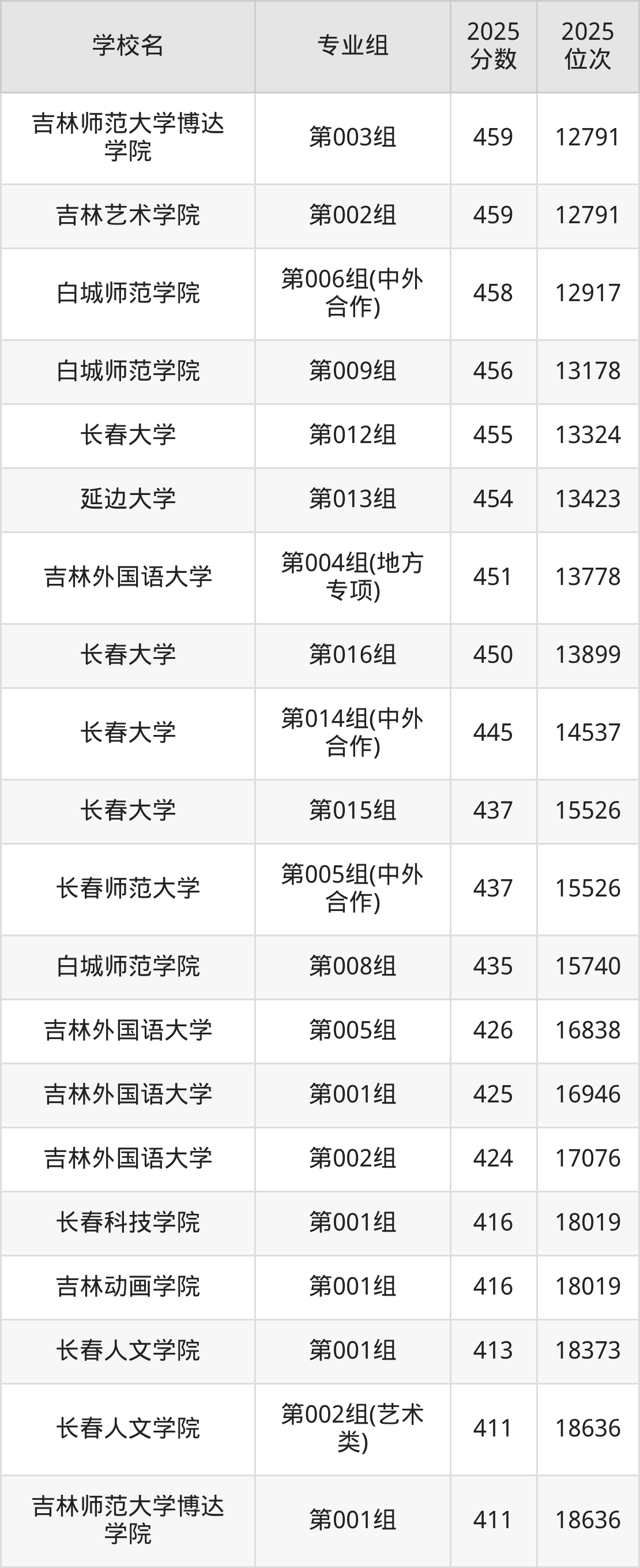 吉林省所有文科院校2025年录取分数线一览表(前100院校专业组):