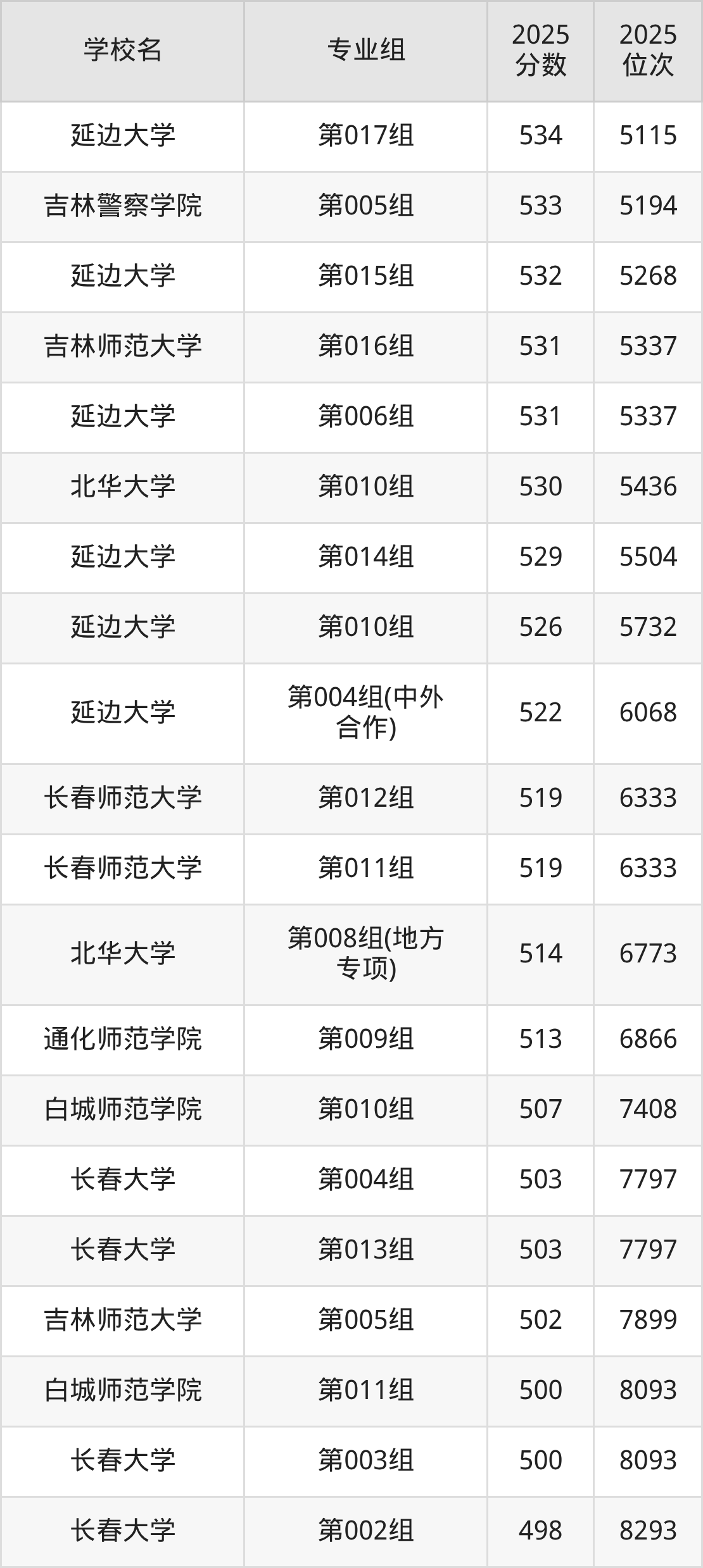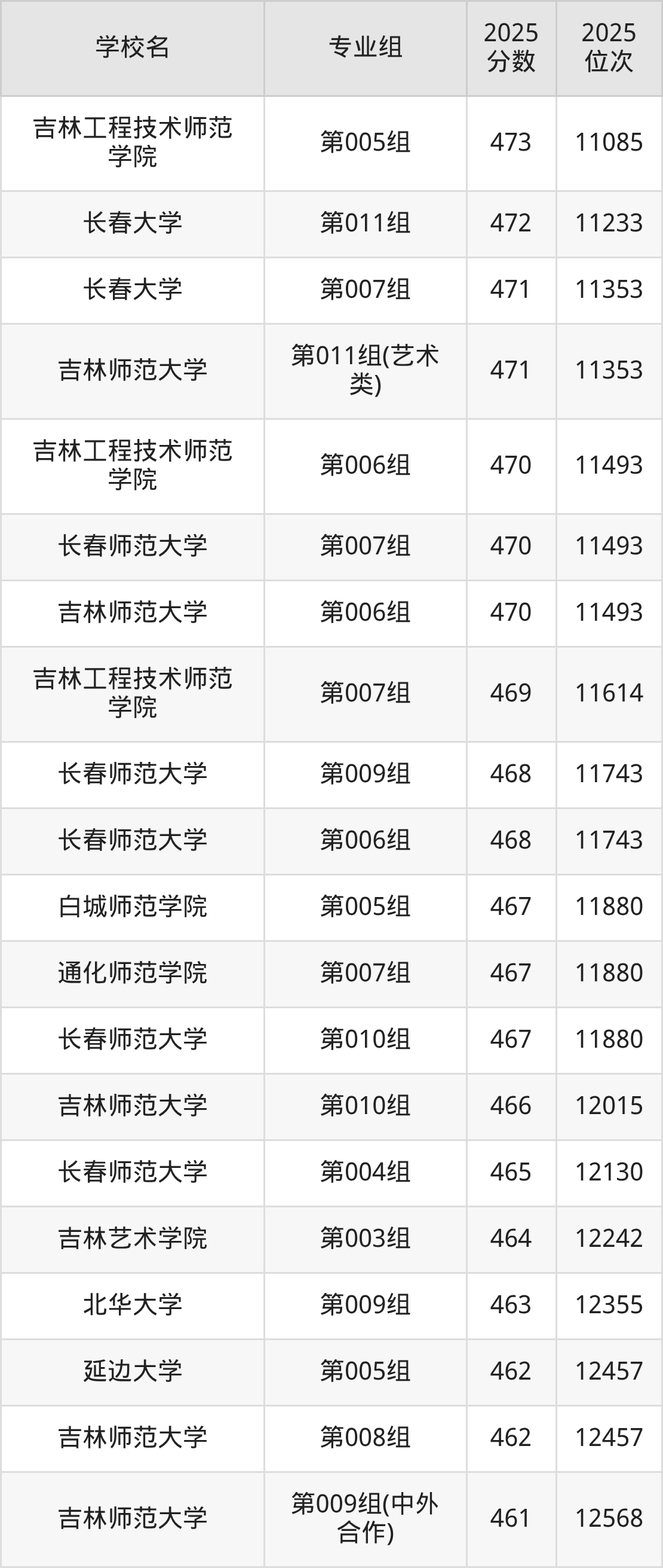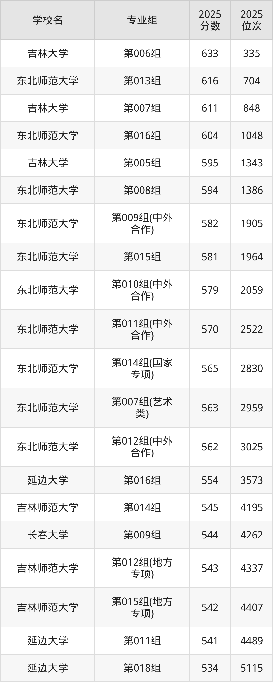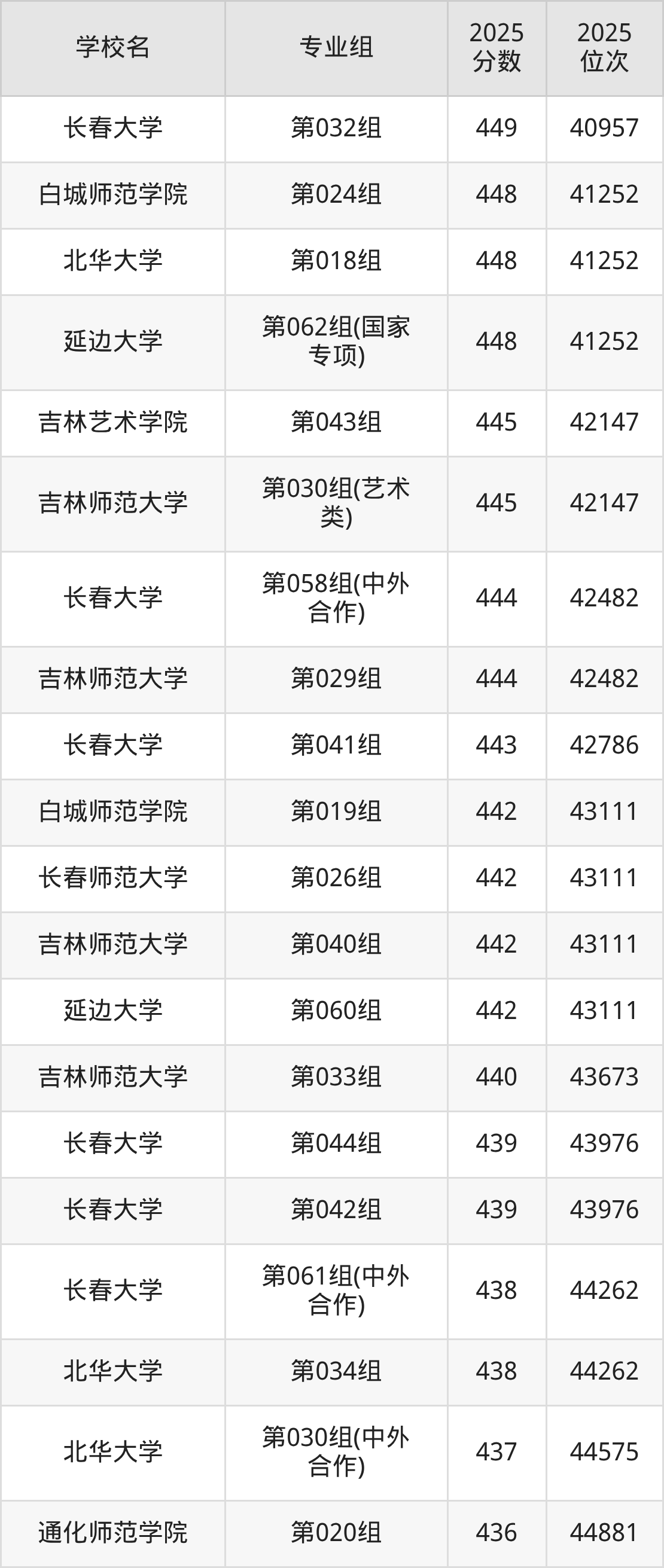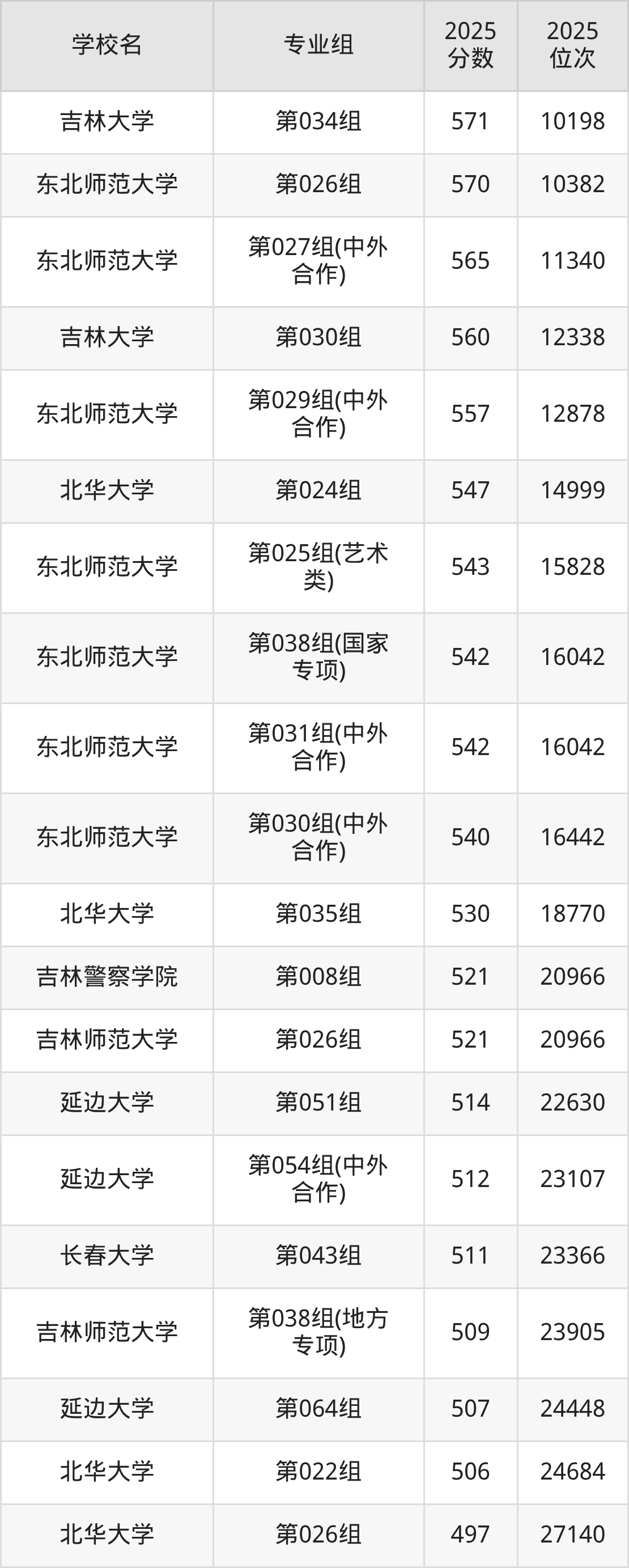 吉林省所有文科院校2025年录取分数线一览表:
