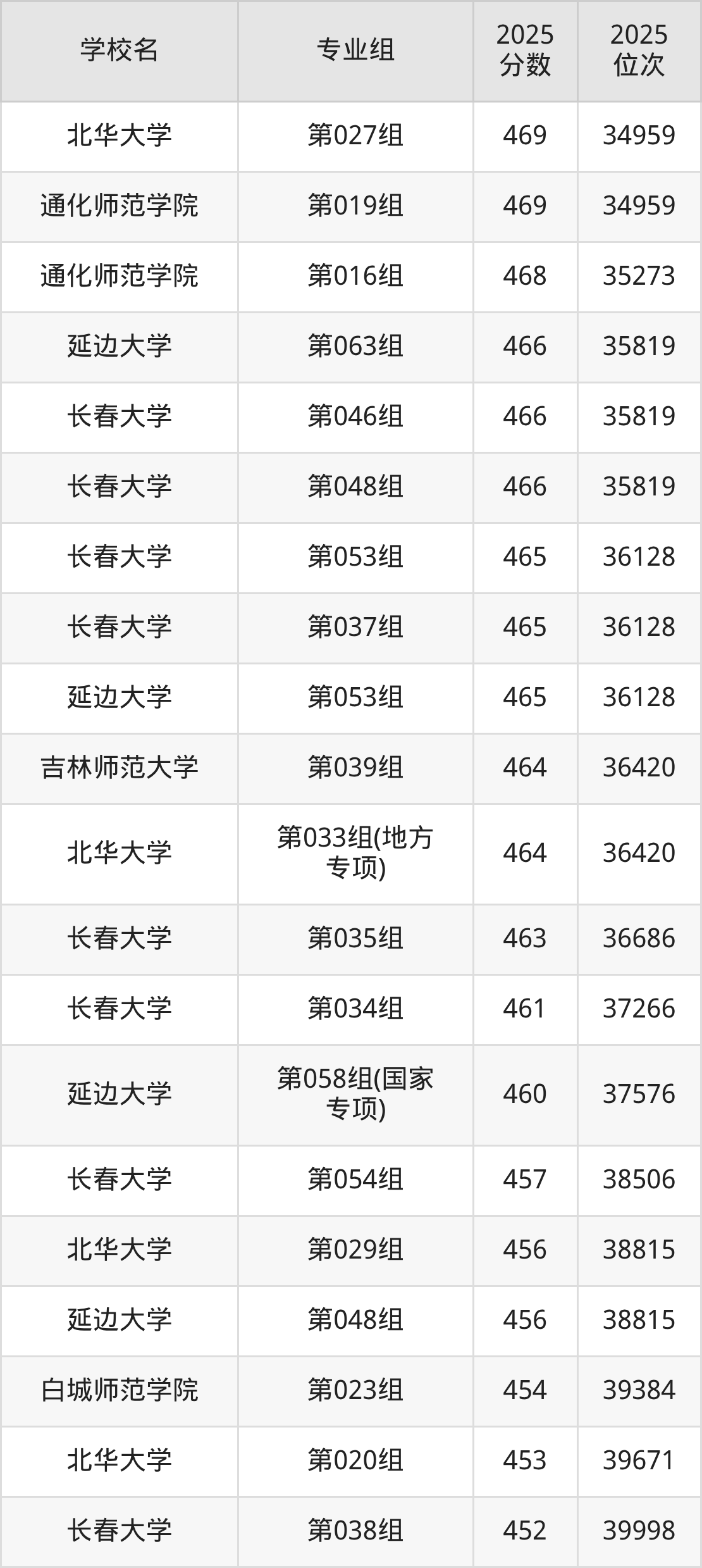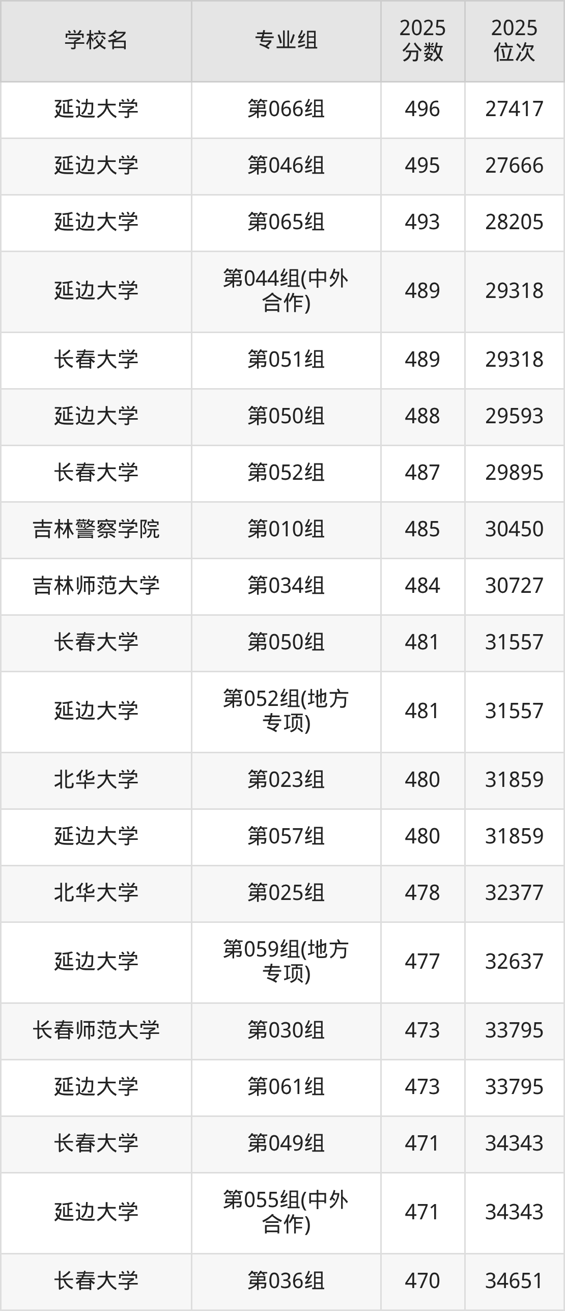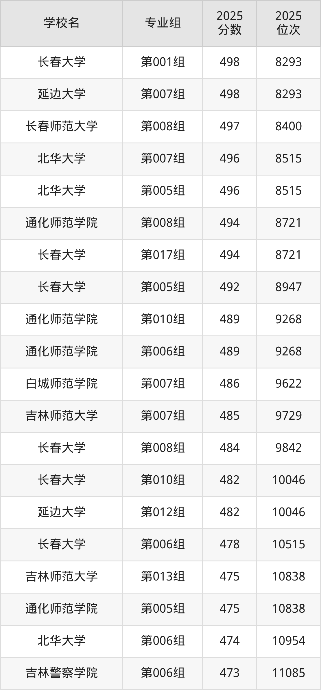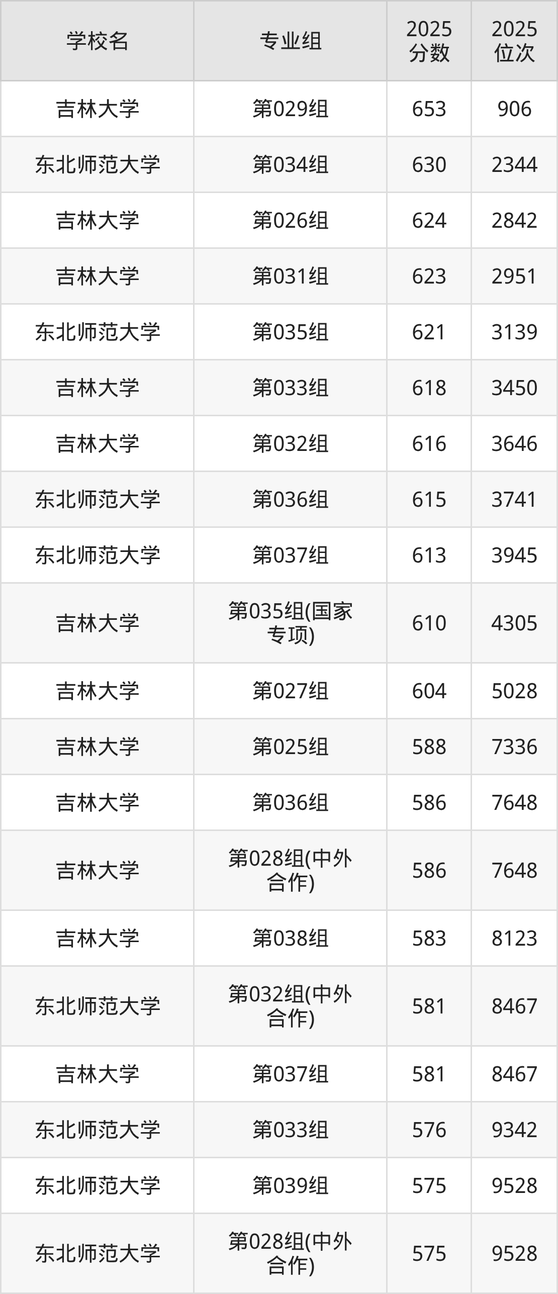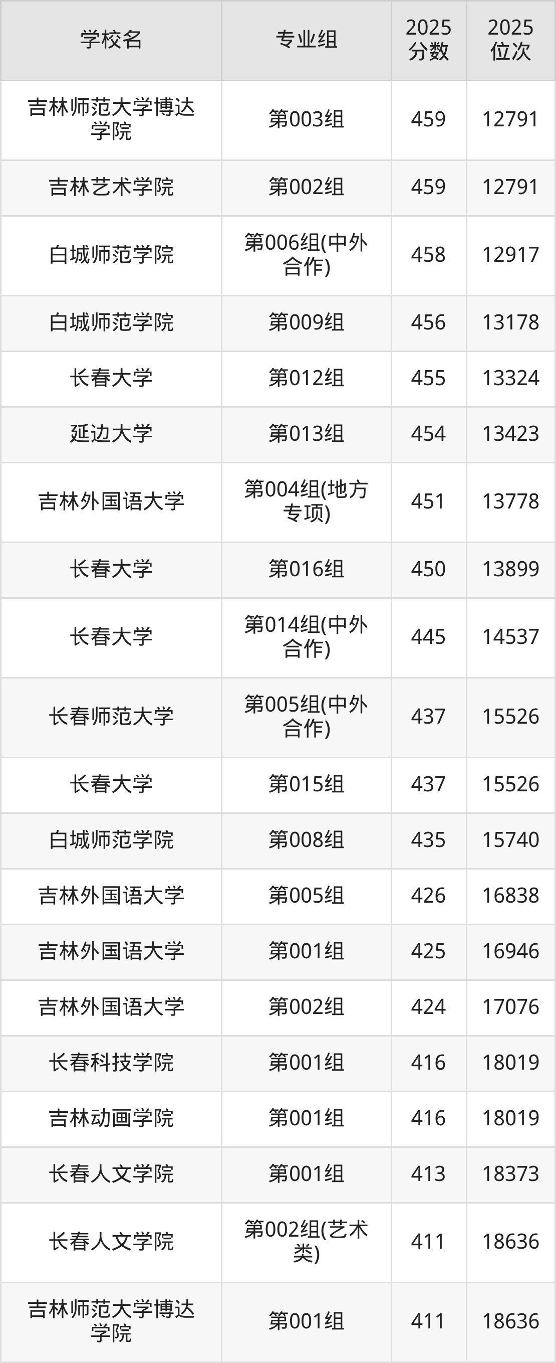吉林省所有文科院校2025年录取分数线一览表: