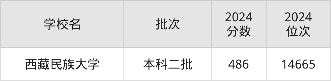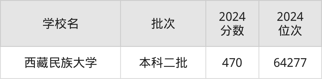 理科最好考、收分最低的是:西藏民族大学,2024年最低分470分,最低排名64277名;文科最好考、收分最低的是:西藏民族大学,2024年最低分486分,最低排名14665名。
