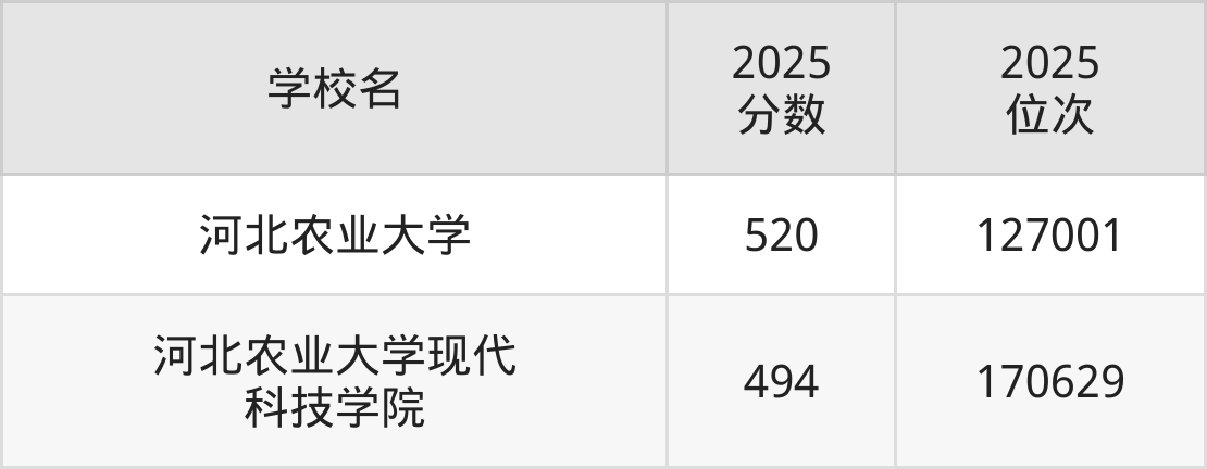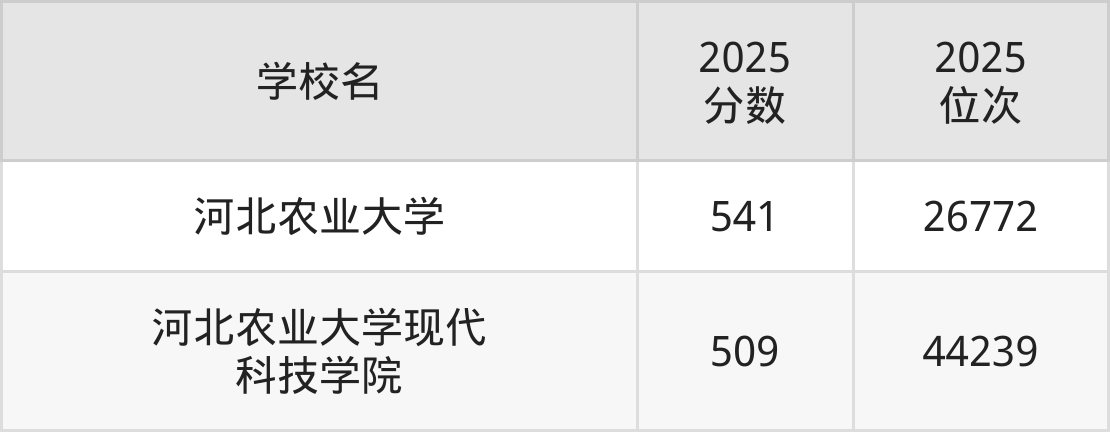 按照2025年河北省所有农林类院校在省内录取分数线高低排名,为大家整理出了河北所有农林类院校名单如下。