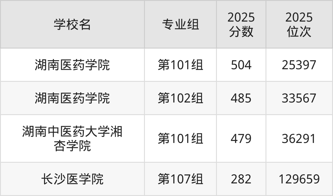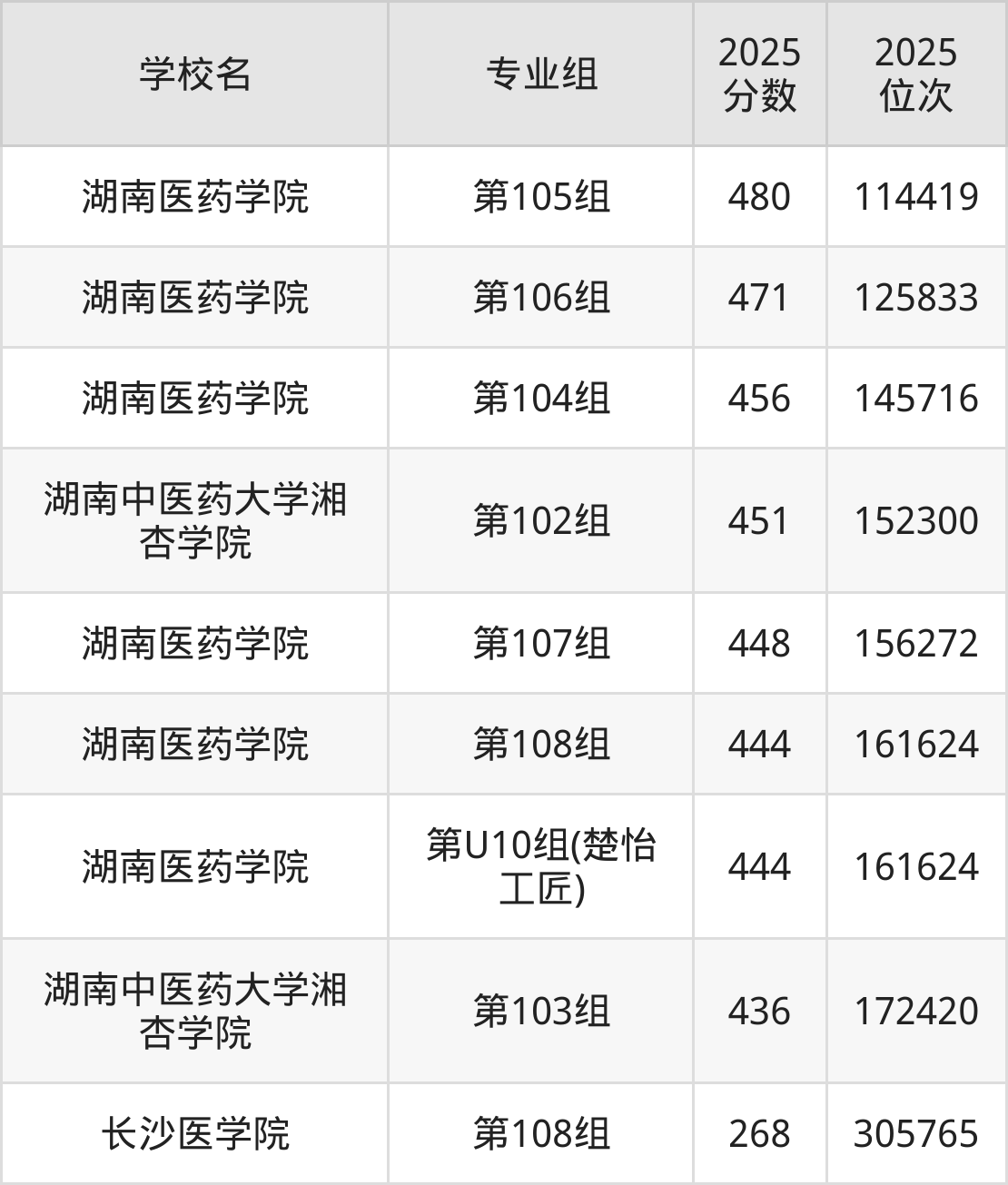 湖南省所有二本医科院校2025年录取分数线一览表(前9院校专业组):