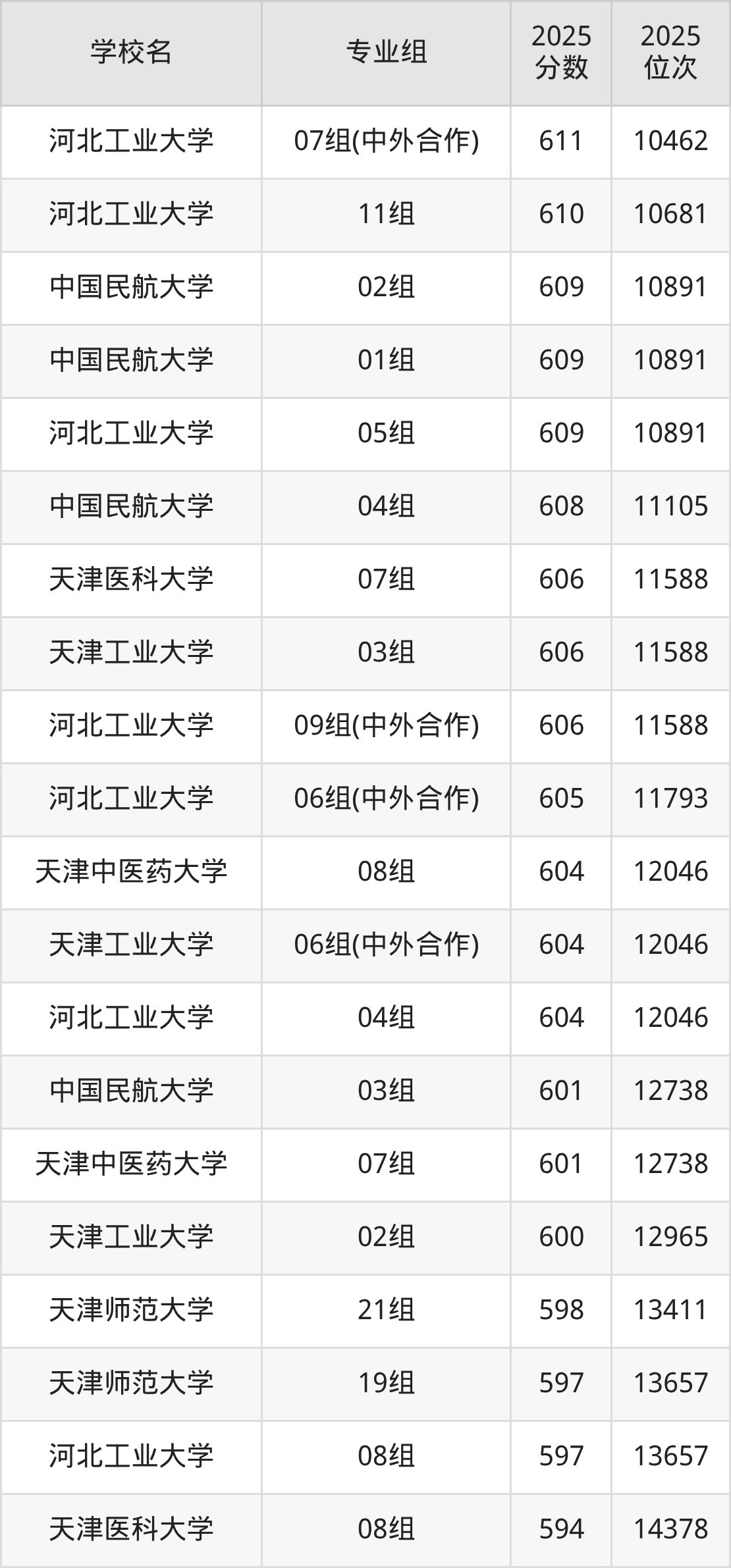 最好考、收分最低的是:天津城建大学,2025年08组(中外合作)最低分502分,最低排名39655名。
