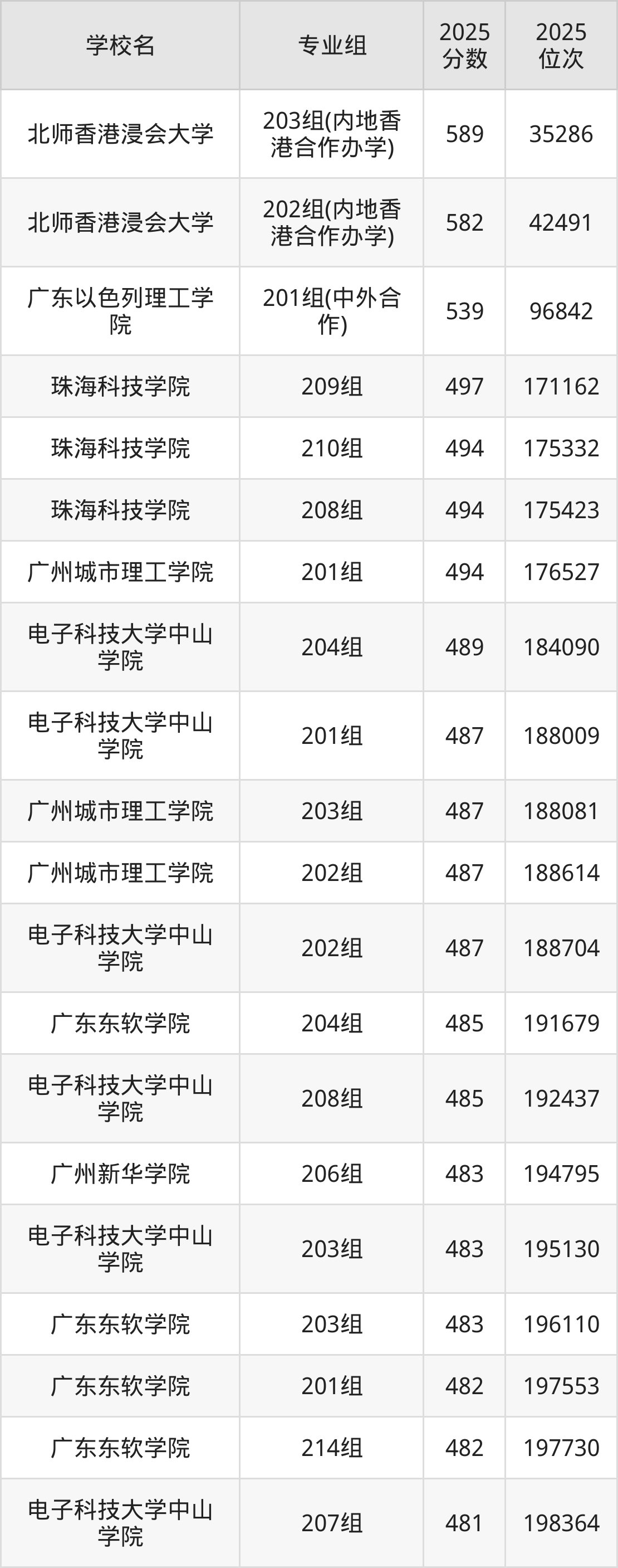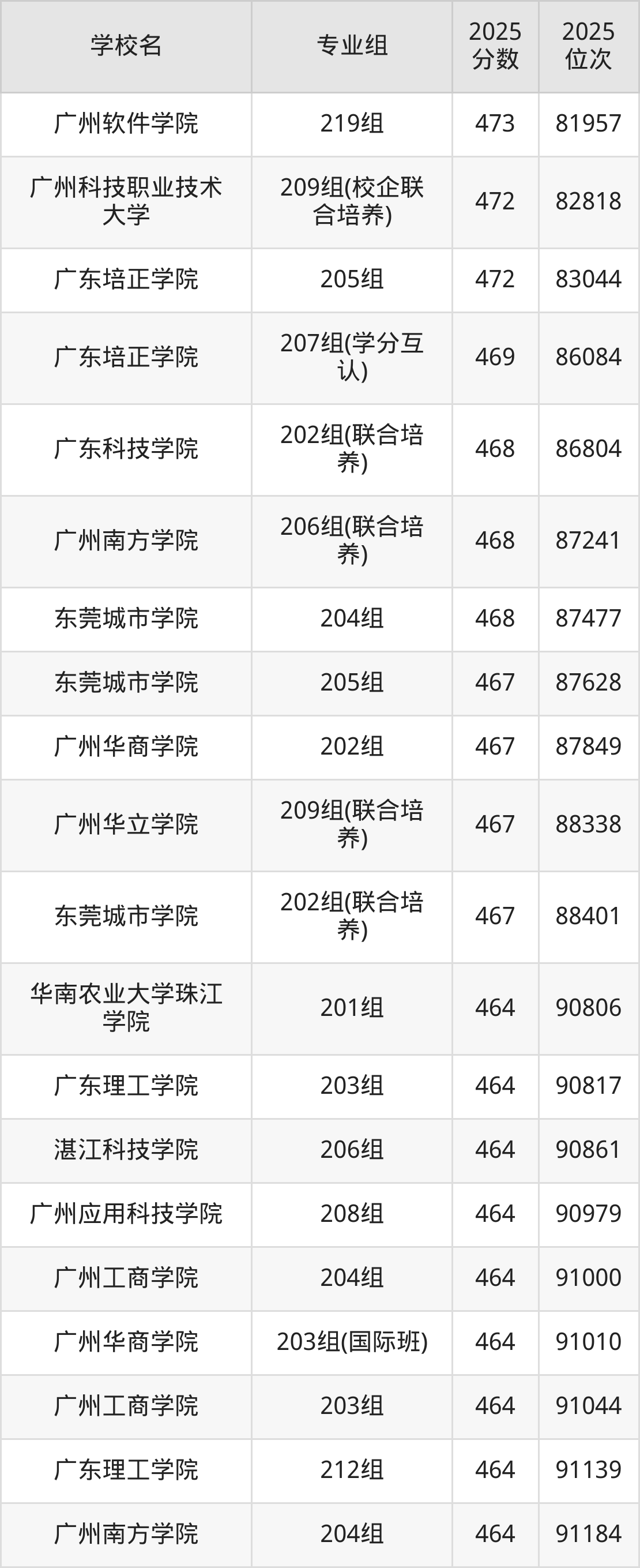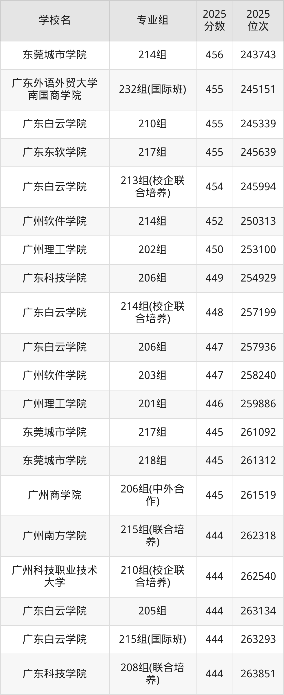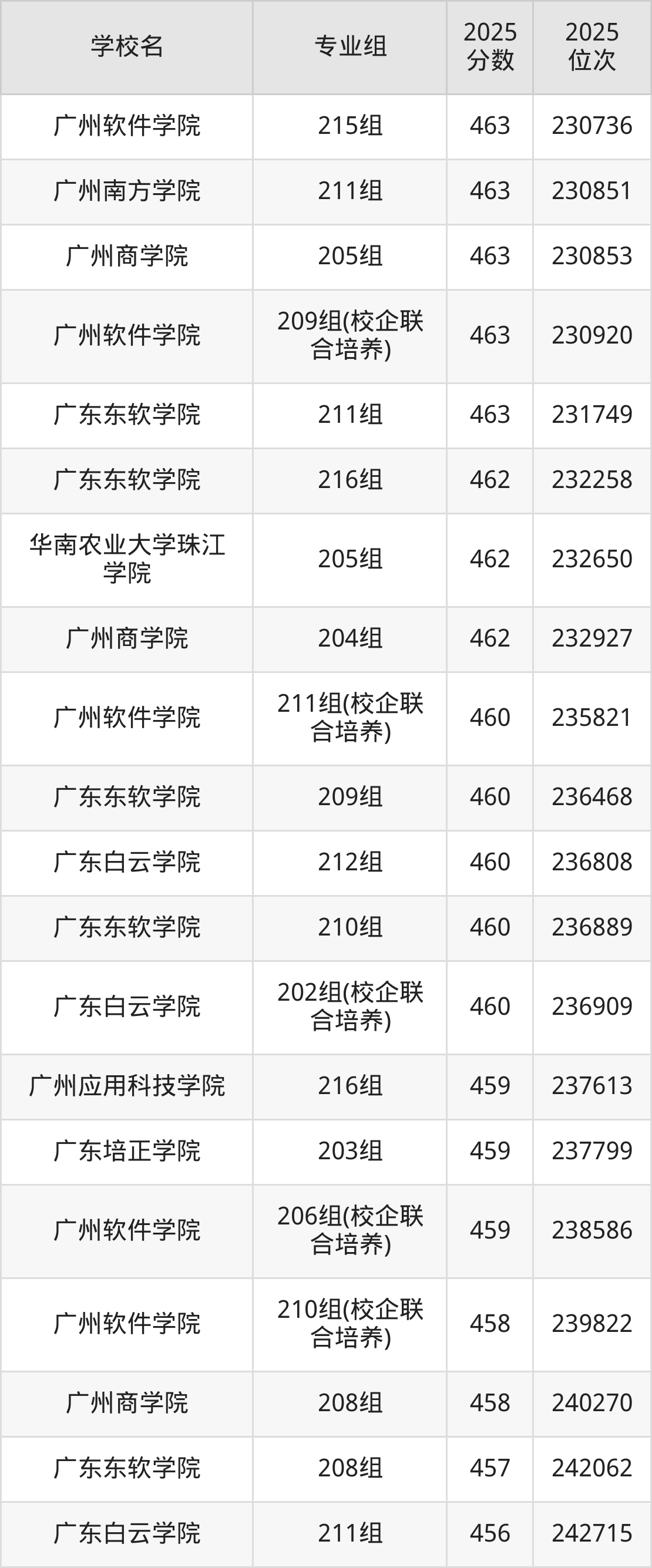 广东省所有民办本科院校2025年录取分数线一览表(前100院校专业组):