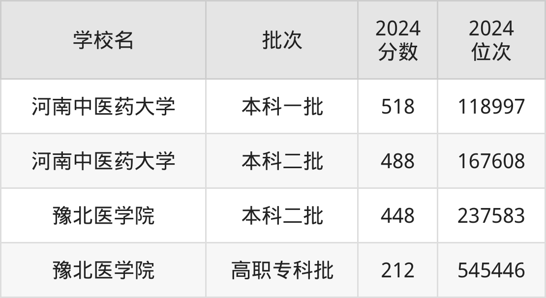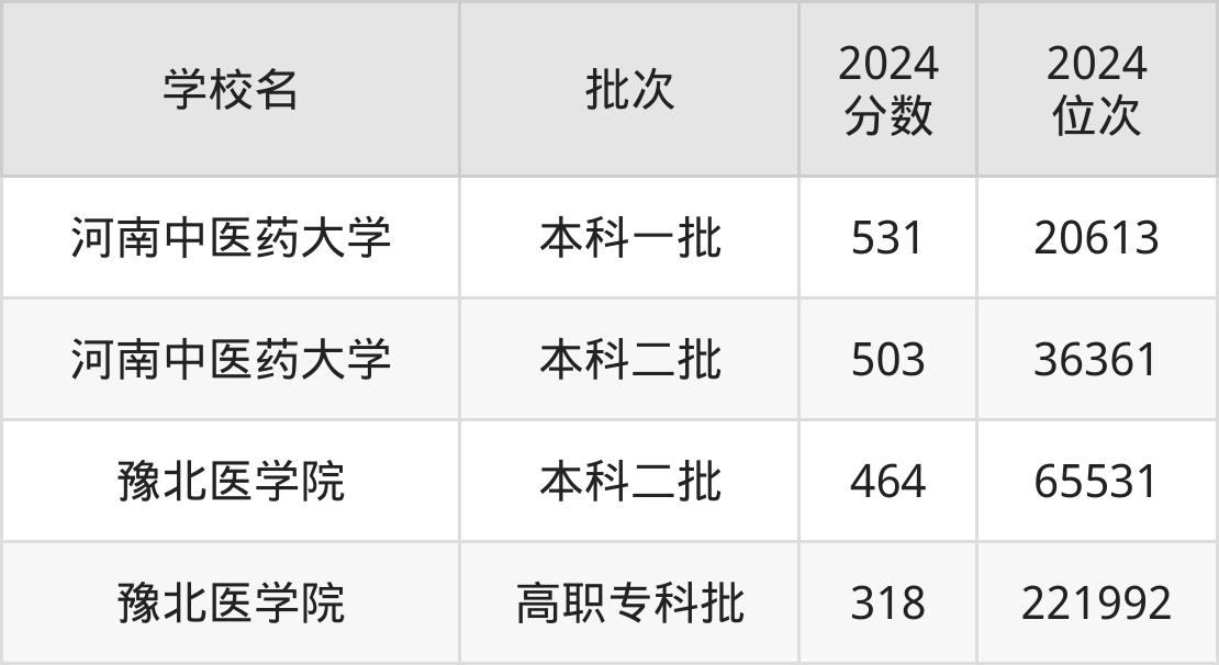 河南省所有二本医科院校2024年录取分数线一览表(前4院校):