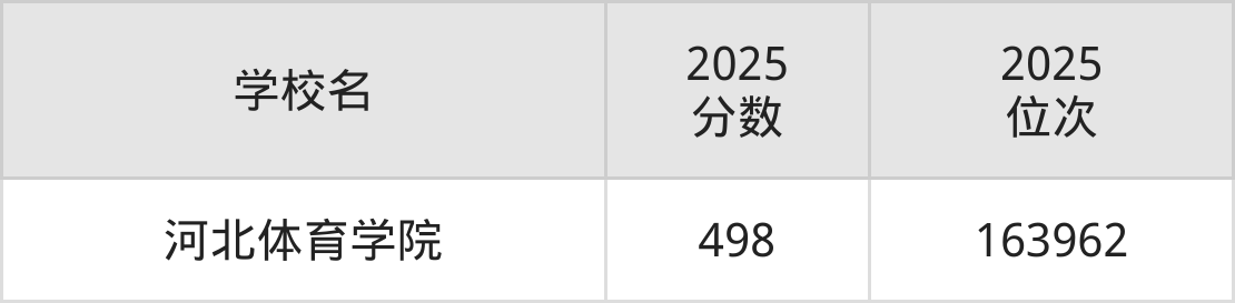 按照2025年河北省所有体育类院校在省内录取分数线高低排名,为大家整理出了河北所有体育类院校名单如下。