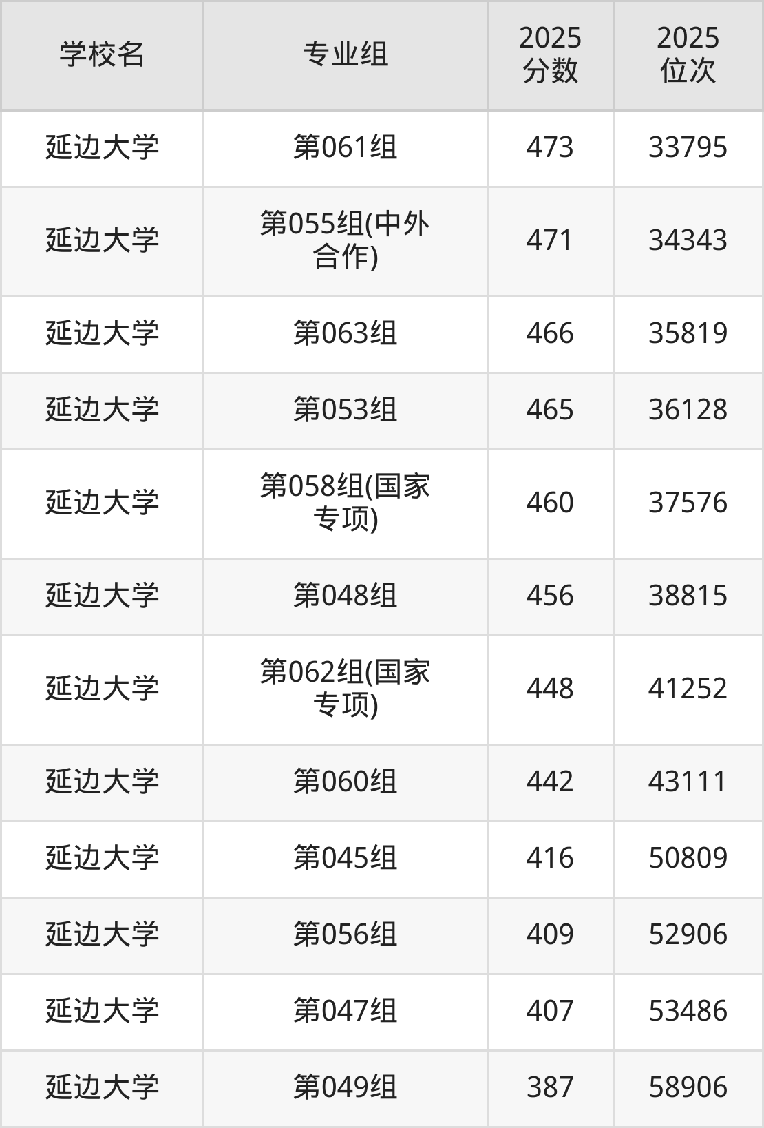 物理类最好考、收分最低的是:延边大学,2025年第049组最低分387分,最低排名58906名;历史类最好考、收分最低的是:延边大学,2025年第008组最低分386分,最低排名21408名。