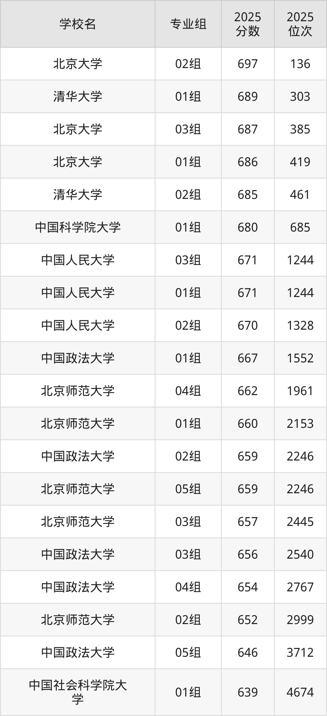 最难考、收分最高的是:北京大学,2025年学校的02组最低分697分,对应排位136名。