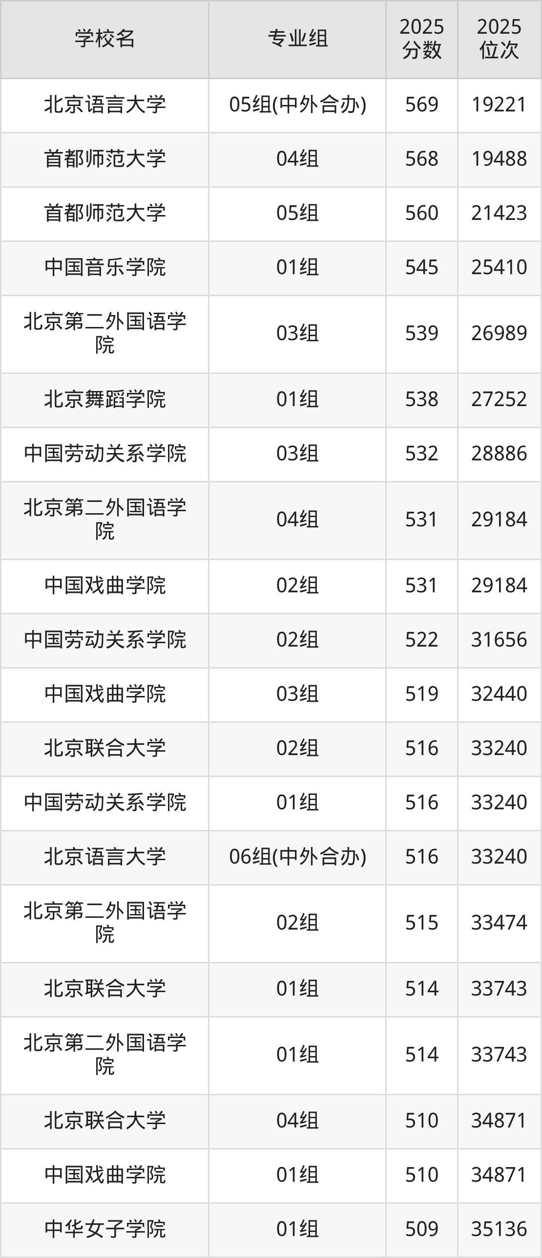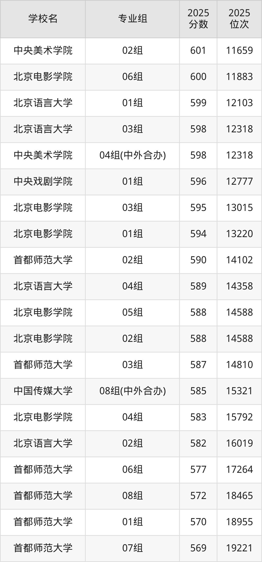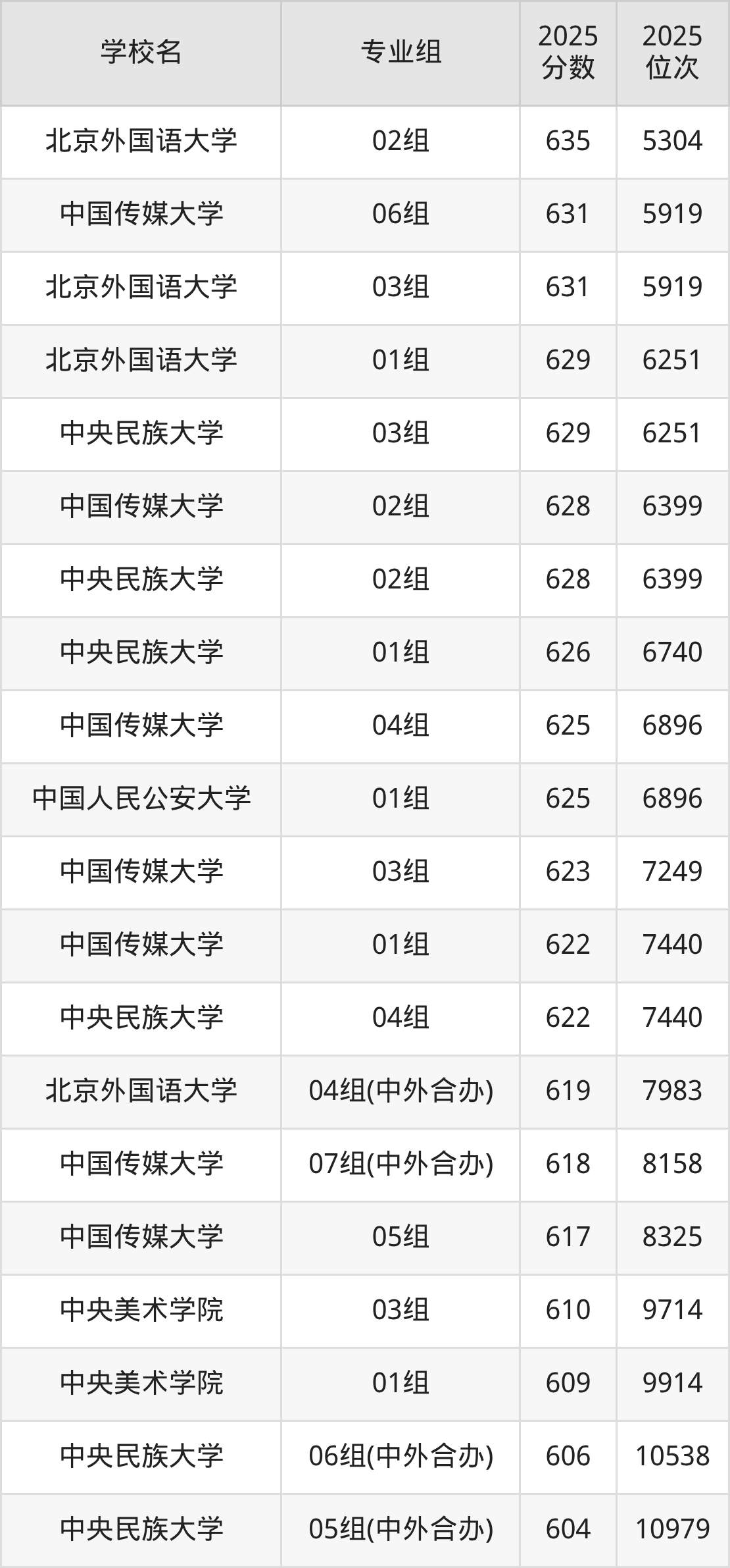 按照2025年北京市所有文科院校在市内录取分数线高低排名,为大家整理出了北京所有文科院校名单如下。