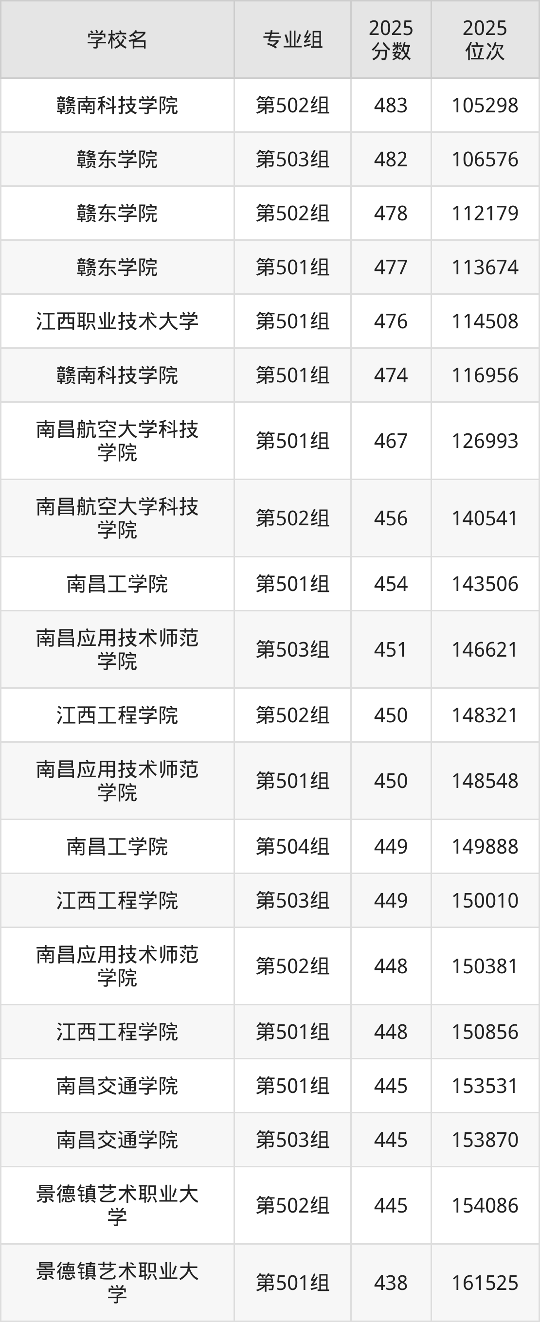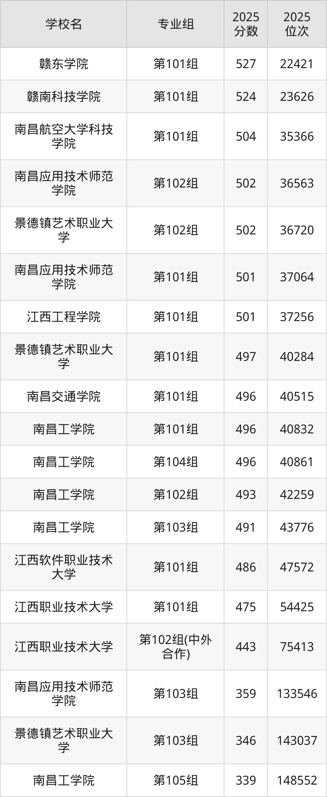江西省所有二本理工院校2025年录取分数线一览表(前29院校专业组):