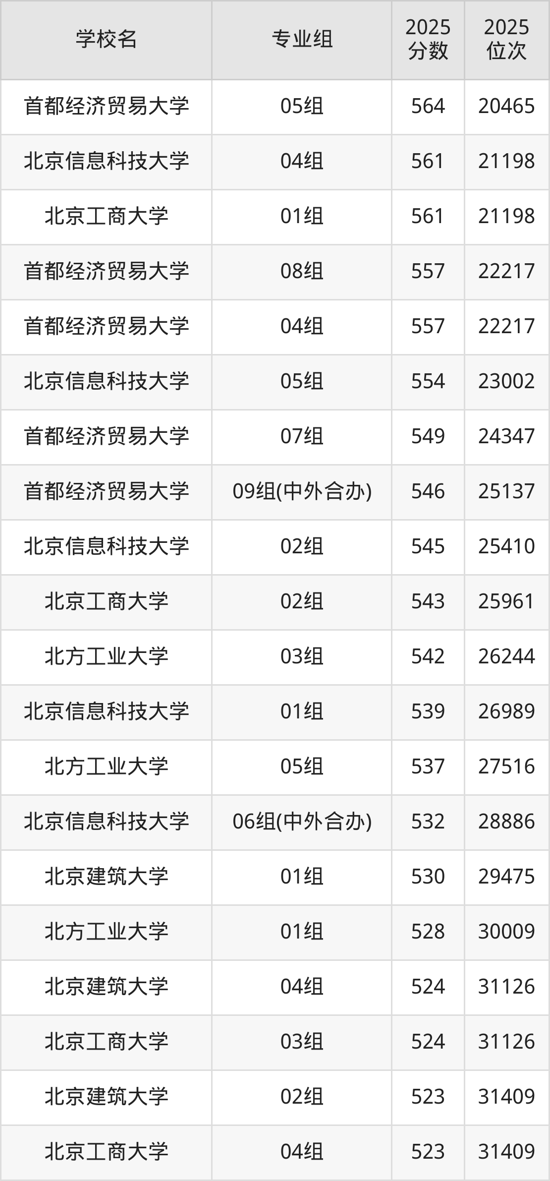 | 24 | 北京印刷学院 | 527 |