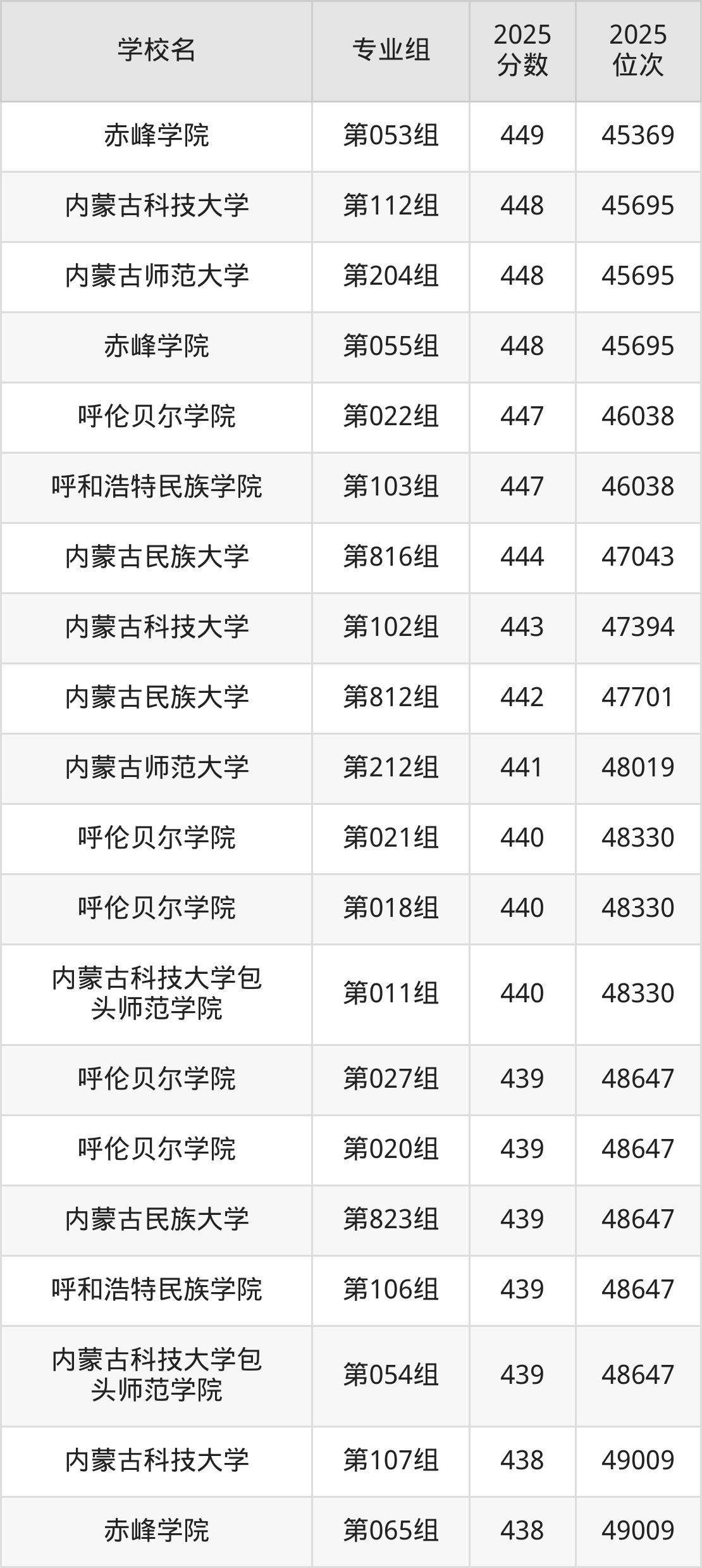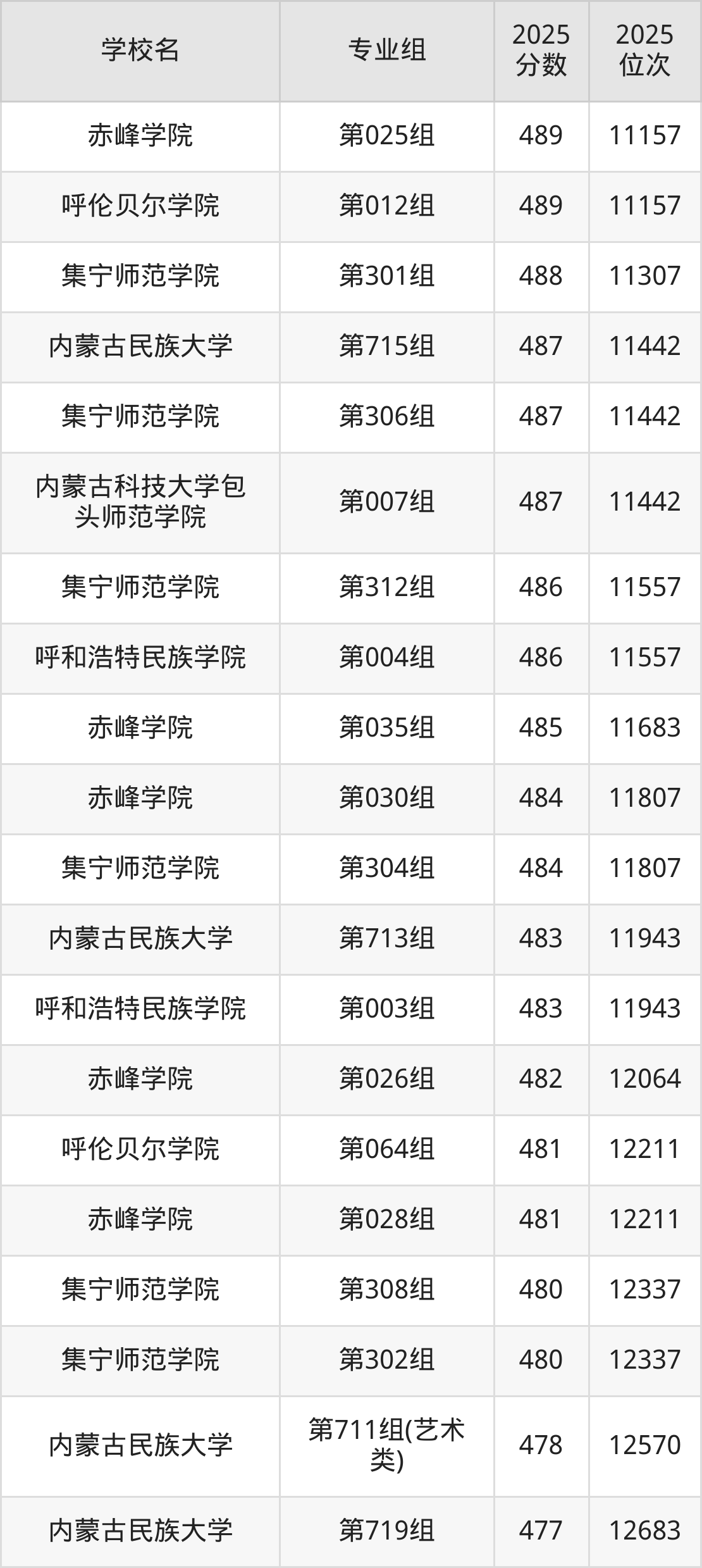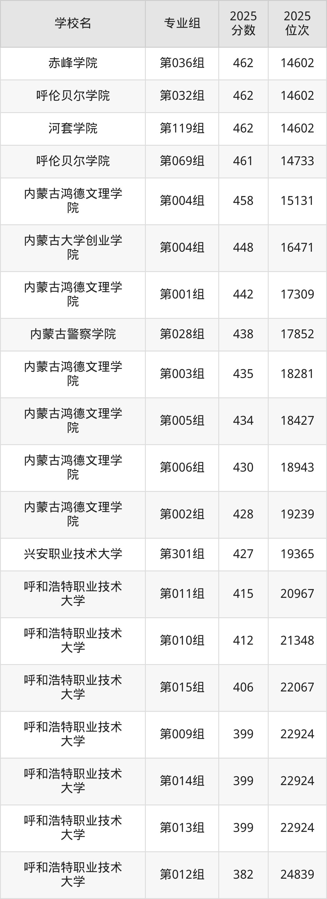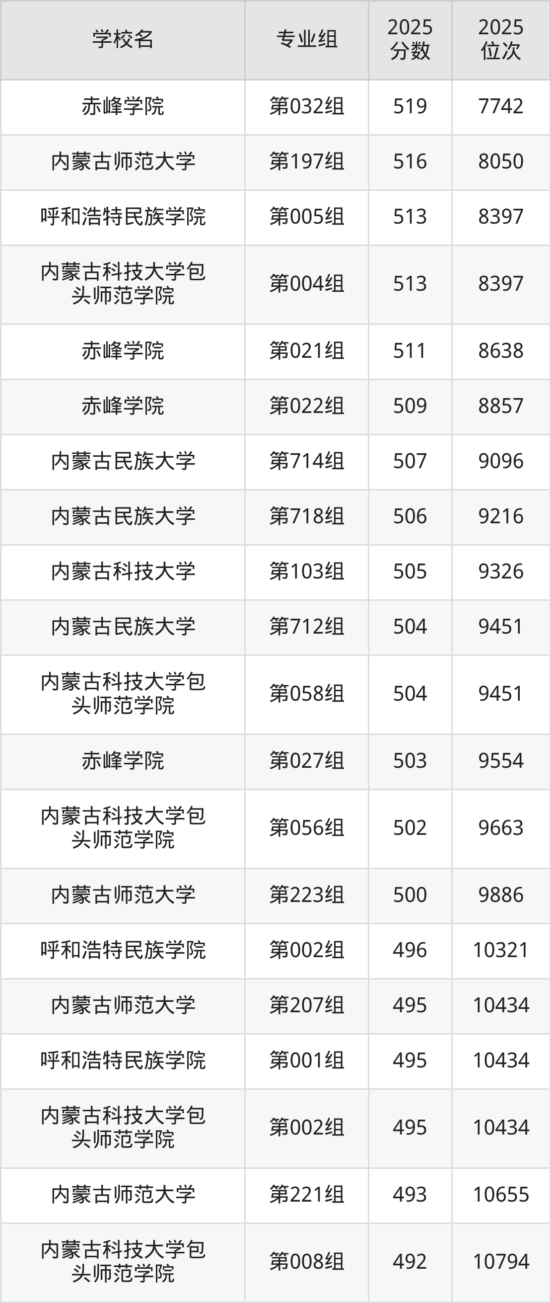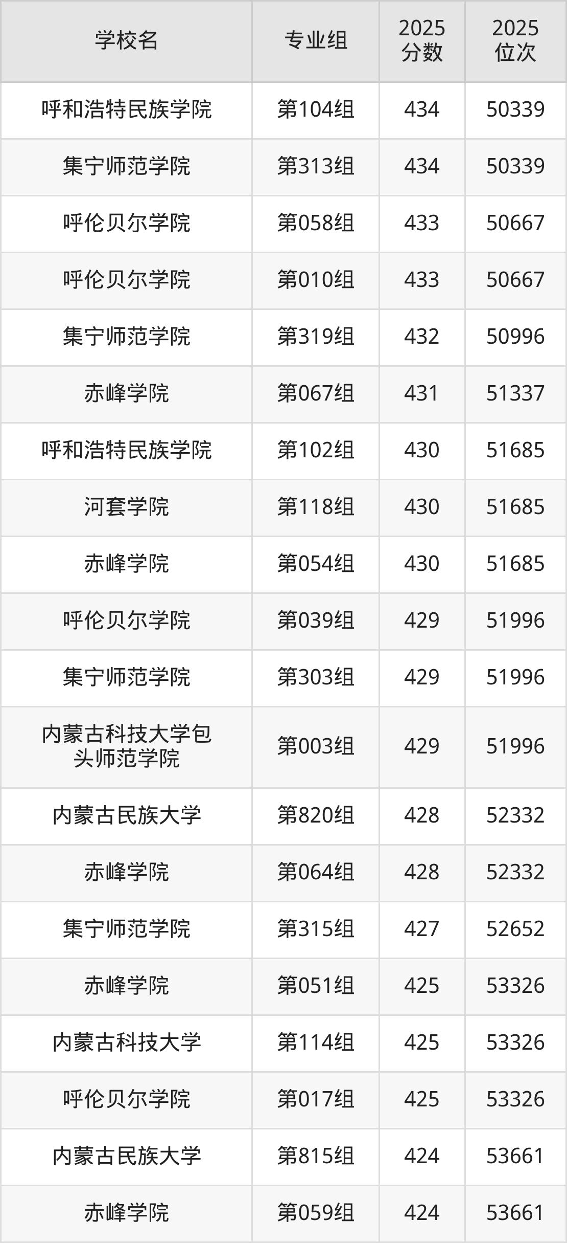 内蒙古自治区所有文科院校2025年录取分数线一览表(前100院校专业组):