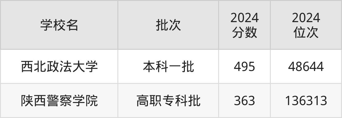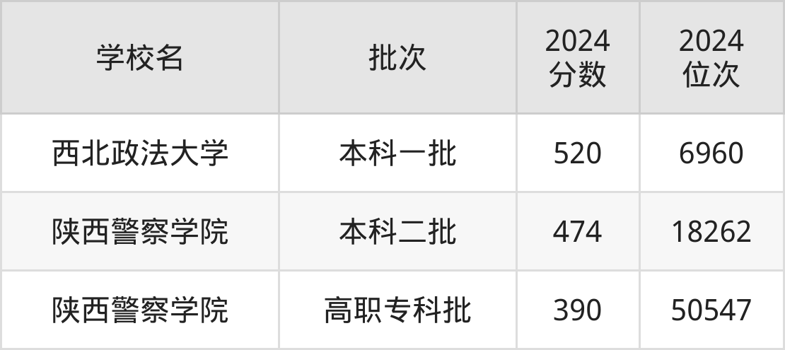 陕西省所有政法类院校2024年录取分数线一览表(前3院校):