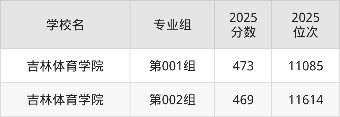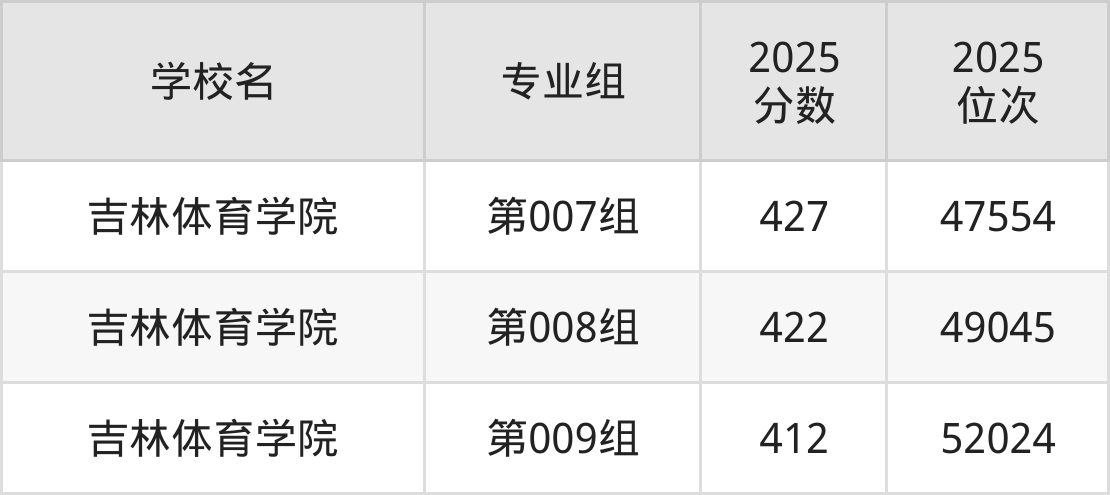吉林省所有体育类院校2025年录取分数线一览表(前3院校专业组):