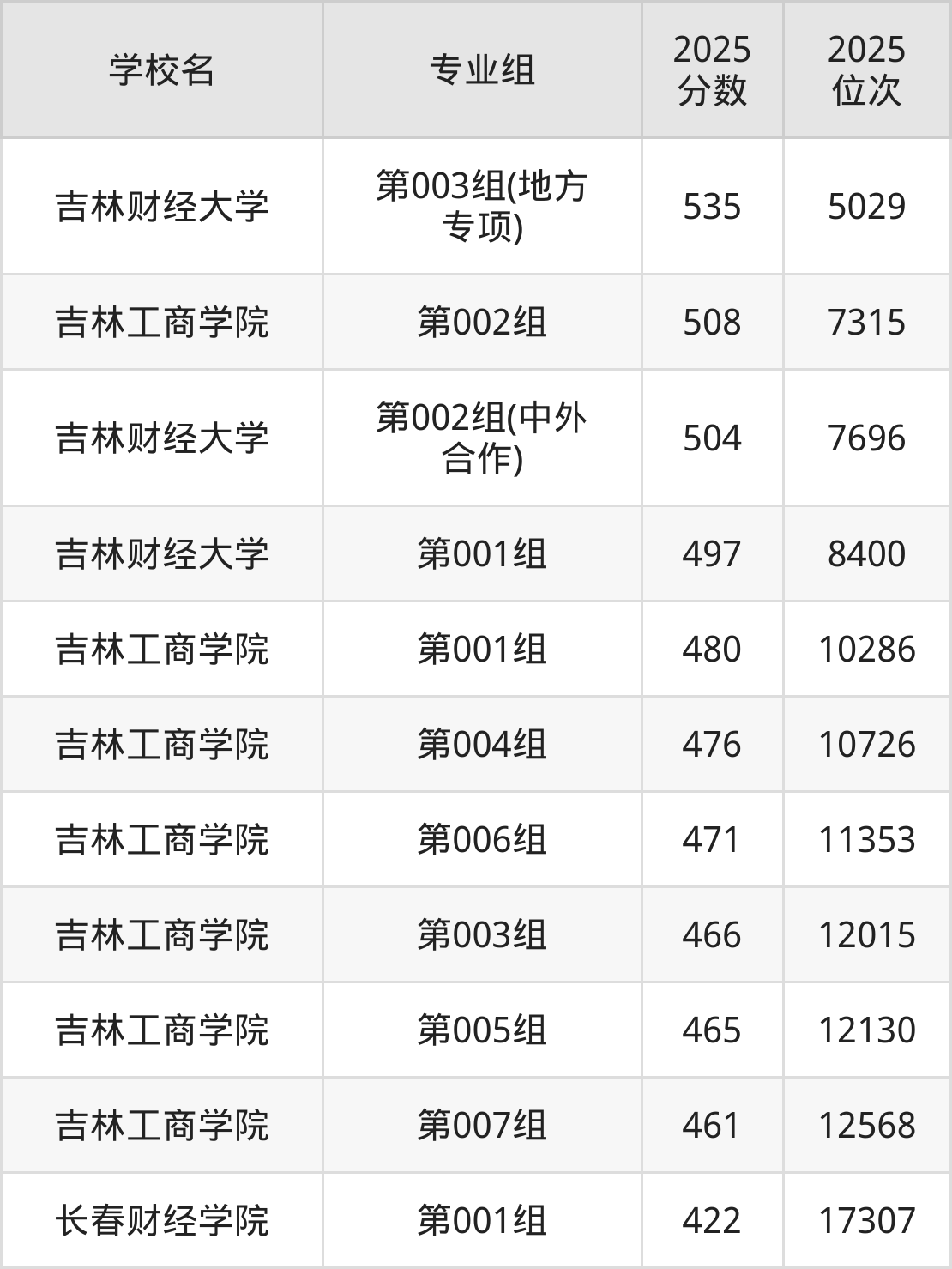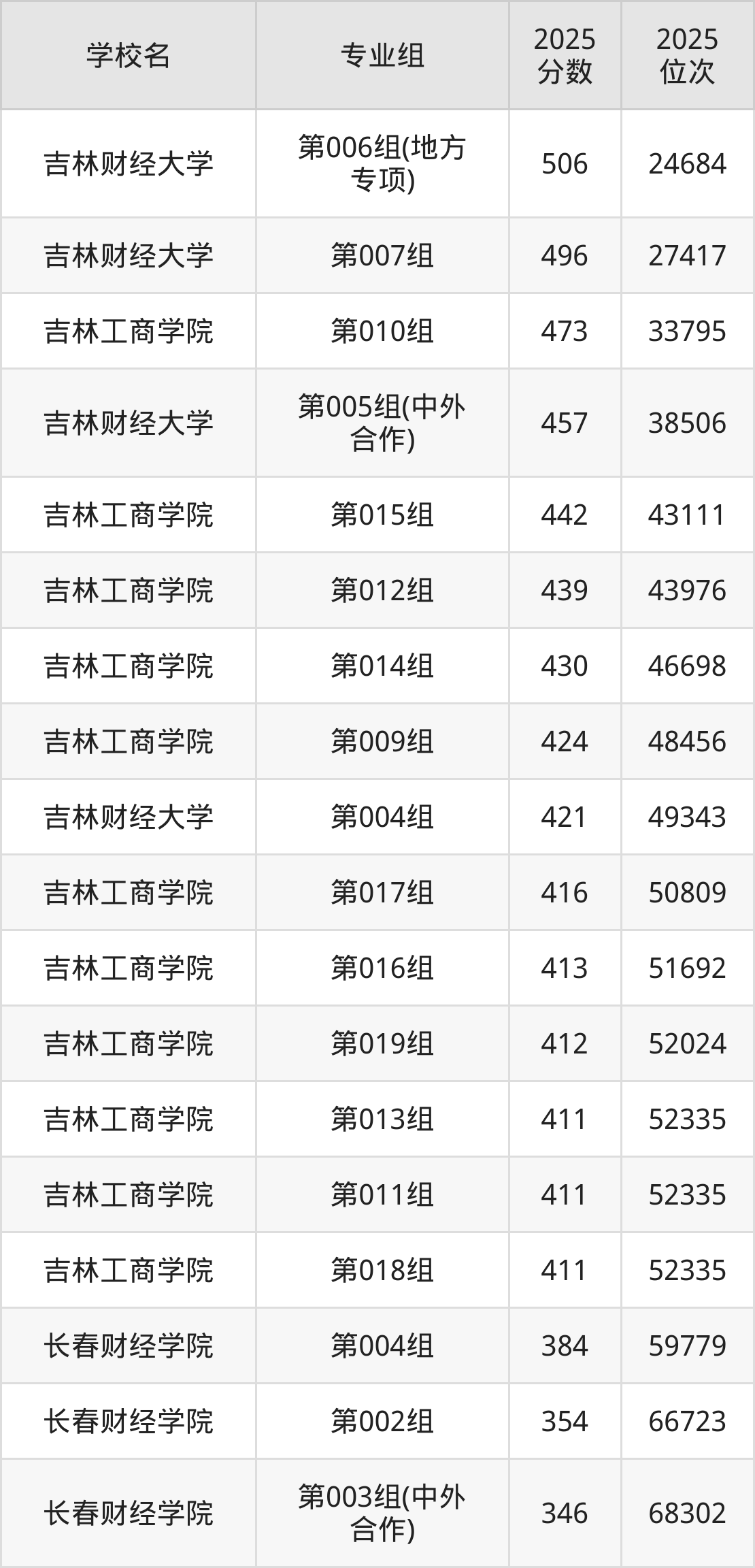 吉林省所有财经类院校2025年录取分数线一览表(前18院校专业组):