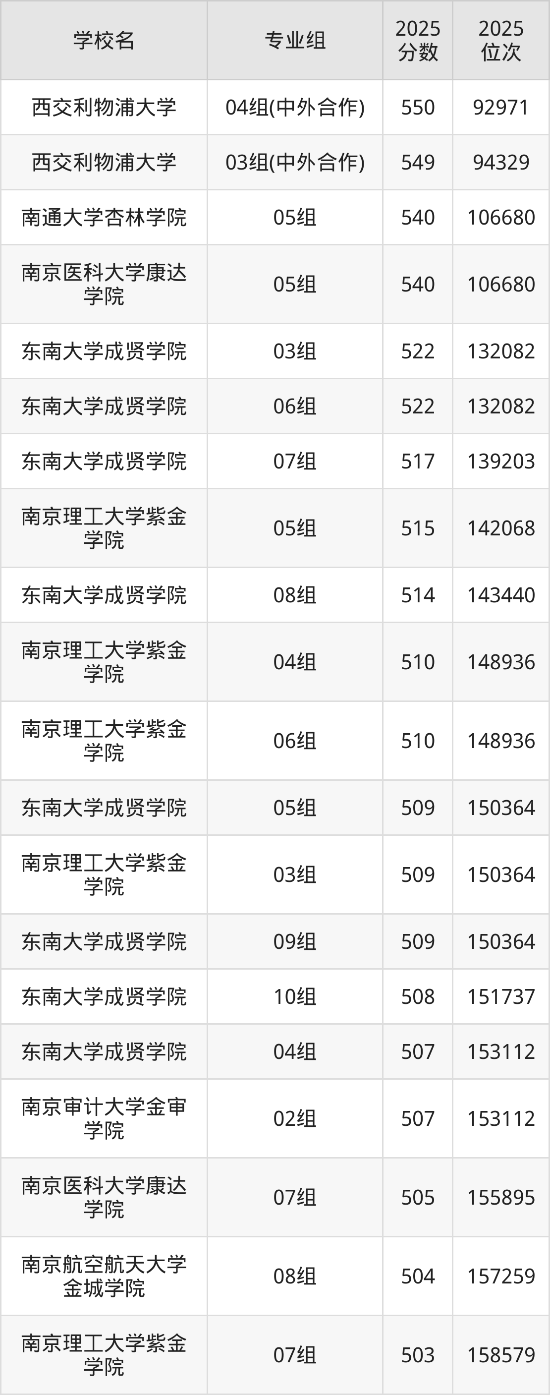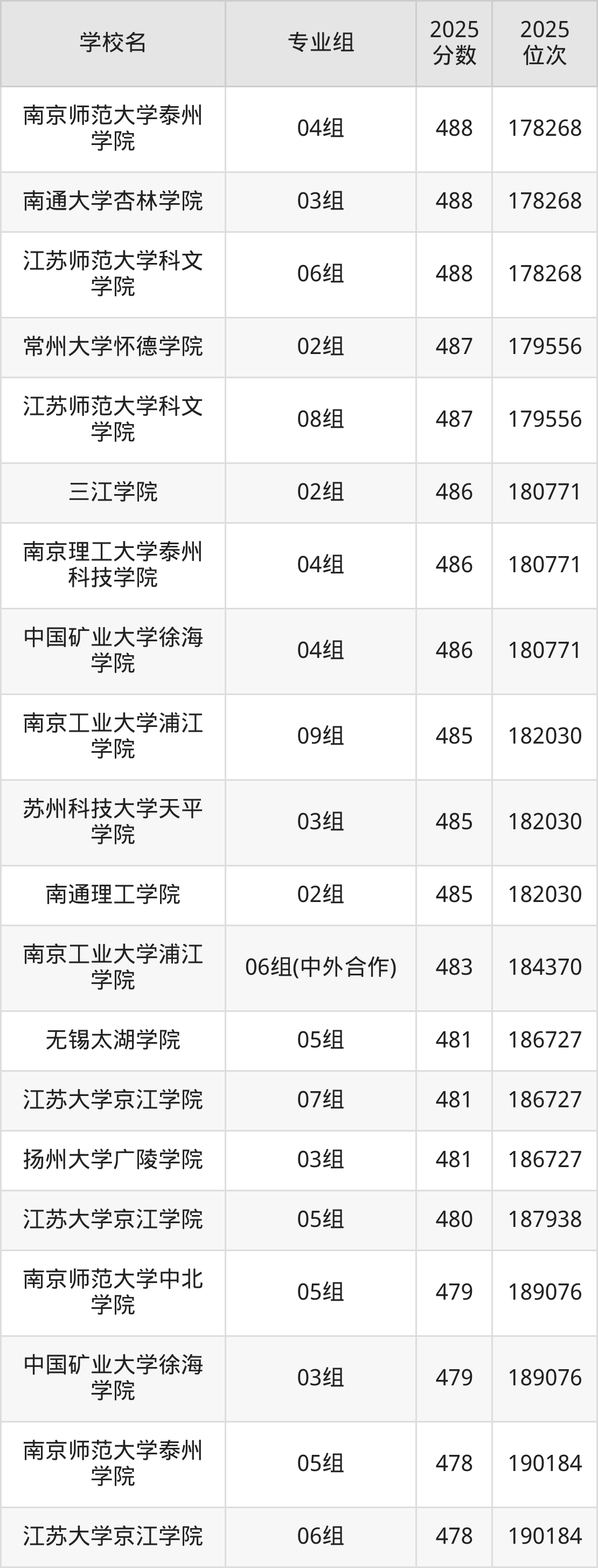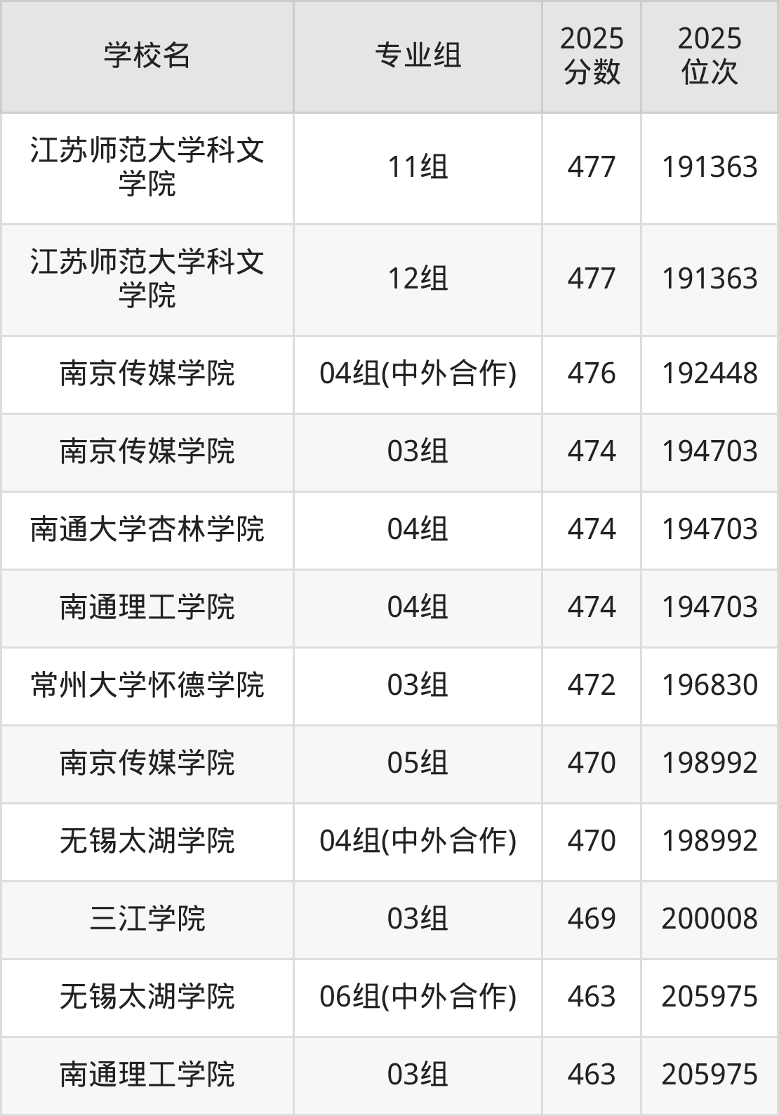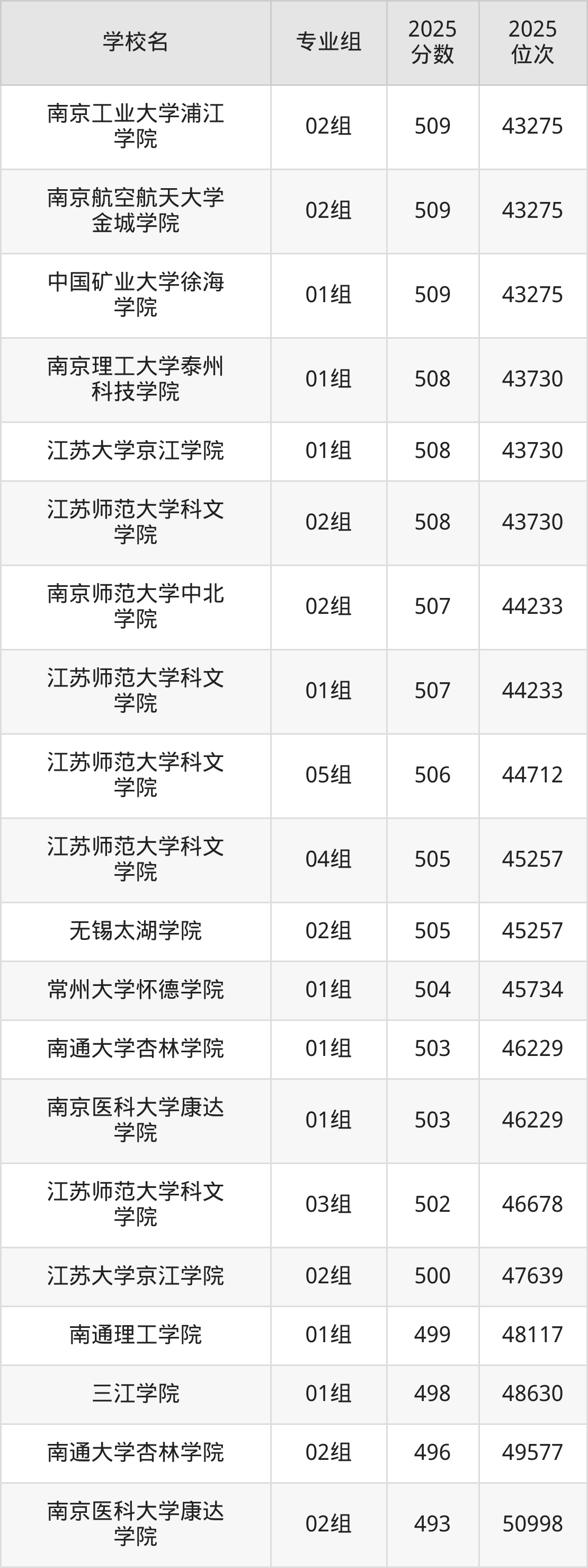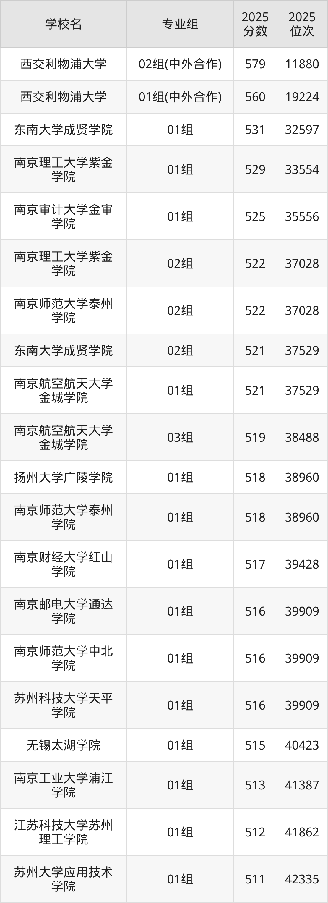 江苏省所有民办本科院校2025年录取分数线一览表(前92院校专业组):