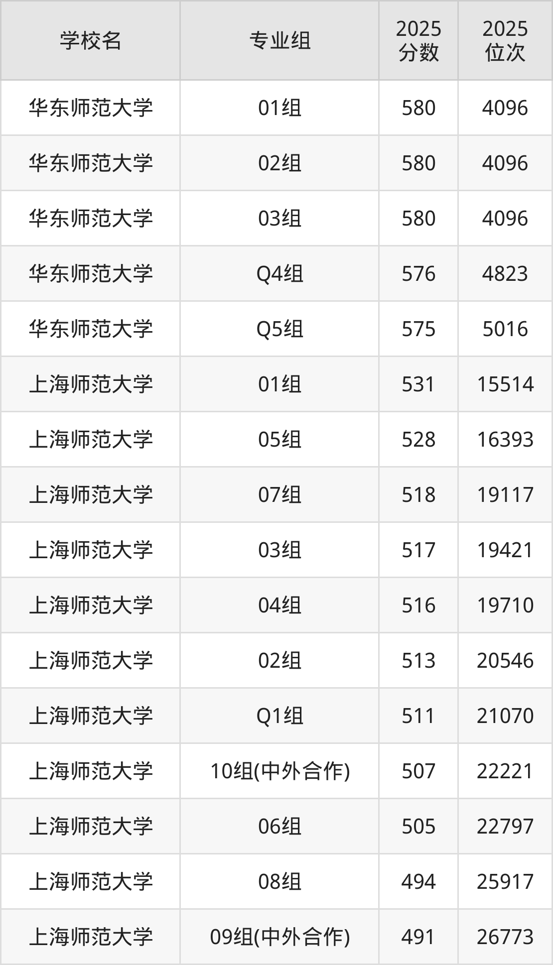 上海市所有师范类院校2025年录取分数线一览表(前16院校专业组):
