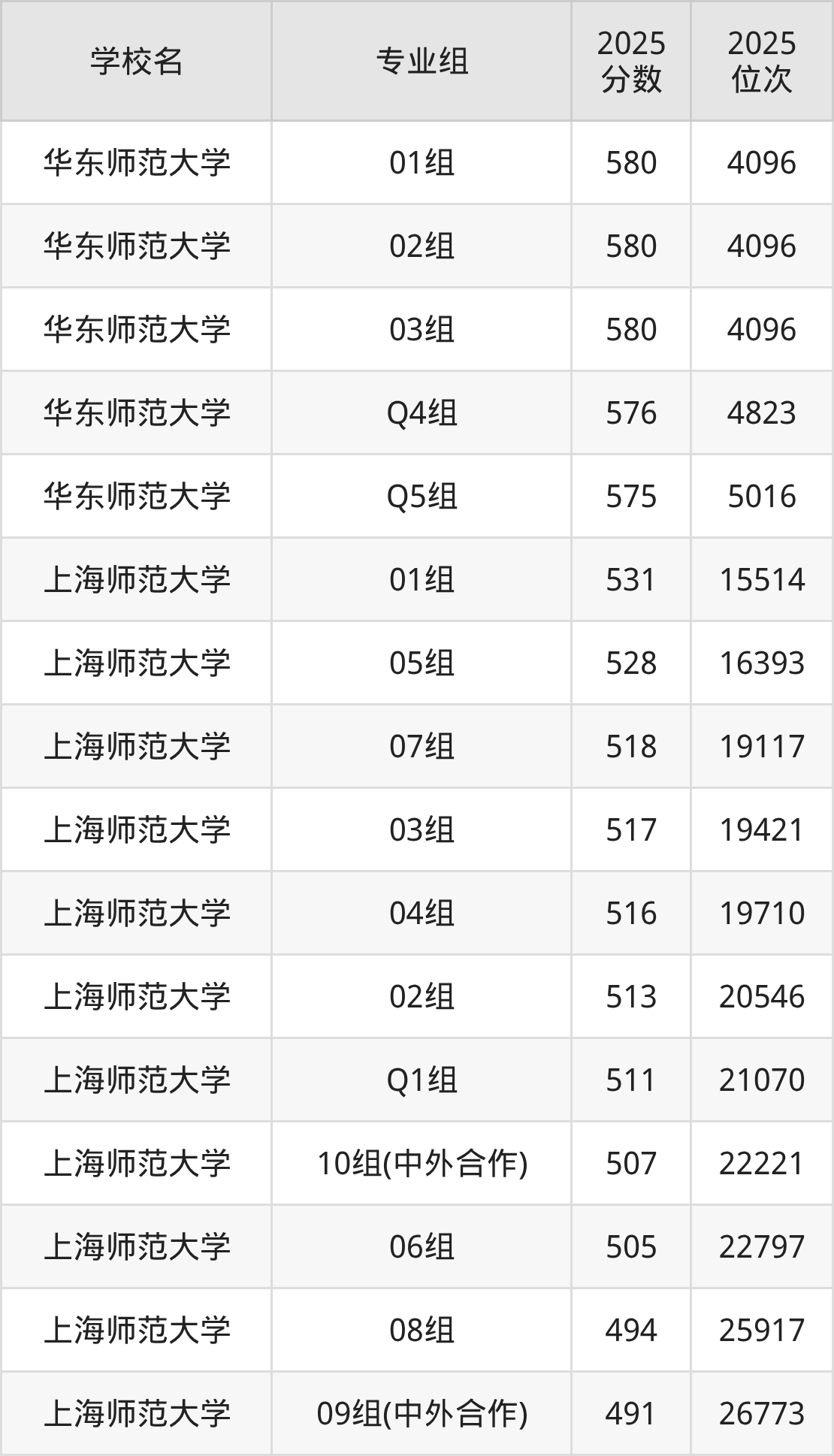 最难考、收分最高的是:华东师范大学,2025年学校的01组最低分580分,对应排位4096名。