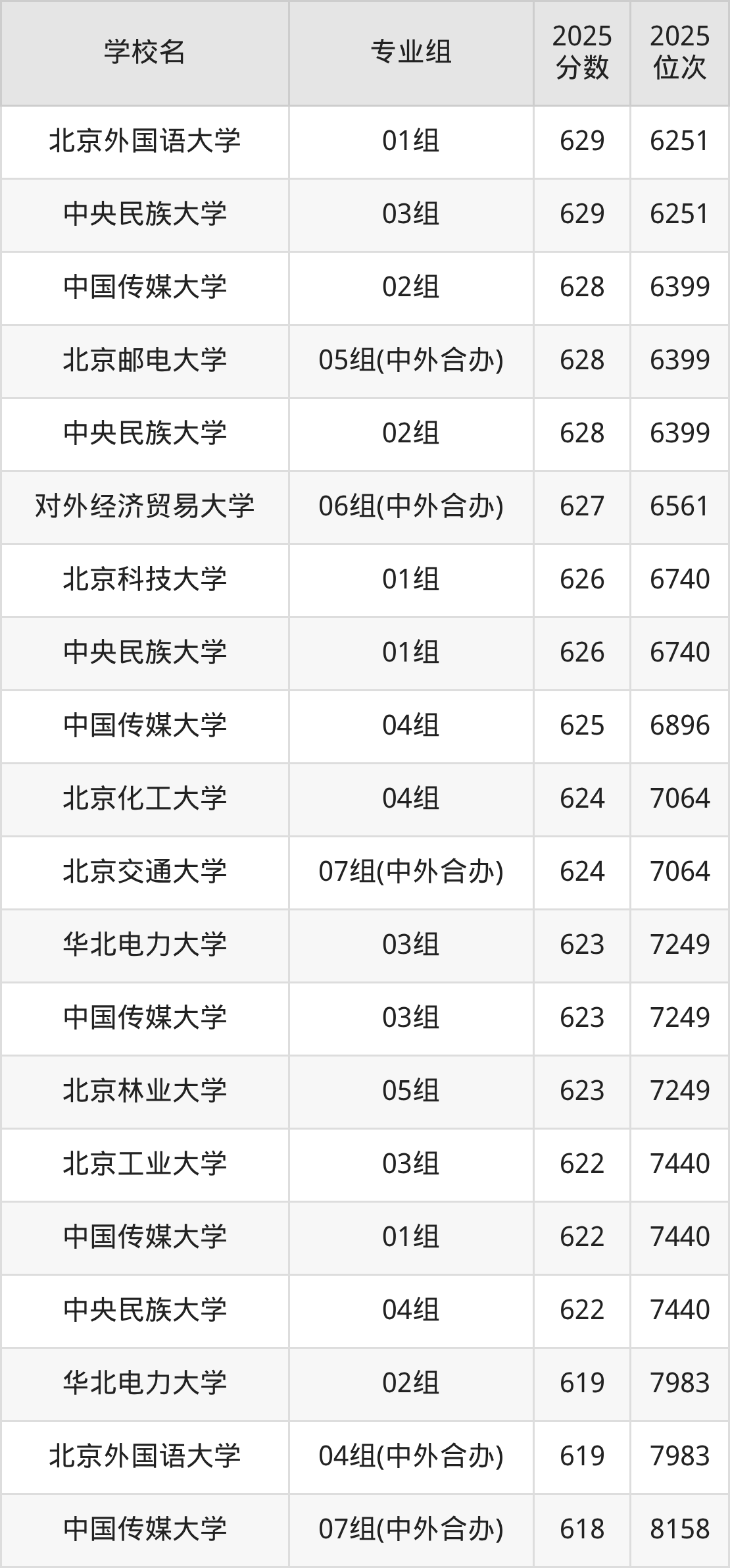 按照2025年北京市所有211院校在市内录取分数线高低排名,为大家整理出了北京所有211院校名单如下。