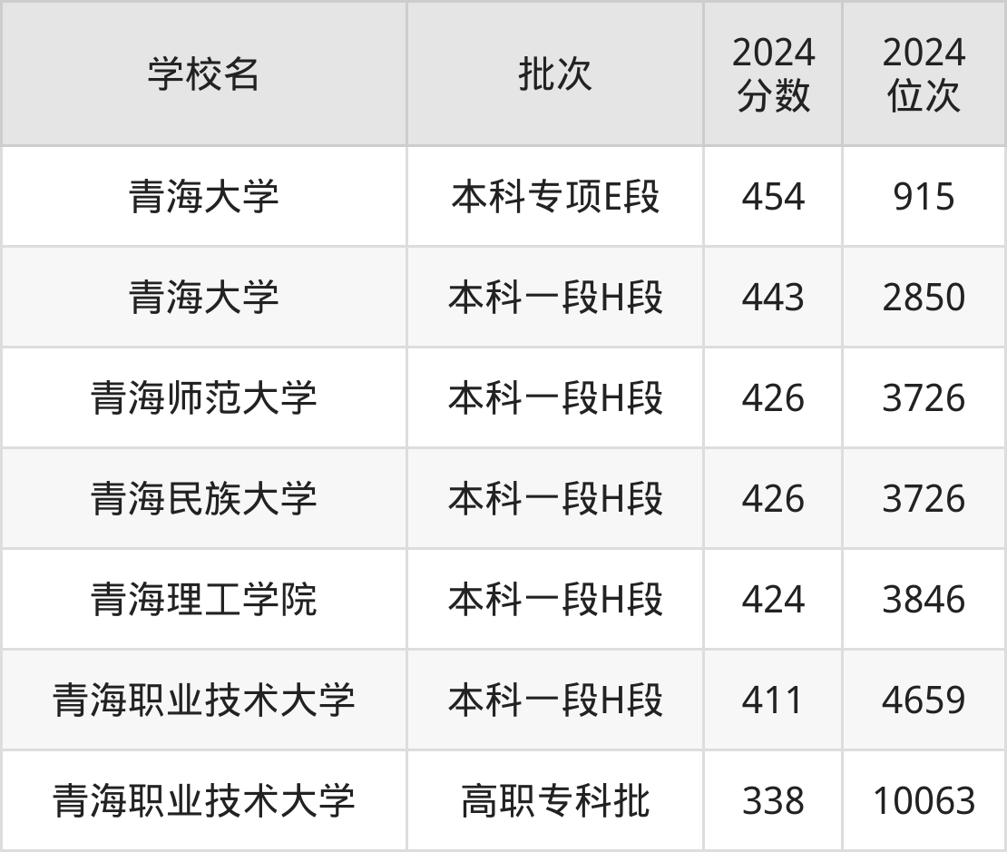 按照2024年青海省所有公办本科院校在省内录取分数线高低排名,为大家整理出了青海所有公办本科院校名单如下。
