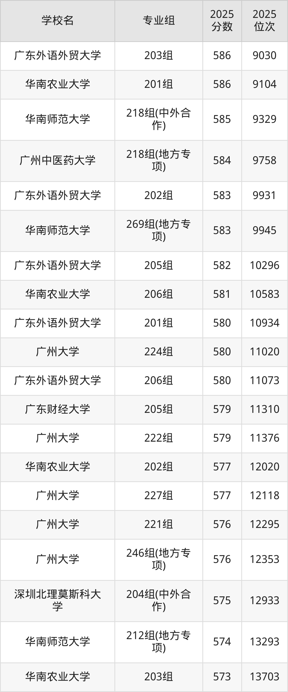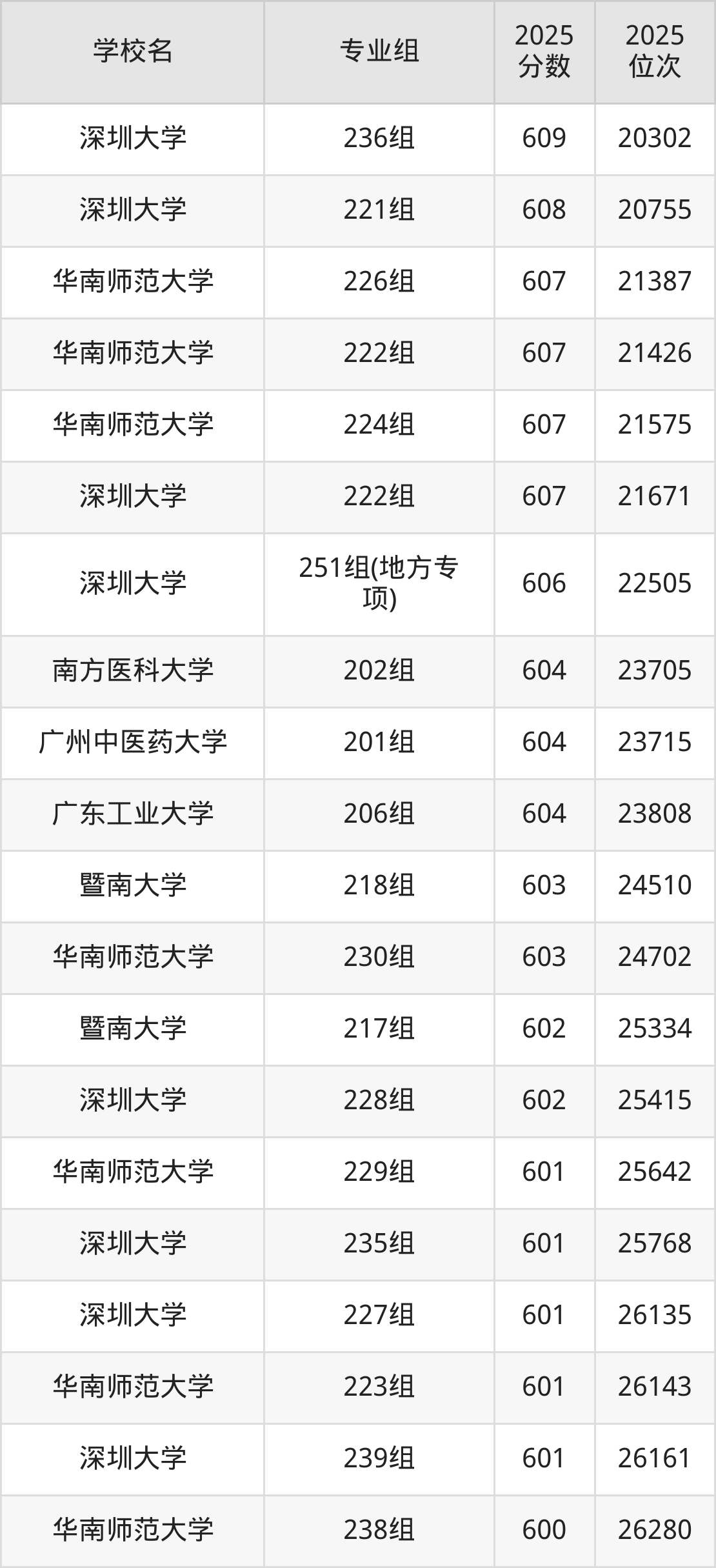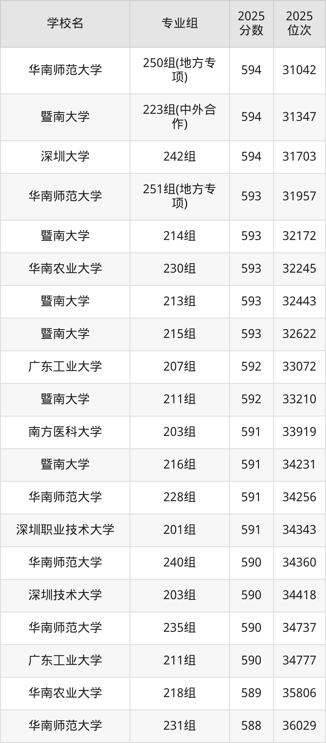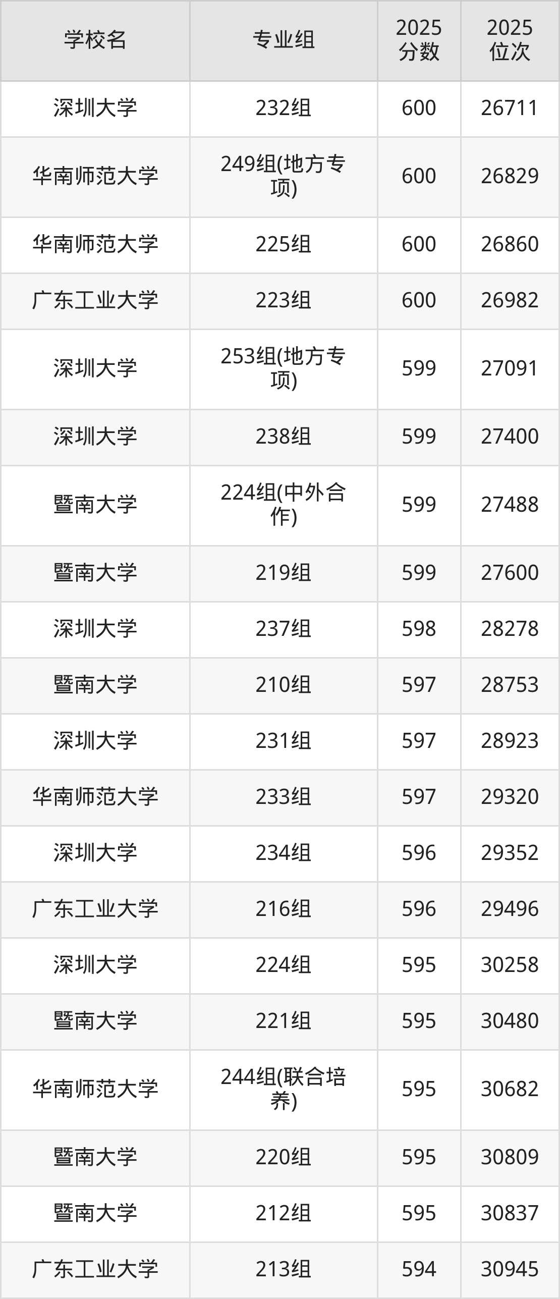 广东省所有公办本科院校2025年录取分数线一览表(前100院校专业组):