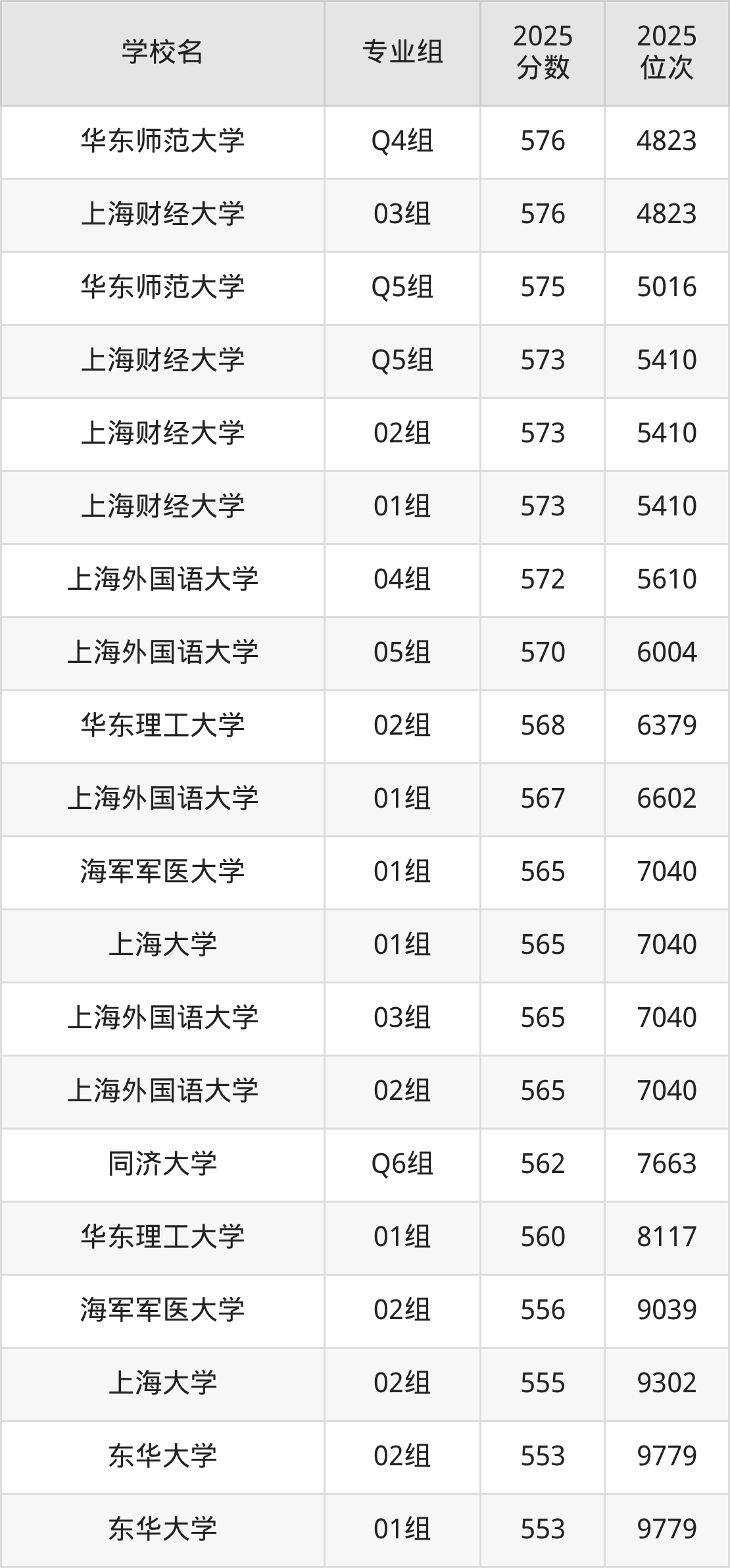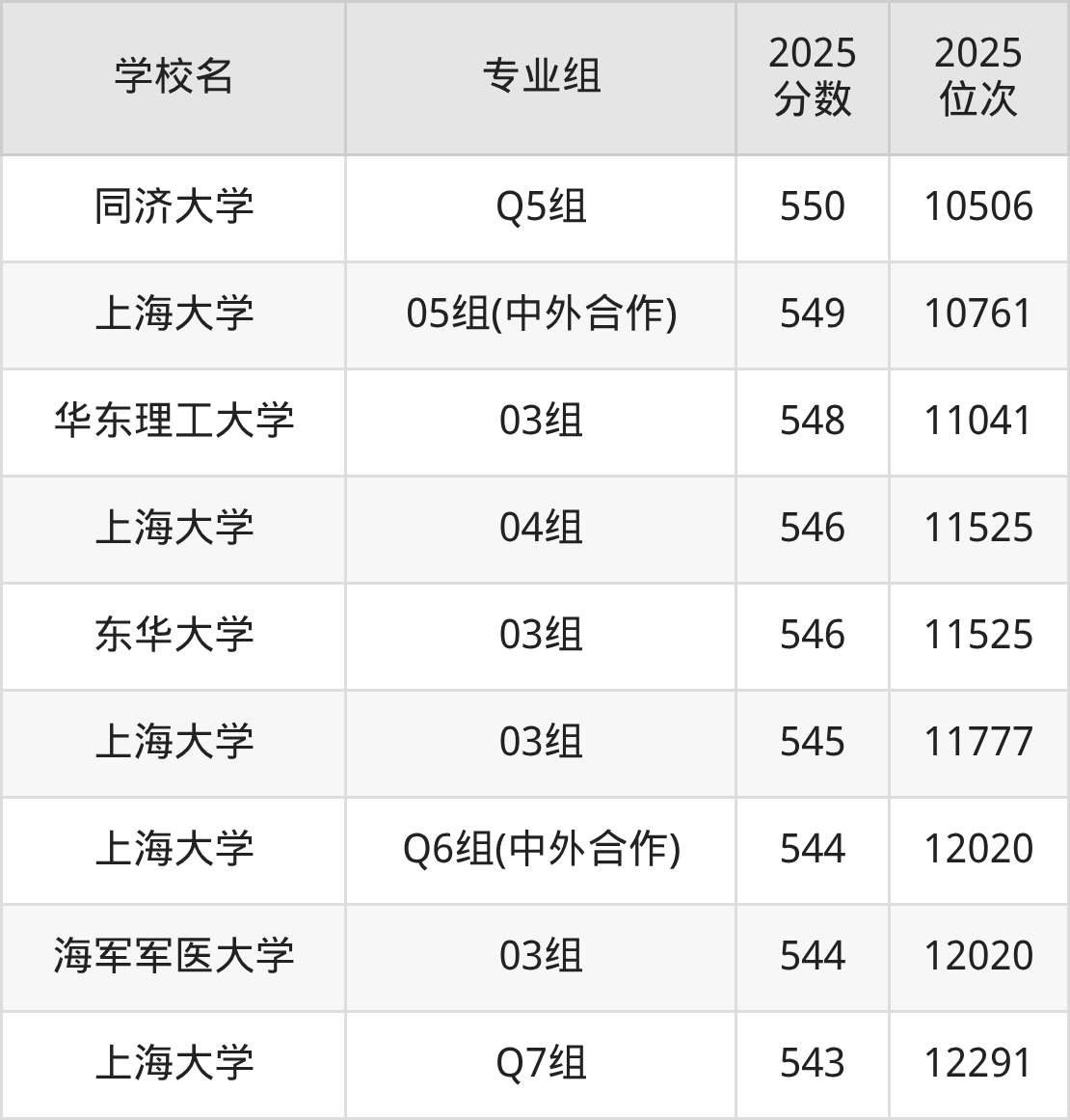 最好考、收分最低的是:上海大学,2025年Q7组最低分543分,最低排名12291名。