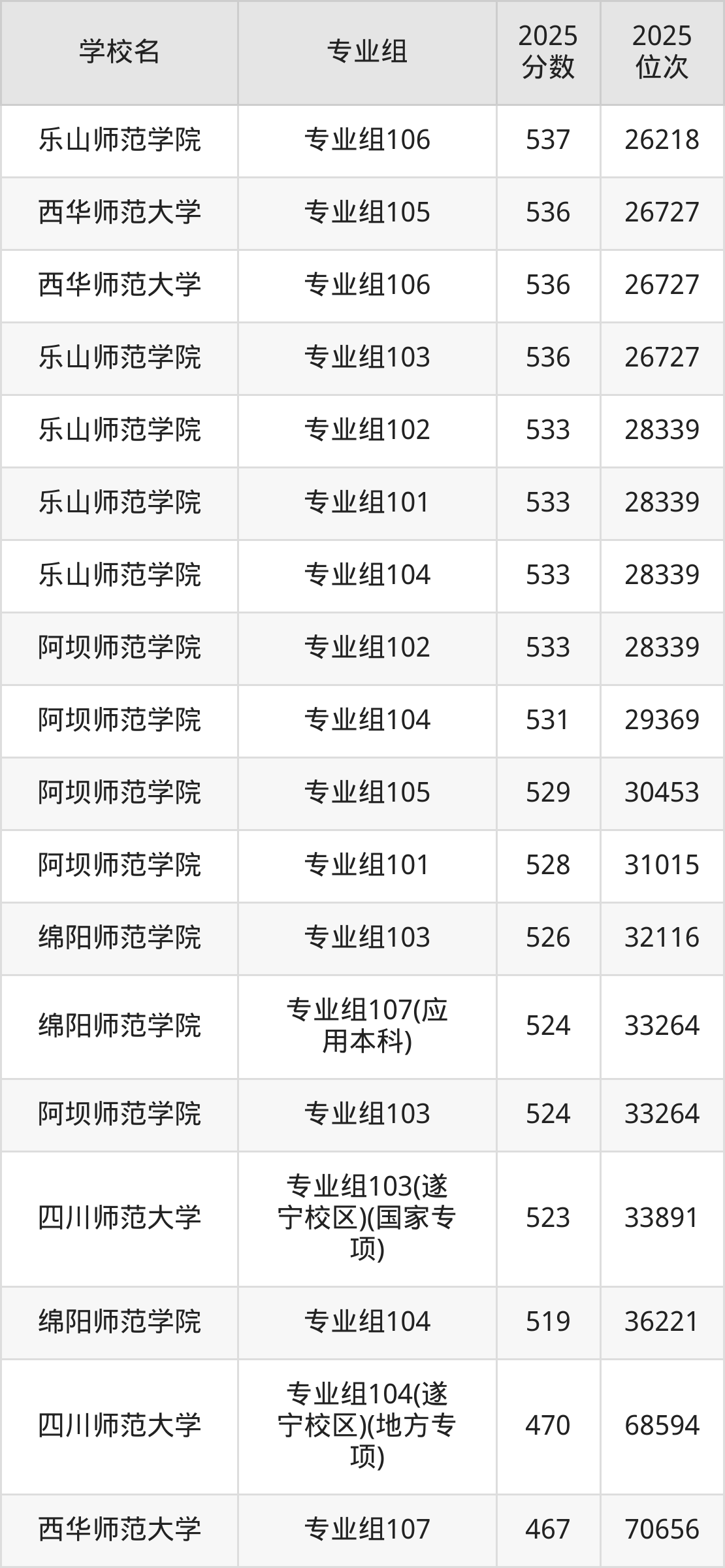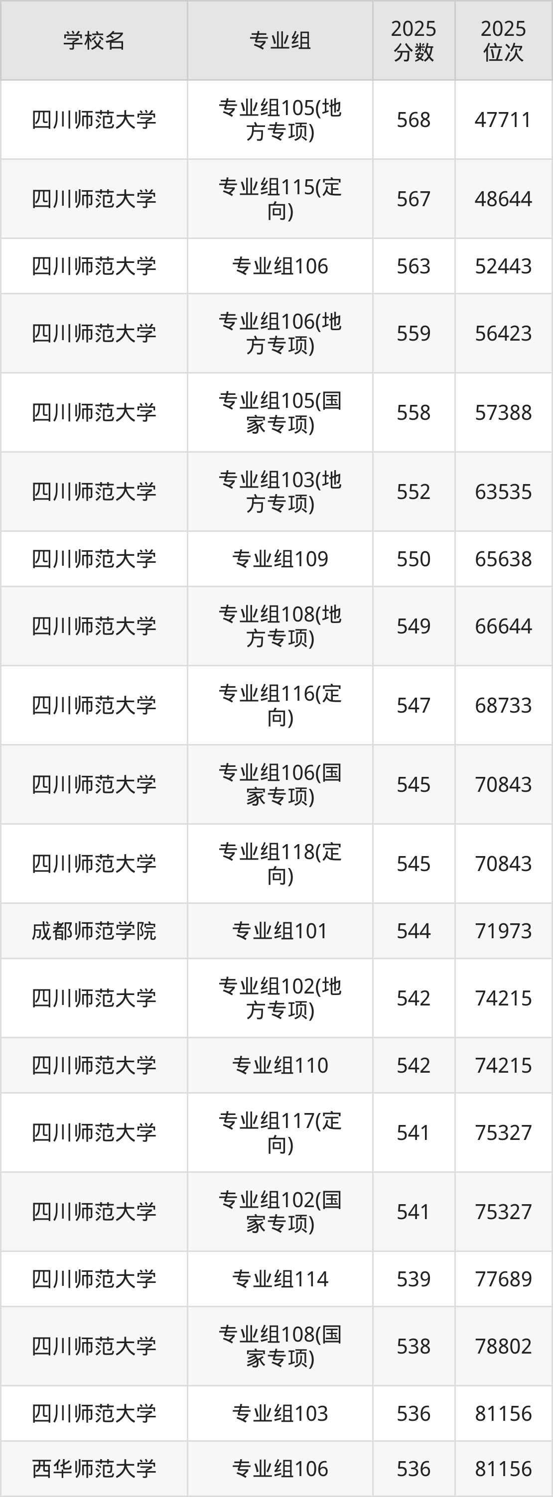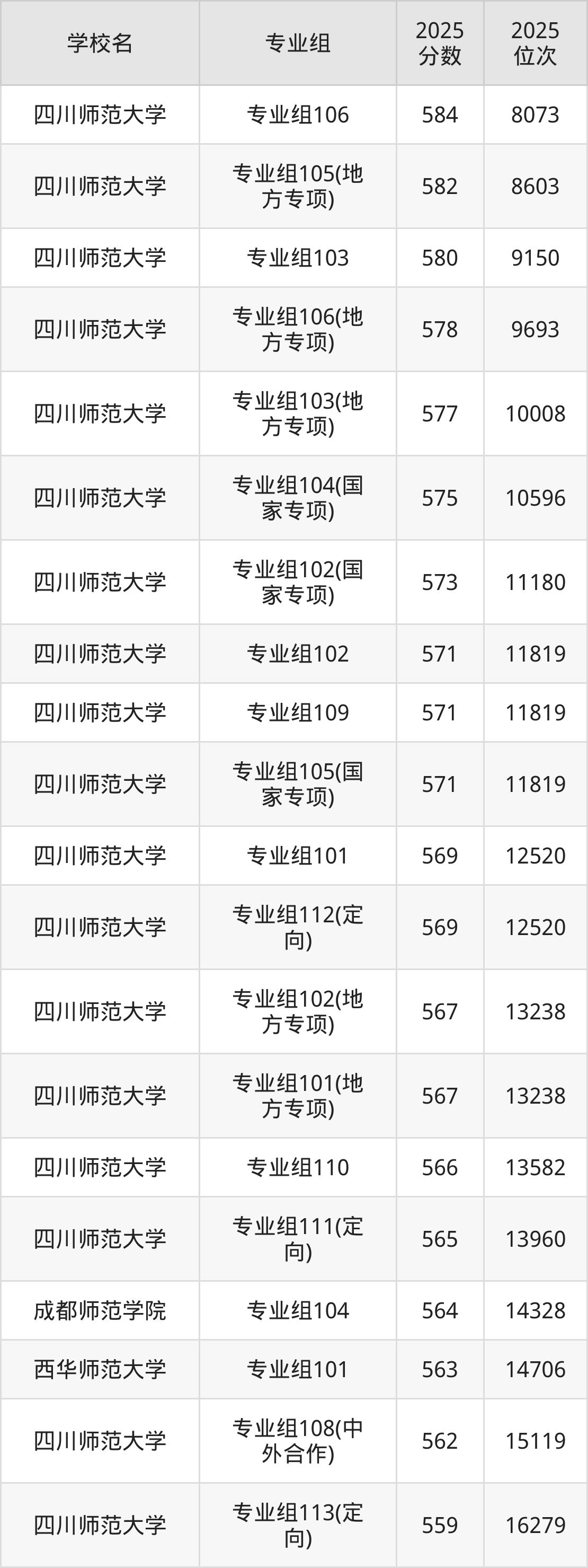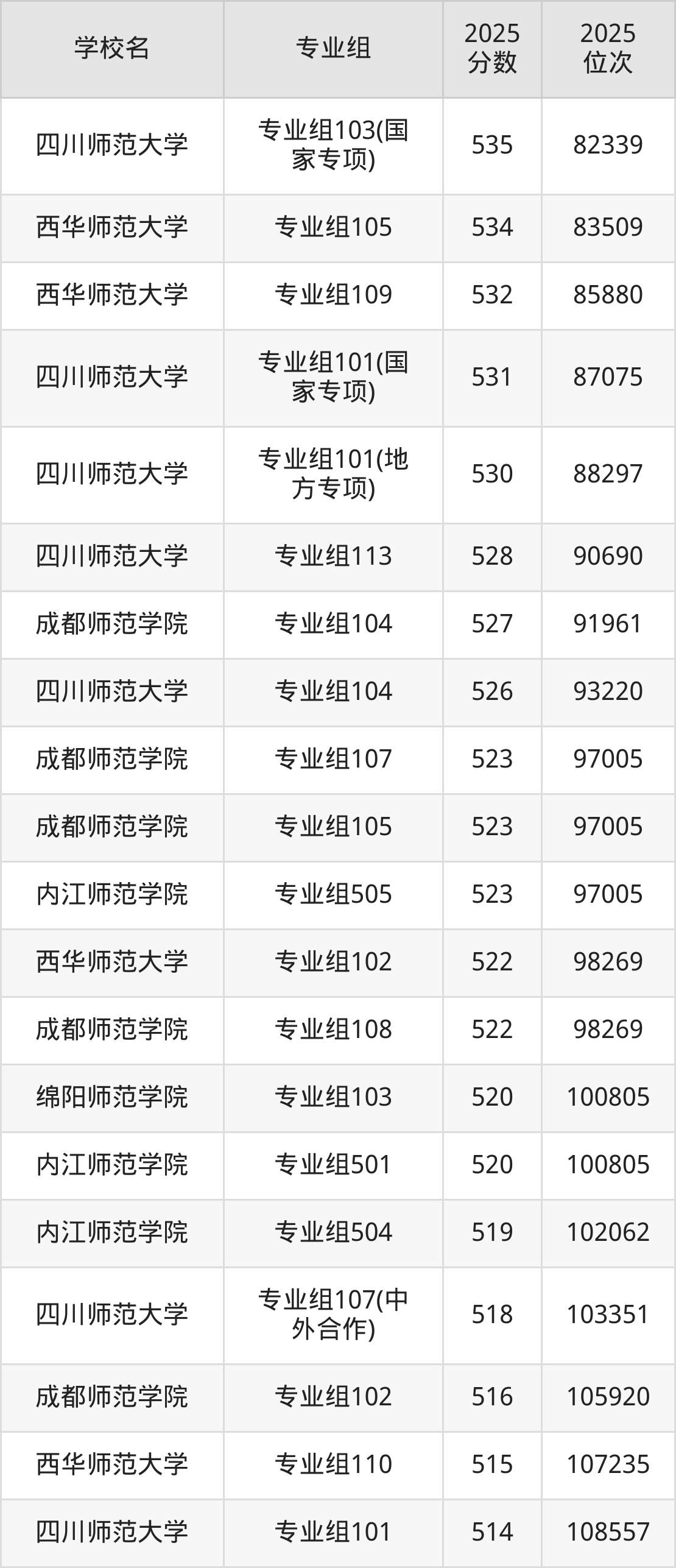 四川省所有师范类院校2025年录取分数线一览表(前84院校专业组):