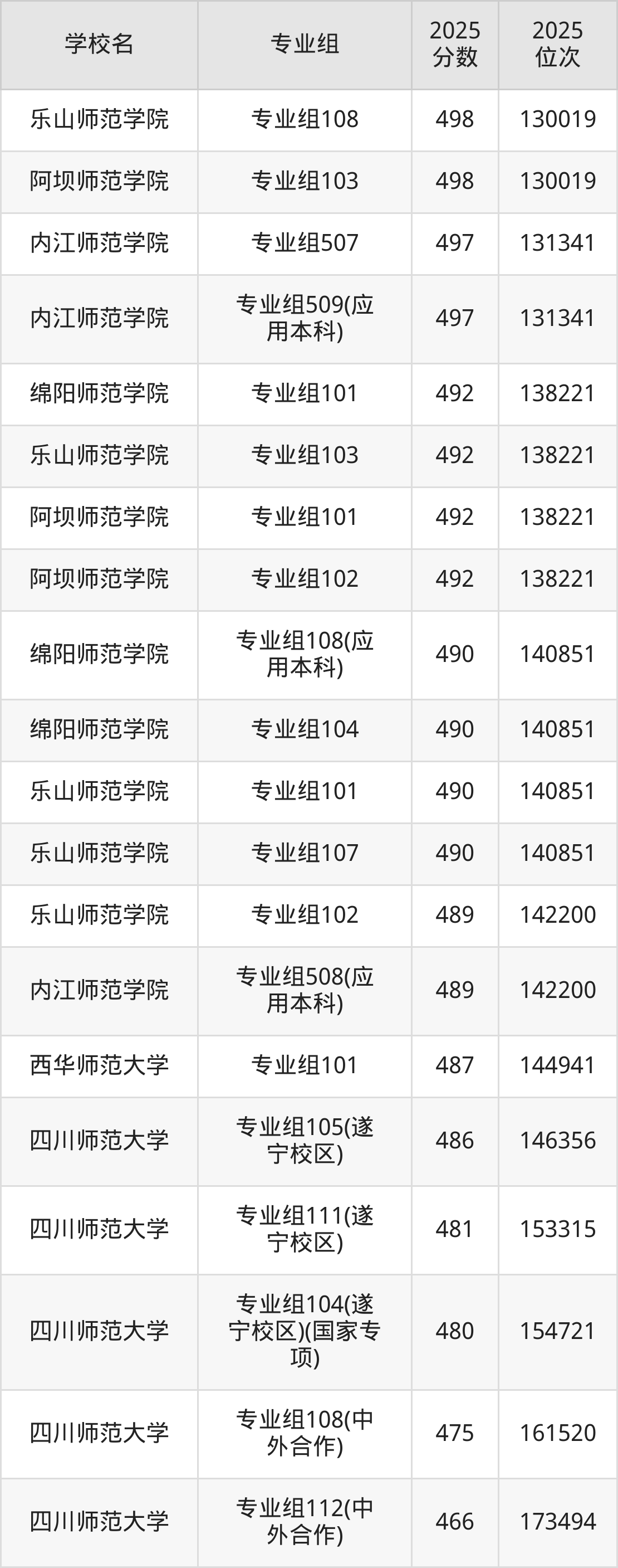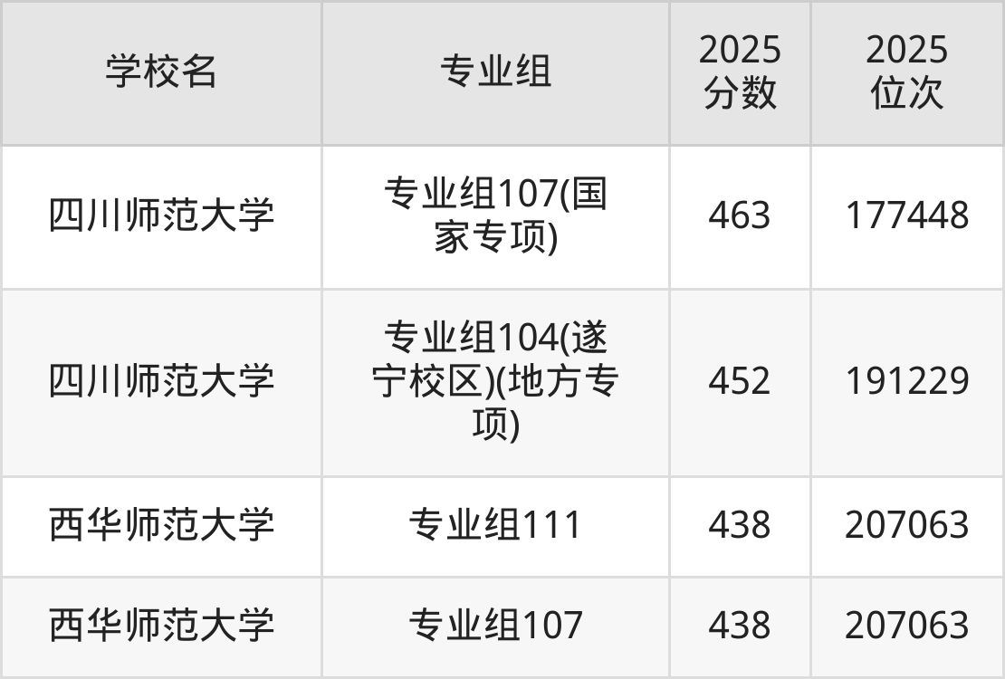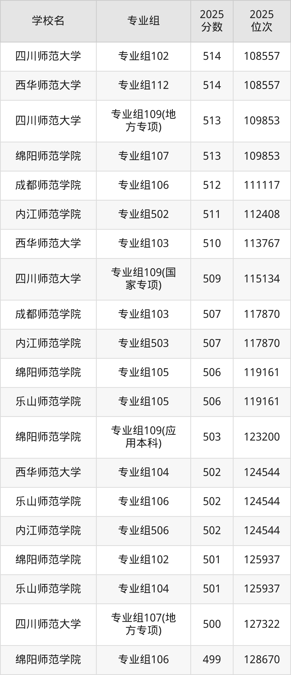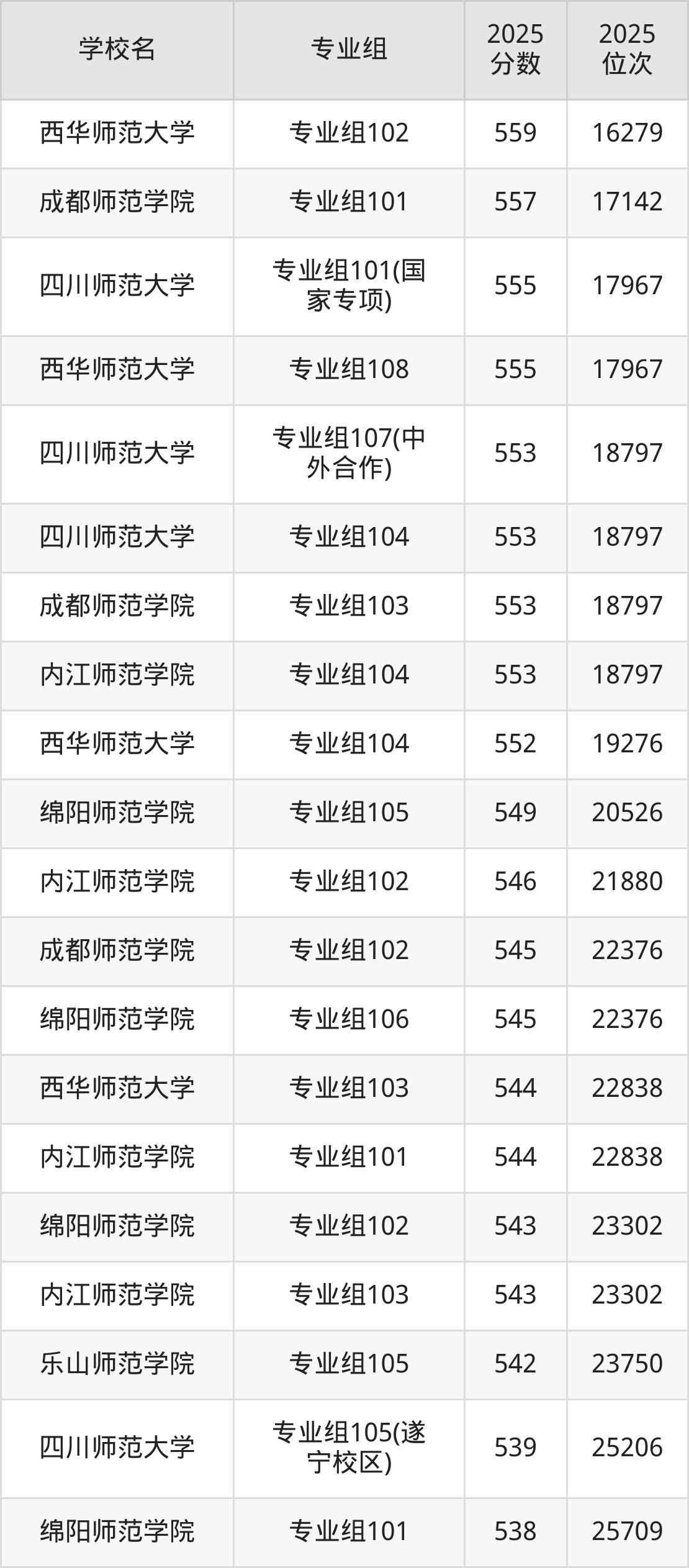 四川省所有师范类院校2025年录取分数线一览表(前84院校专业组):