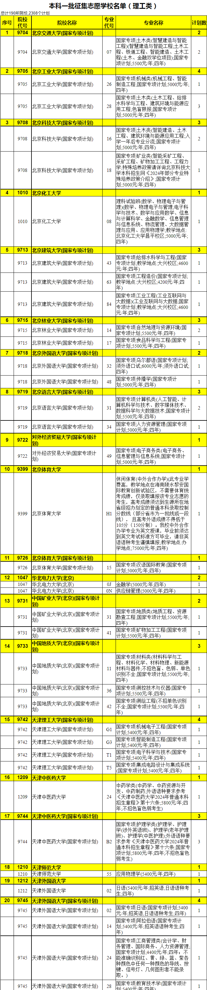本科一批征集志愿学校名单(理工类)(可点击查看)