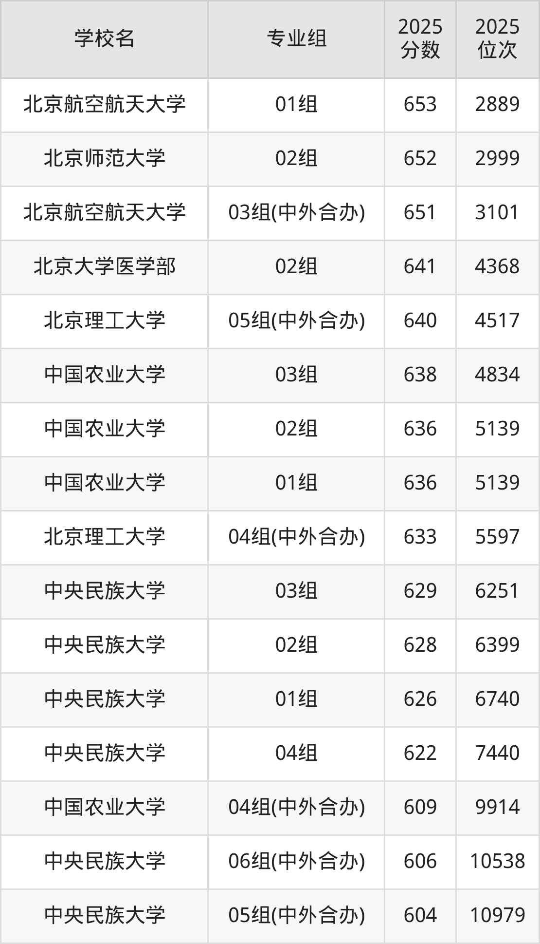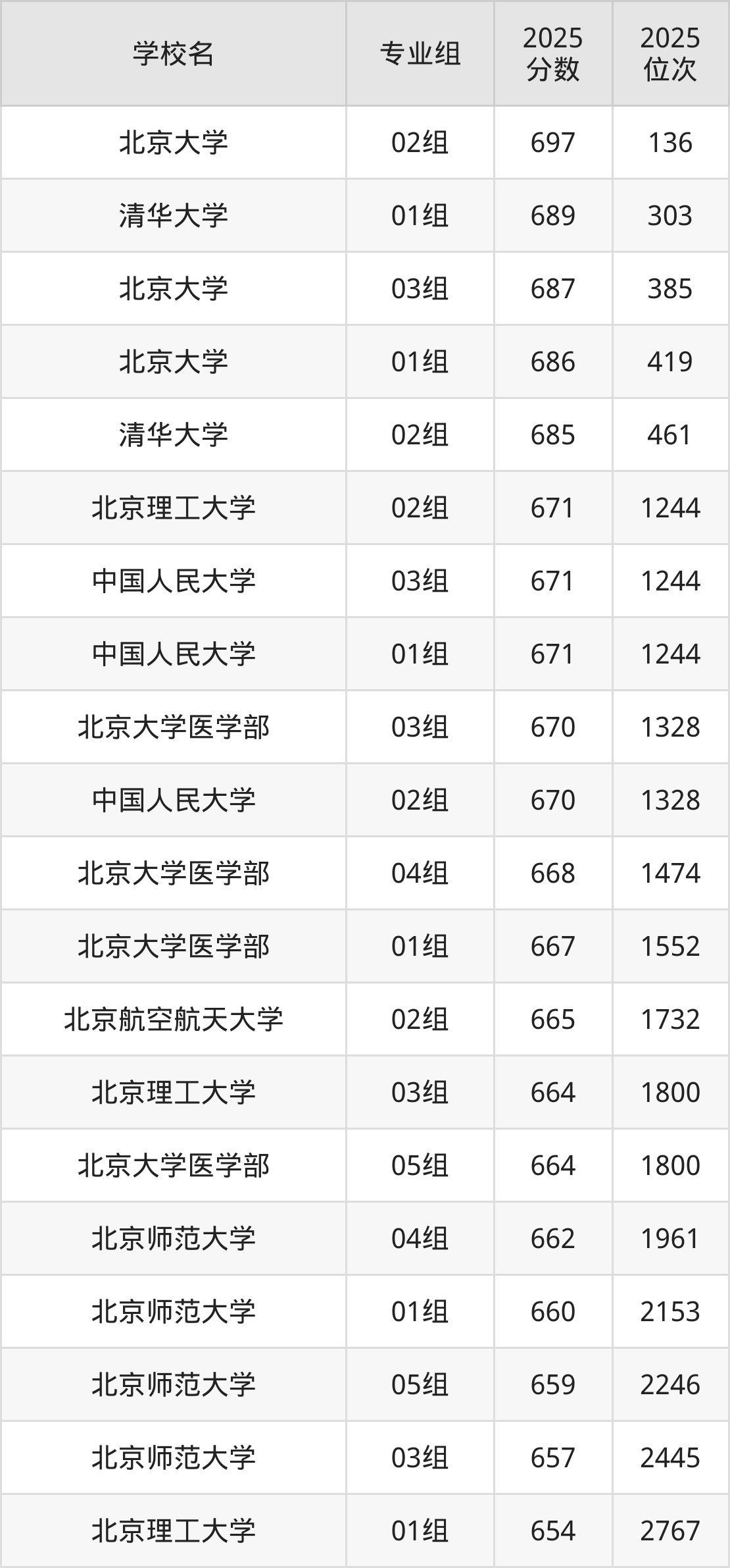 北京市所有985院校2025年录取分数线一览表(前36院校专业组):