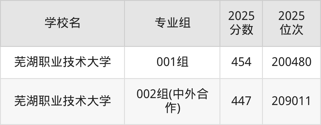 物理类最好考、收分最低的是:芜湖职业技术大学,2025年002组(中外合作)最低分447分,最低排名209011名;历史类最好考、收分最低的是:芜湖职业技术大学,2025年001组最低分469分,最低排名48570名。