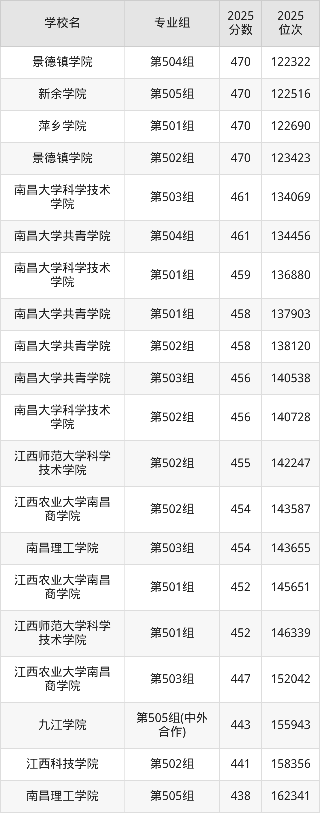 江西省所有二本综合院校2025年录取分数线一览表(前55院校专业组):