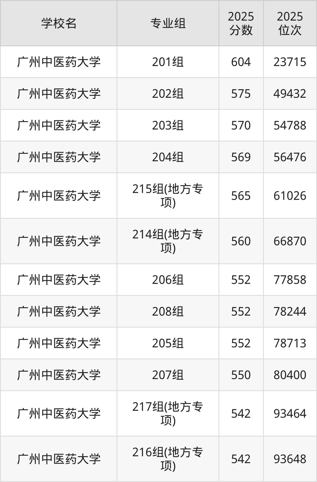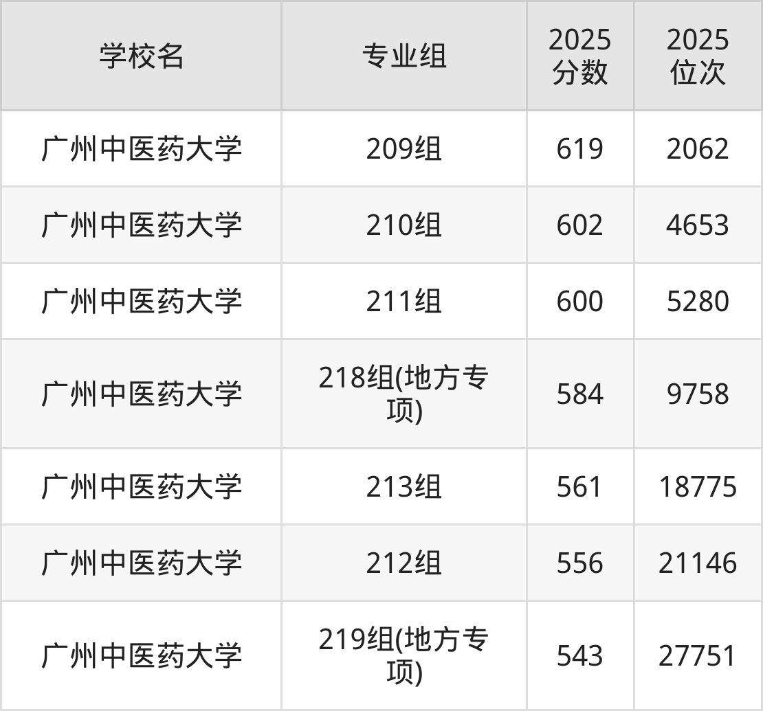 广东省所有中医药院校2025年录取分数线一览表(前12院校专业组):