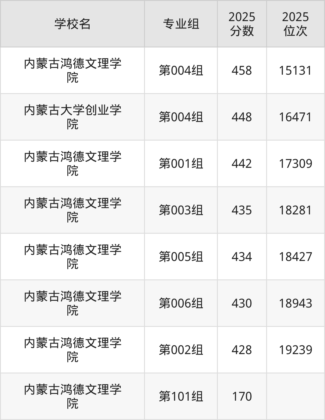 内蒙古自治区所有民办本科院校2025年录取分数线一览表(前11院校专业组):