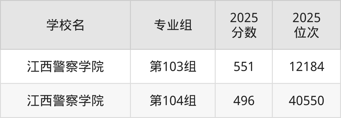 江西省所有公安警察院校2025年录取分数线一览表(前3院校专业组):